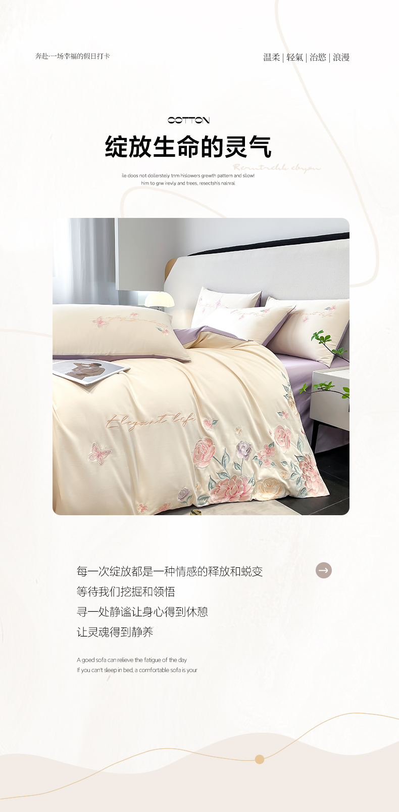 (总)欣宜家纺 2026春夏新款A类60支长绒棉刺绣四件套--蝶纷飞系列,蝶纷飞-粉,蝶纷飞-紫,蝶纷飞-蓝,蝶纷飞-绿
