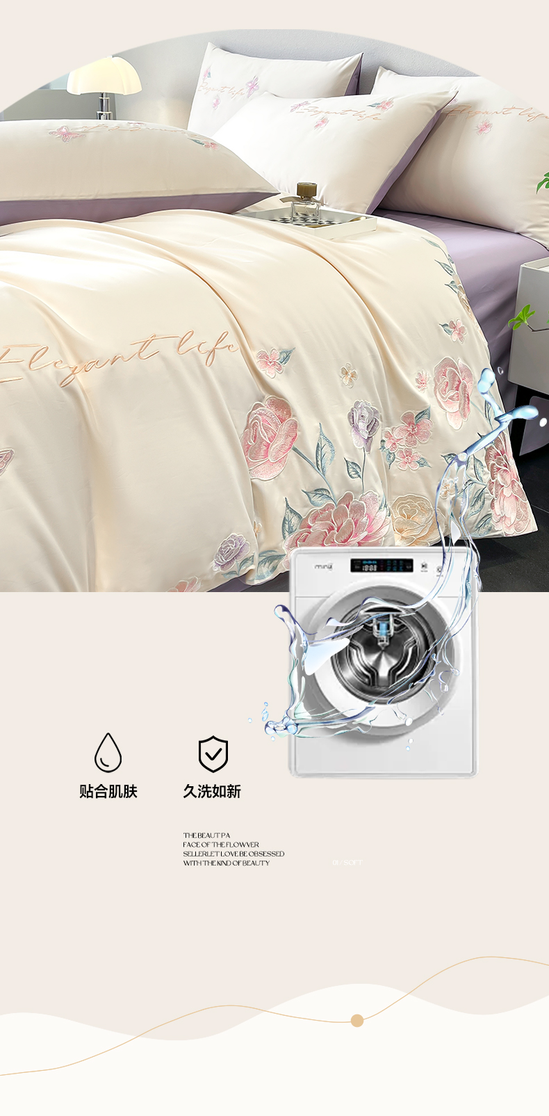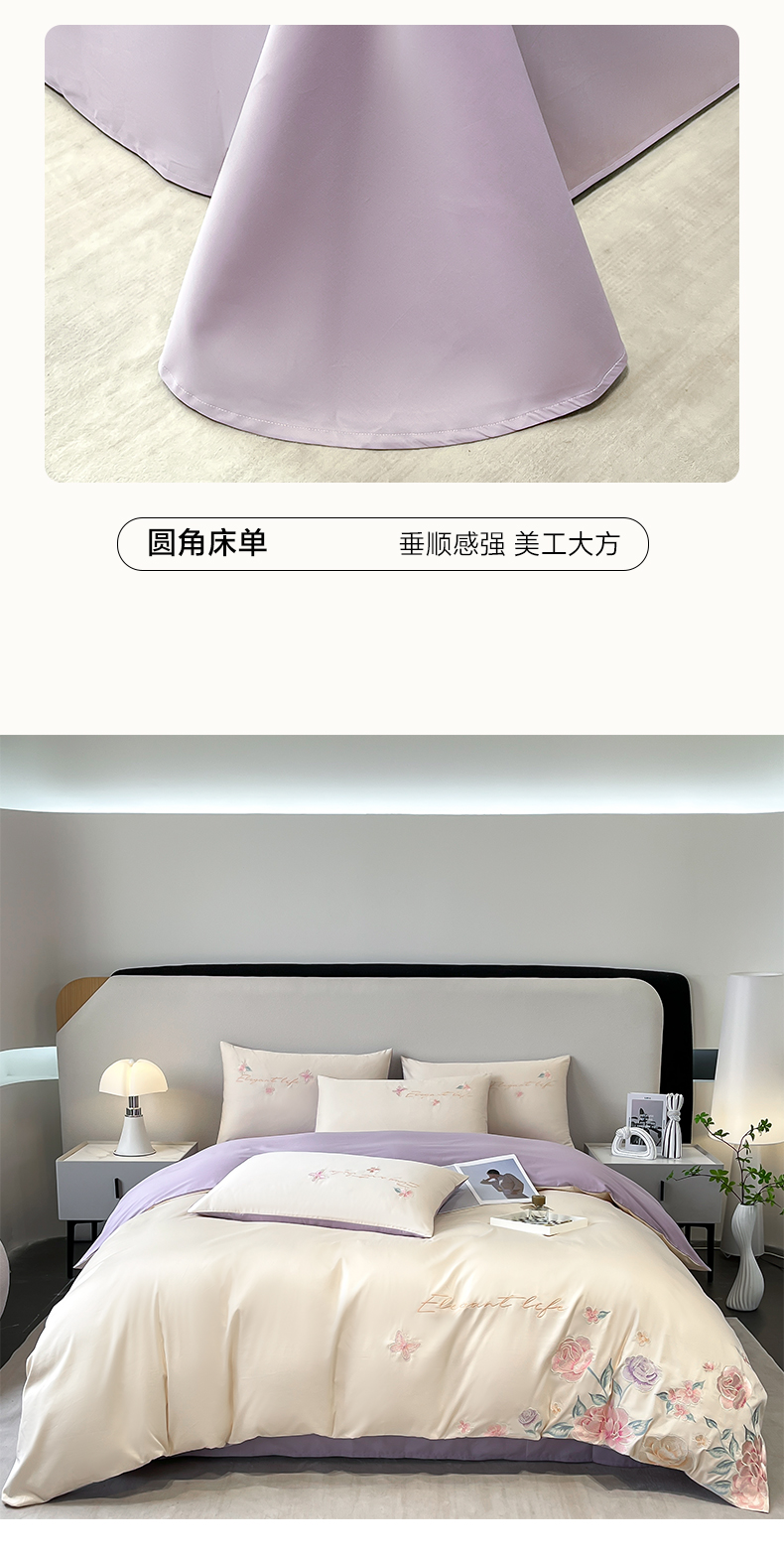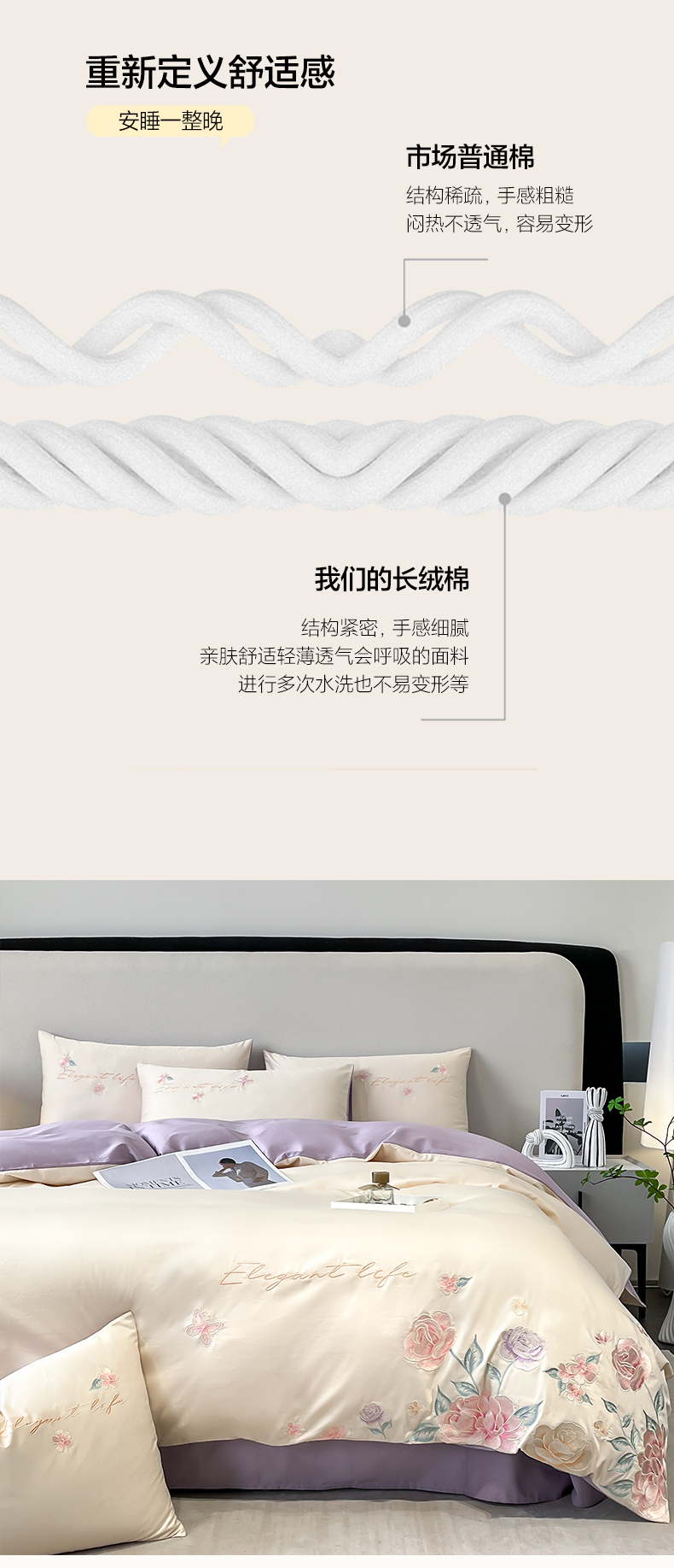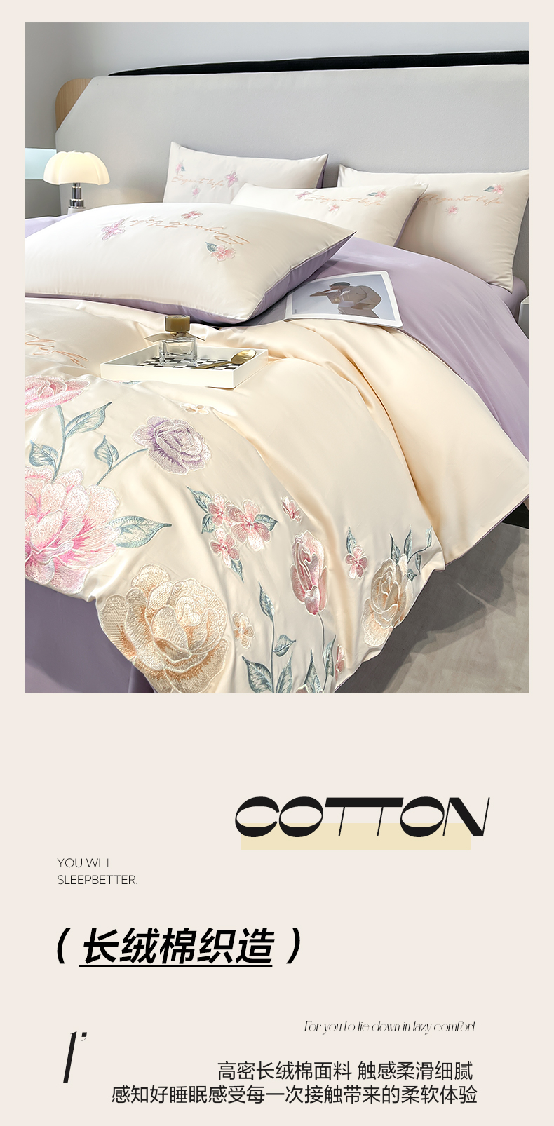 (总)欣宜家纺 2026春夏新款60支A类新疆长绒棉刺绣全棉四件套纯棉床品套件,玛丽-香芋紫,玛丽-梦幻蓝,玛丽-奶白,玛丽-轻奢粉,玛丽-石灰