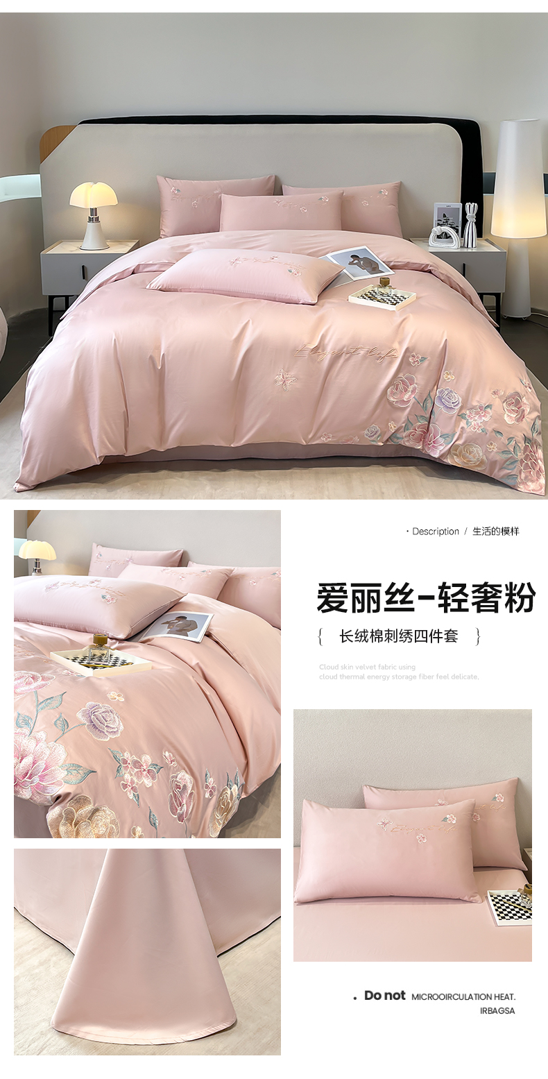 (总)欣宜家纺 2026春夏新款60支A类新疆长绒棉刺绣轻奢风四件套,樱花-白粉,樱花-清香绿,樱花-少女粉,樱花-天天蓝,樱花-香芋紫
