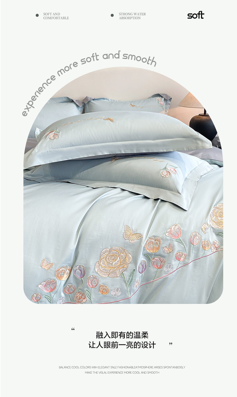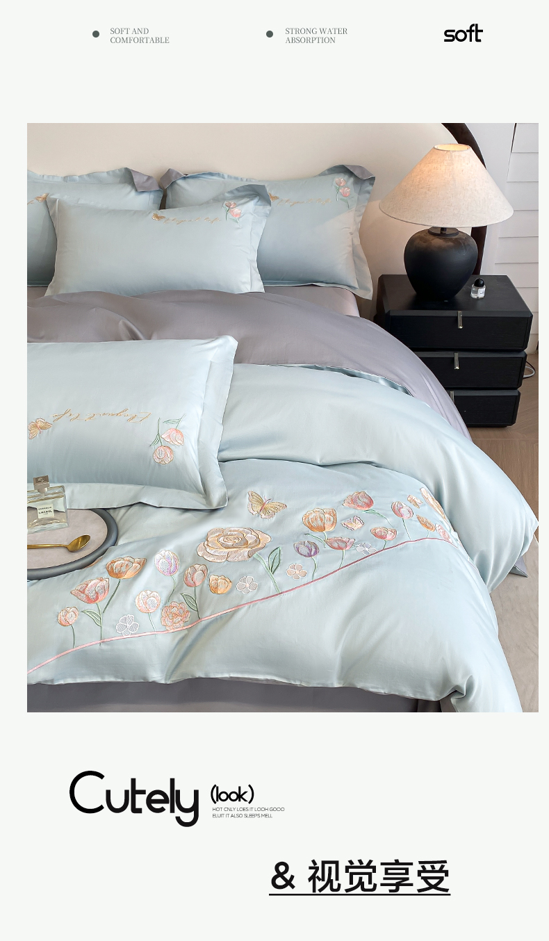 (总)欣宜家纺 2026春夏新款A类60支长绒棉刺绣四件套--蝶纷飞系列,蝶纷飞-粉,蝶纷飞-紫,蝶纷飞-蓝,蝶纷飞-绿