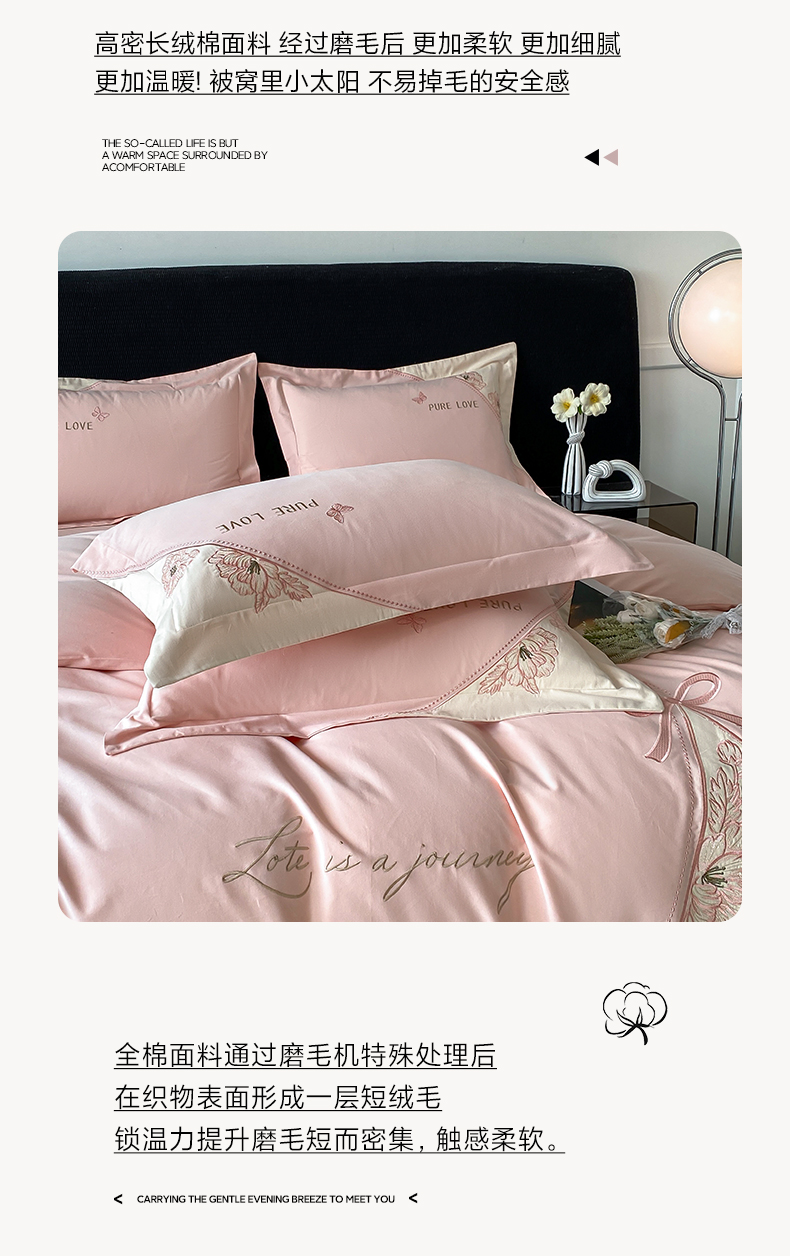 欣宜家纺 2025新款纯棉全棉长绒棉磨毛不掉毛四件套高端礼盒-罗德岛系列 轻奢粉