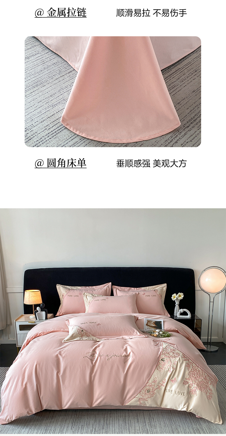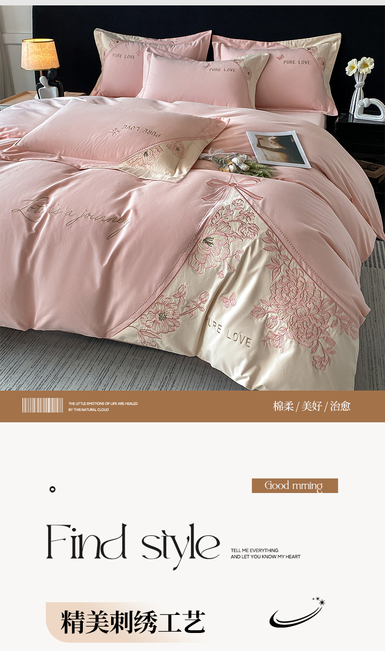 (总)欣宜家纺 2026春夏新款60支A类新疆长绒棉刺绣轻奢风四件套,樱花-白粉,樱花-清香绿,樱花-少女粉,樱花-天天蓝,樱花-香芋紫