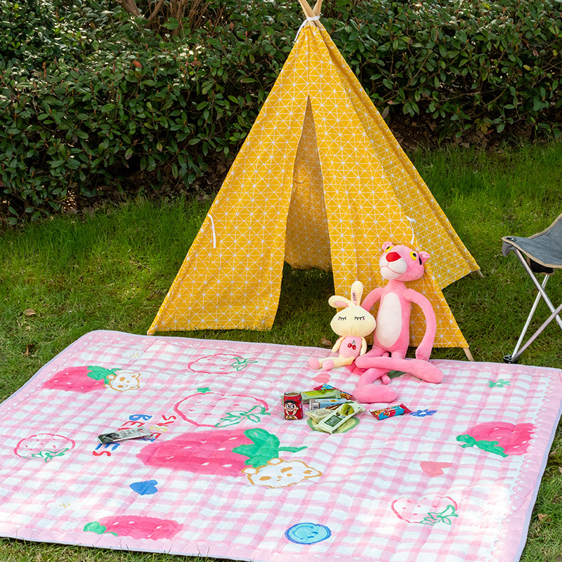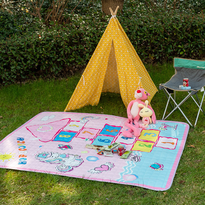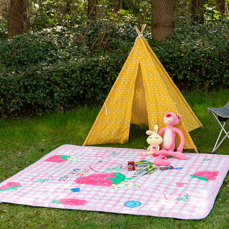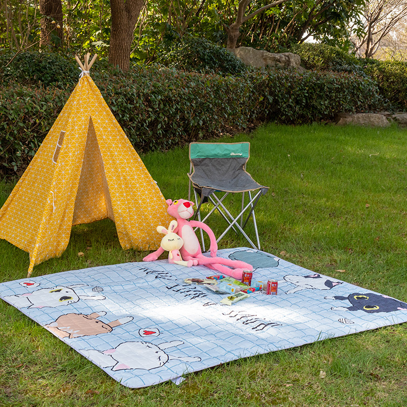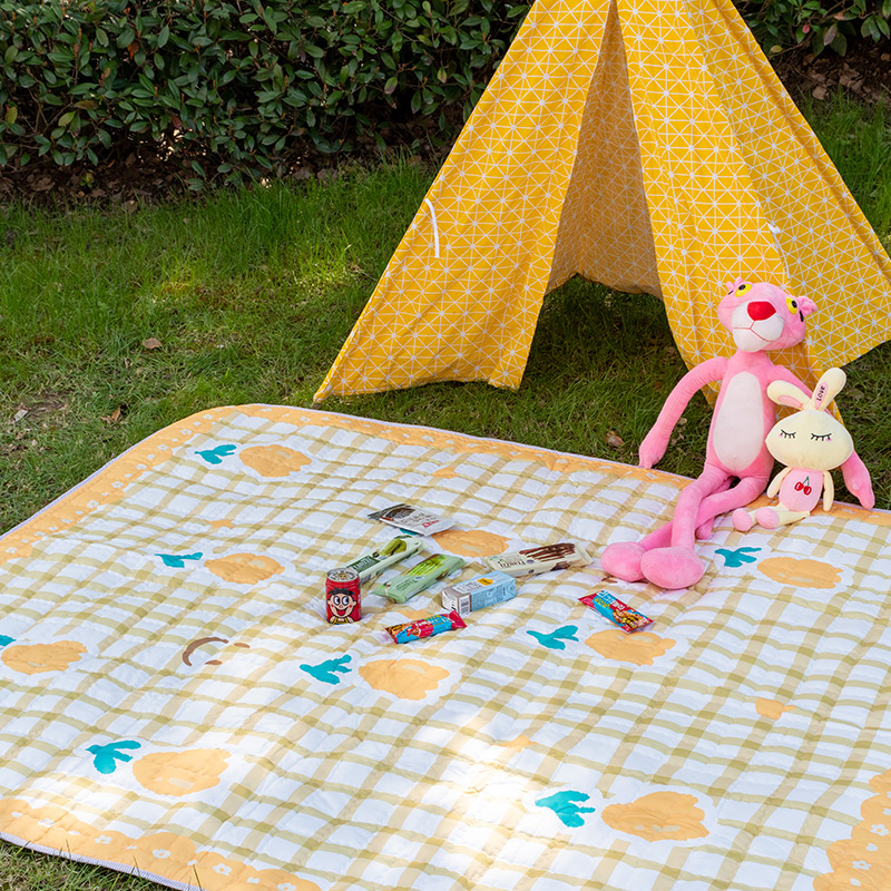 欣宜家纺 2025新款INS风绗缝加厚防水野餐草坪垫 笑脸郁金香