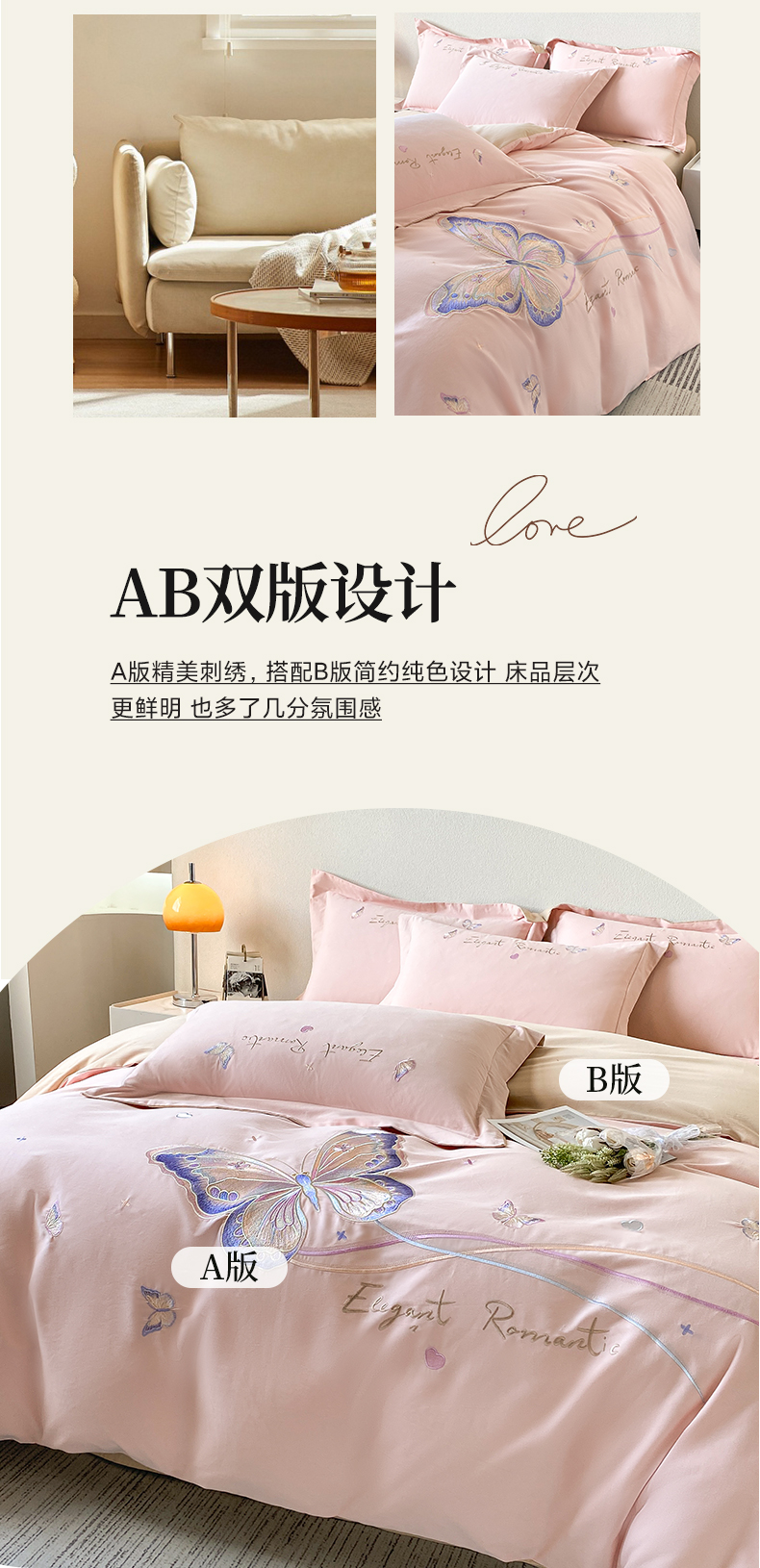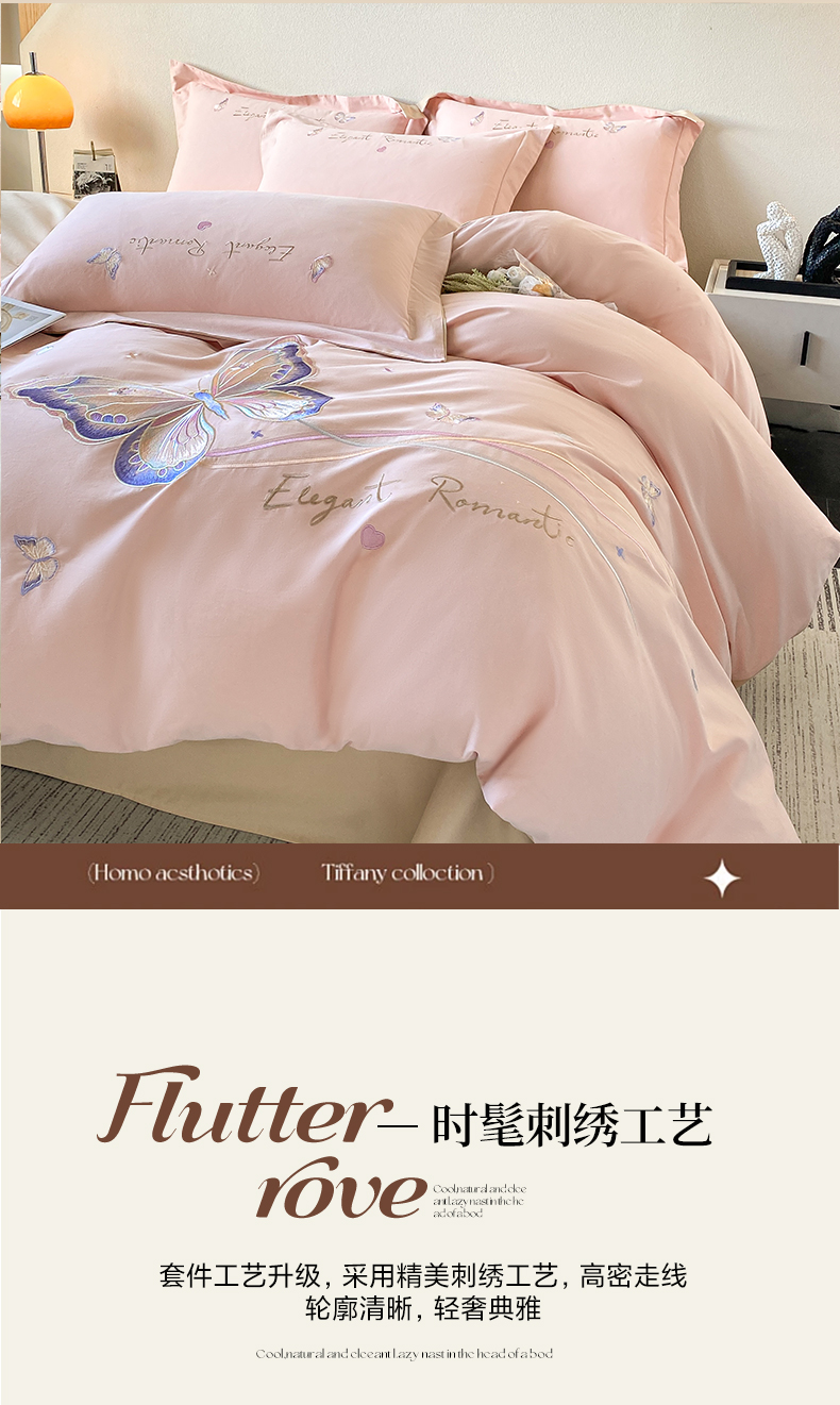 (总)欣宜家纺 2026春夏新款A类60支长绒棉刺绣四件套--蝶纷飞系列,蝶纷飞-粉,蝶纷飞-紫,蝶纷飞-蓝,蝶纷飞-绿