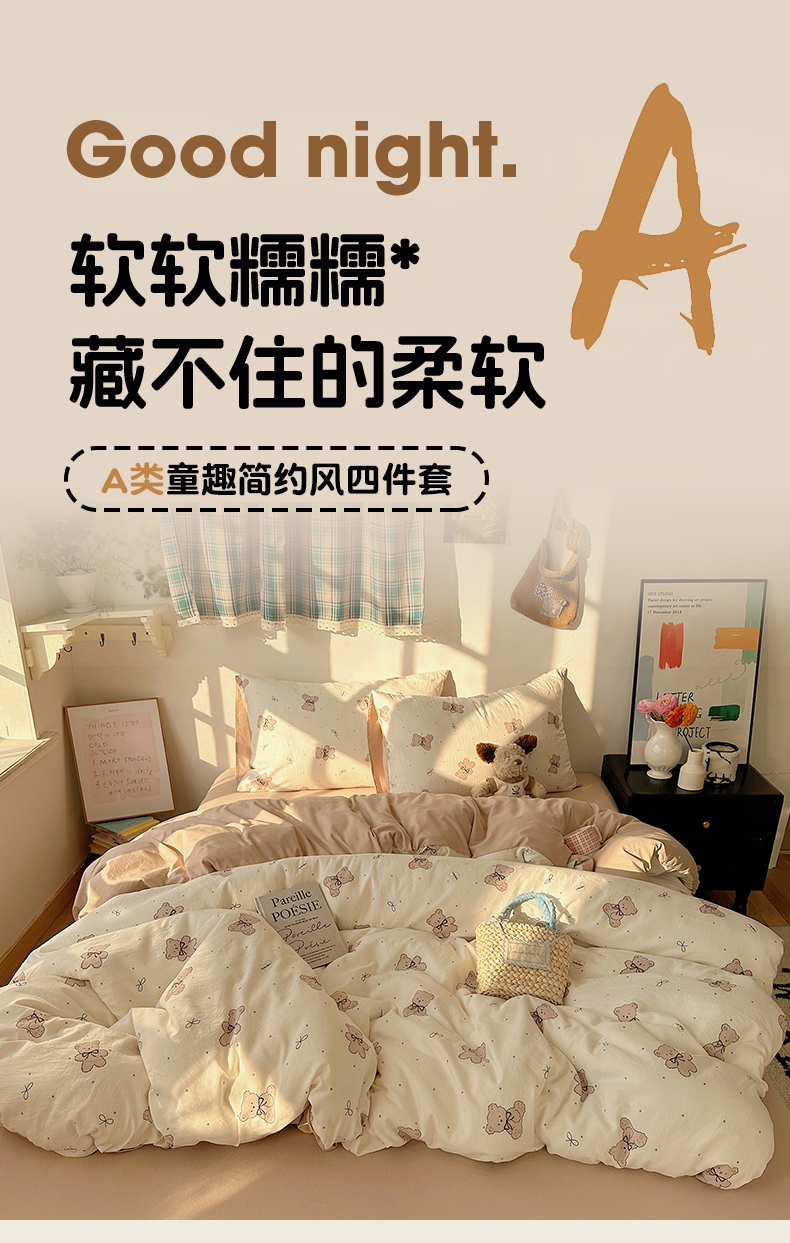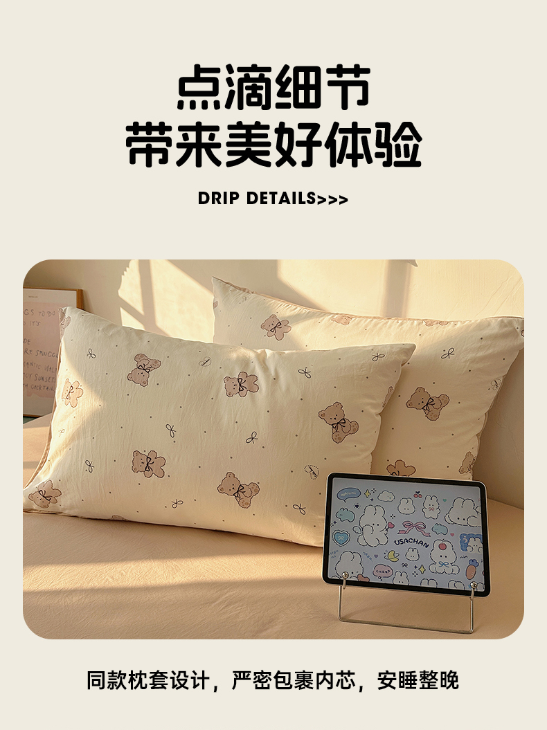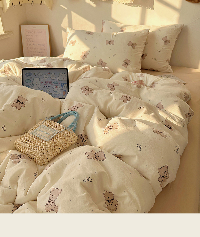 当前位置: 91家纺网 > 商品网购 > 床品套件 > 四件套 > 水洗棉四件套 > 沐芷 2026 【提供买家秀】水洗棉四件套A类简约小清新床上用品床笠款被套床单三件套被罩卡通可爱 饼干熊