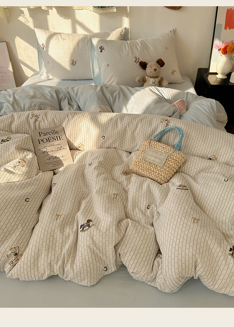 当前位置: 91家纺网 > 商品网购 > 床品套件 > 四件套 > 水洗棉四件套 > 沐芷 2026 【提供买家秀】水洗棉四件套A类简约小清新床上用品床笠款被套床单三件套被罩卡通可爱 旋转木马