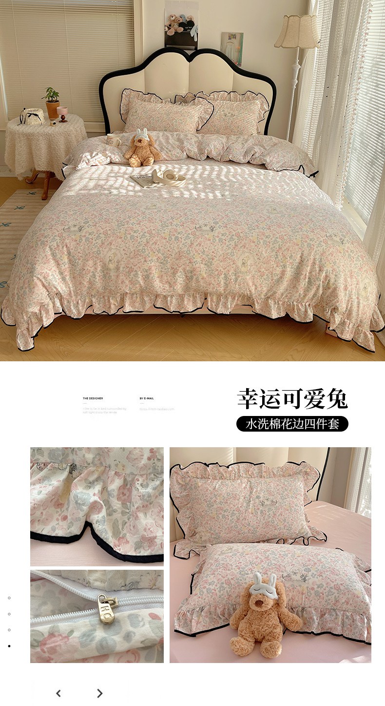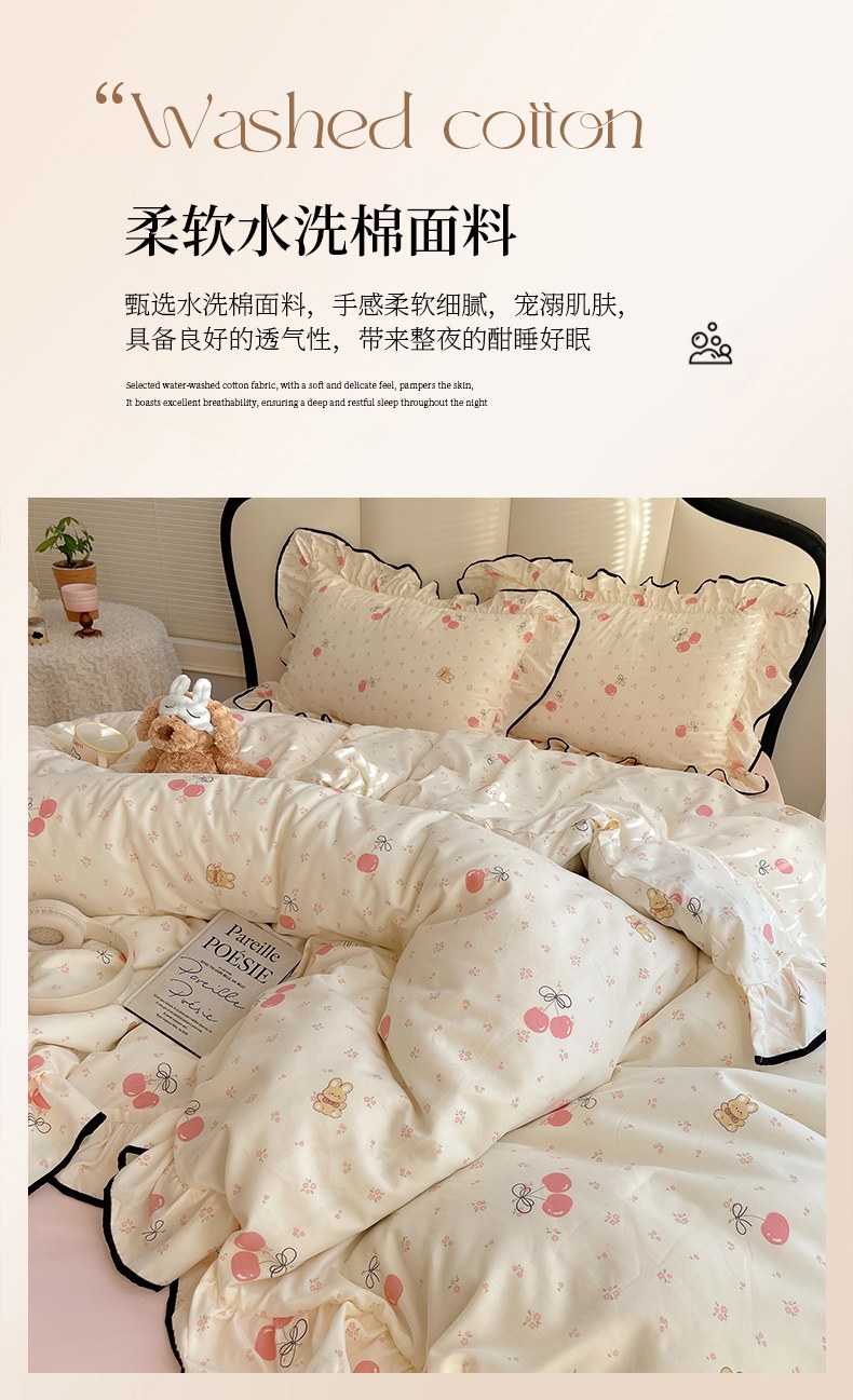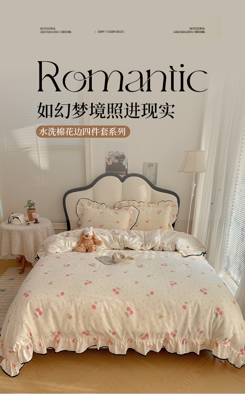 当前位置: 91家纺网 > 商品网购 > 床品套件 > 四件套 > 水洗棉四件套 > 韩巢家纺 2026新款水洗棉花边款四件套 摘樱桃的小熊【大花边款】