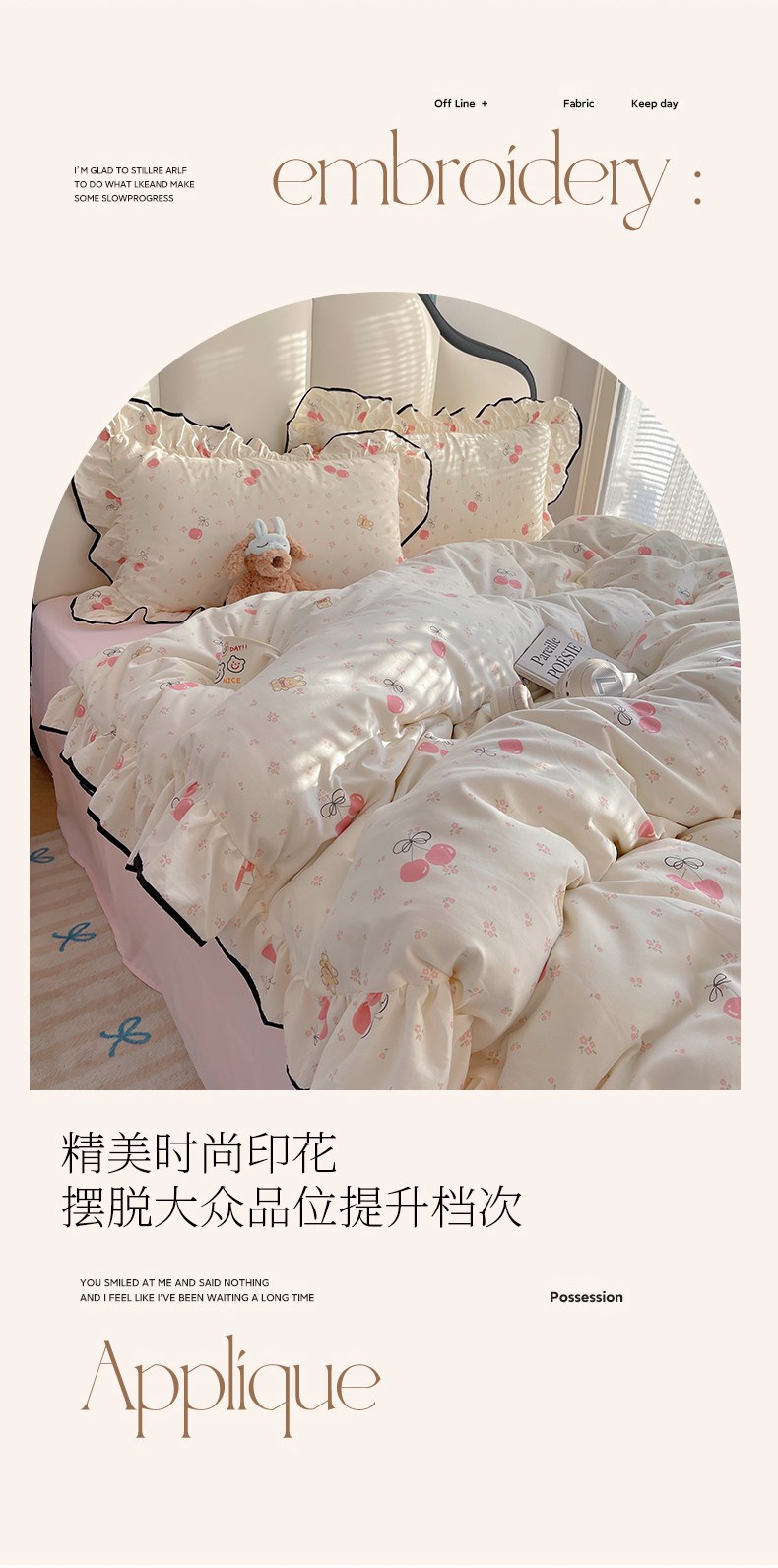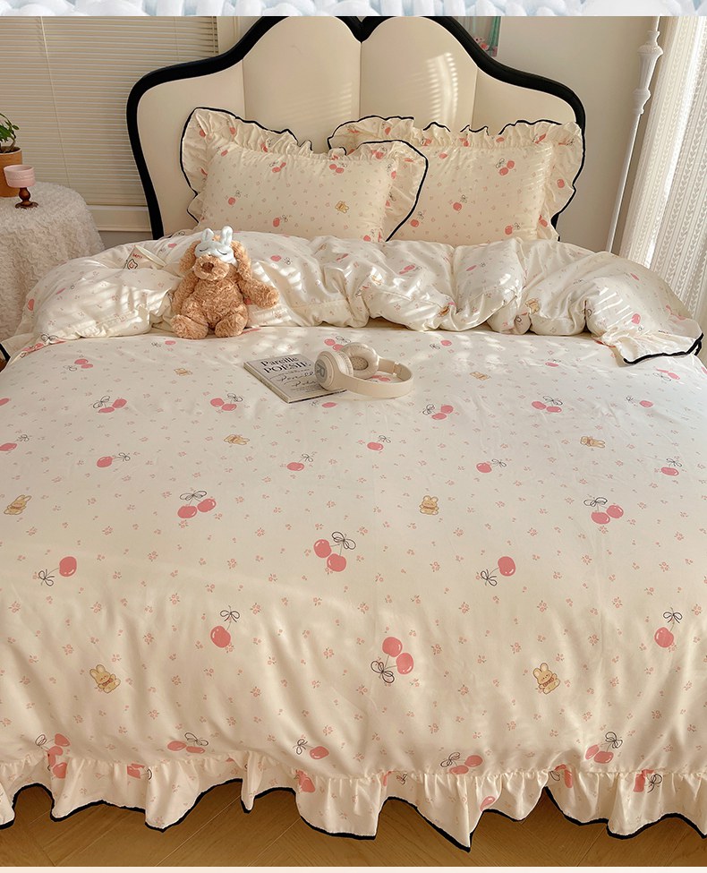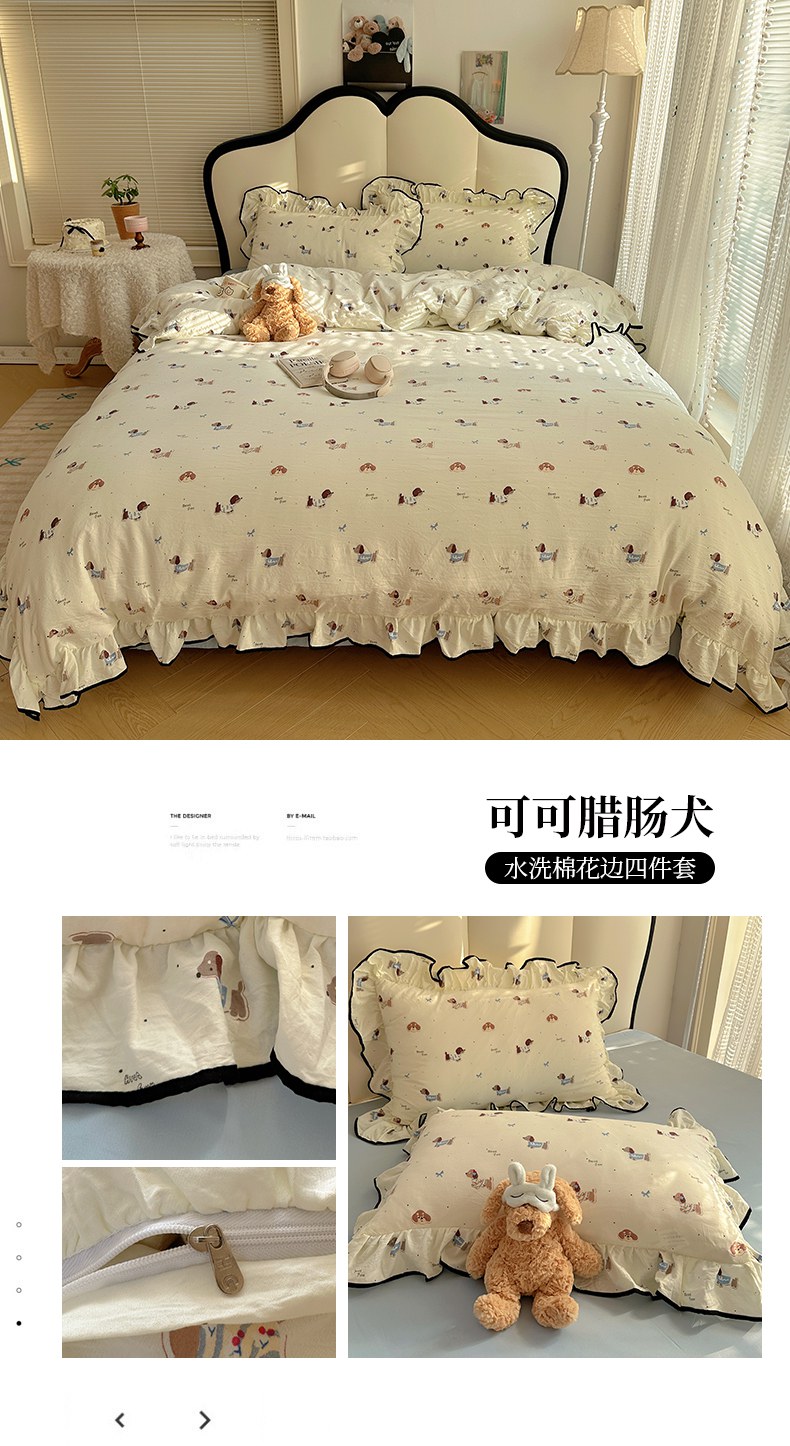 当前位置: 91家纺网 > 商品网购 > 床品套件 > 四件套 > 水洗棉四件套 > 韩巢家纺 2026新款水洗棉花边款四件套 摘樱桃的小熊【大花边款】
