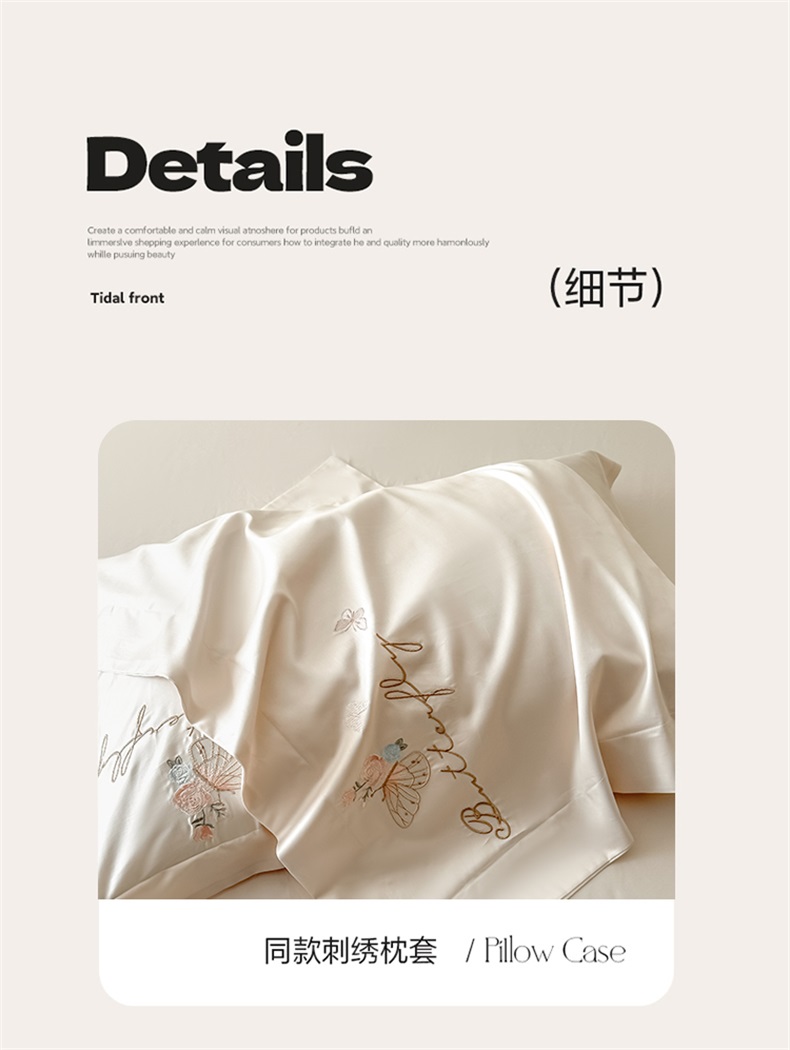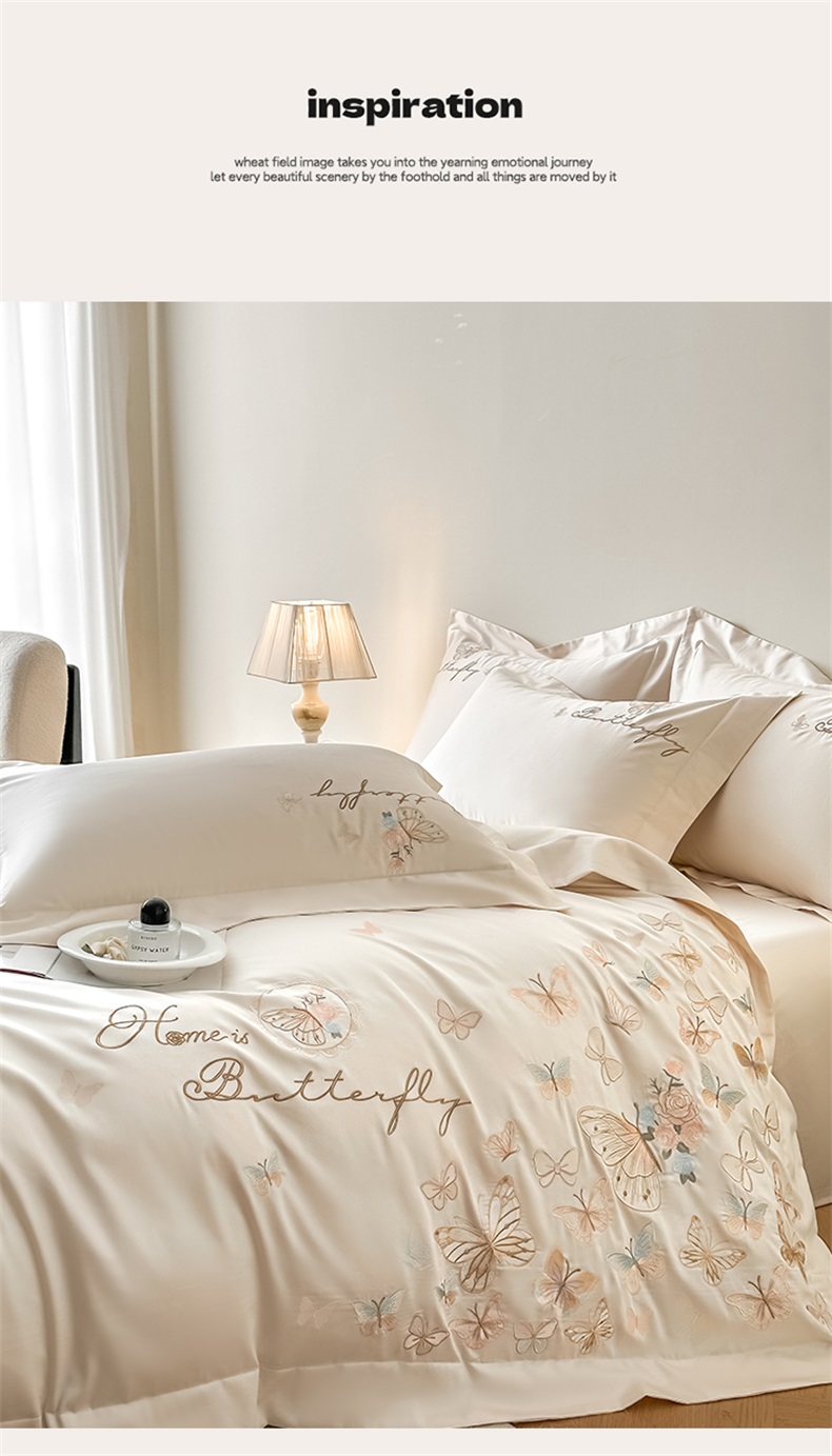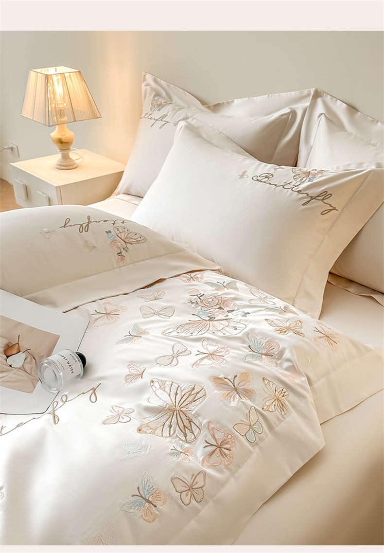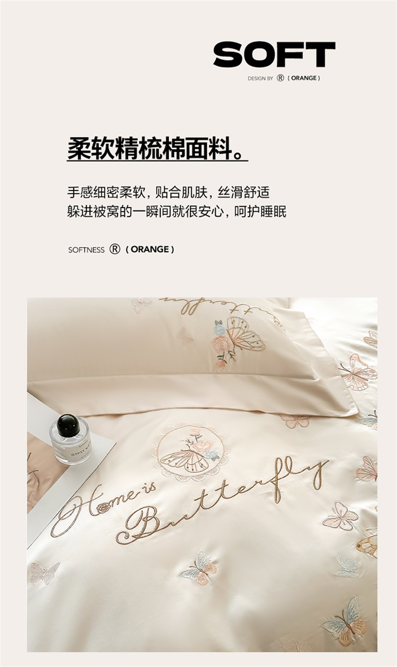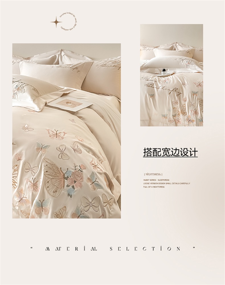 (总)金喜 2026新款柔软刺绣精梳棉四件套-梦蝶系列,梦蝶-月光白,梦蝶-繁星蓝,梦蝶-浅豆沙,梦蝶-香芋紫