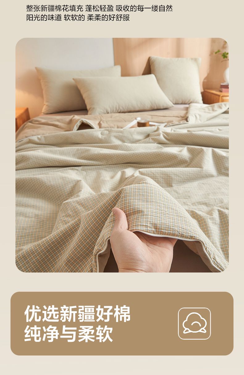 (总)金喜 2025新款全棉棉花被夏被四件套,小蓝格,澳白灰,乐事米,西蒙粉,西蒙黄,夏末蓝