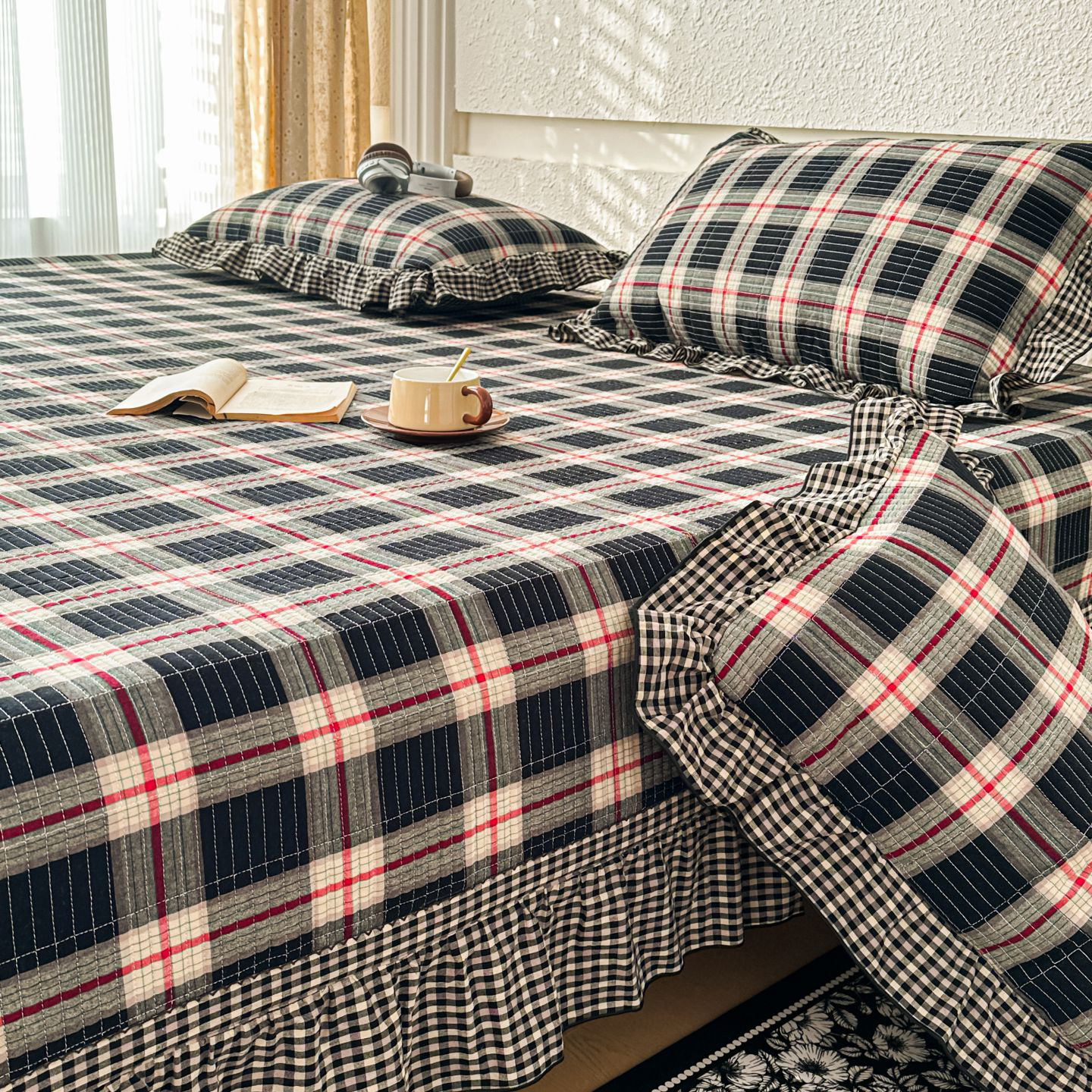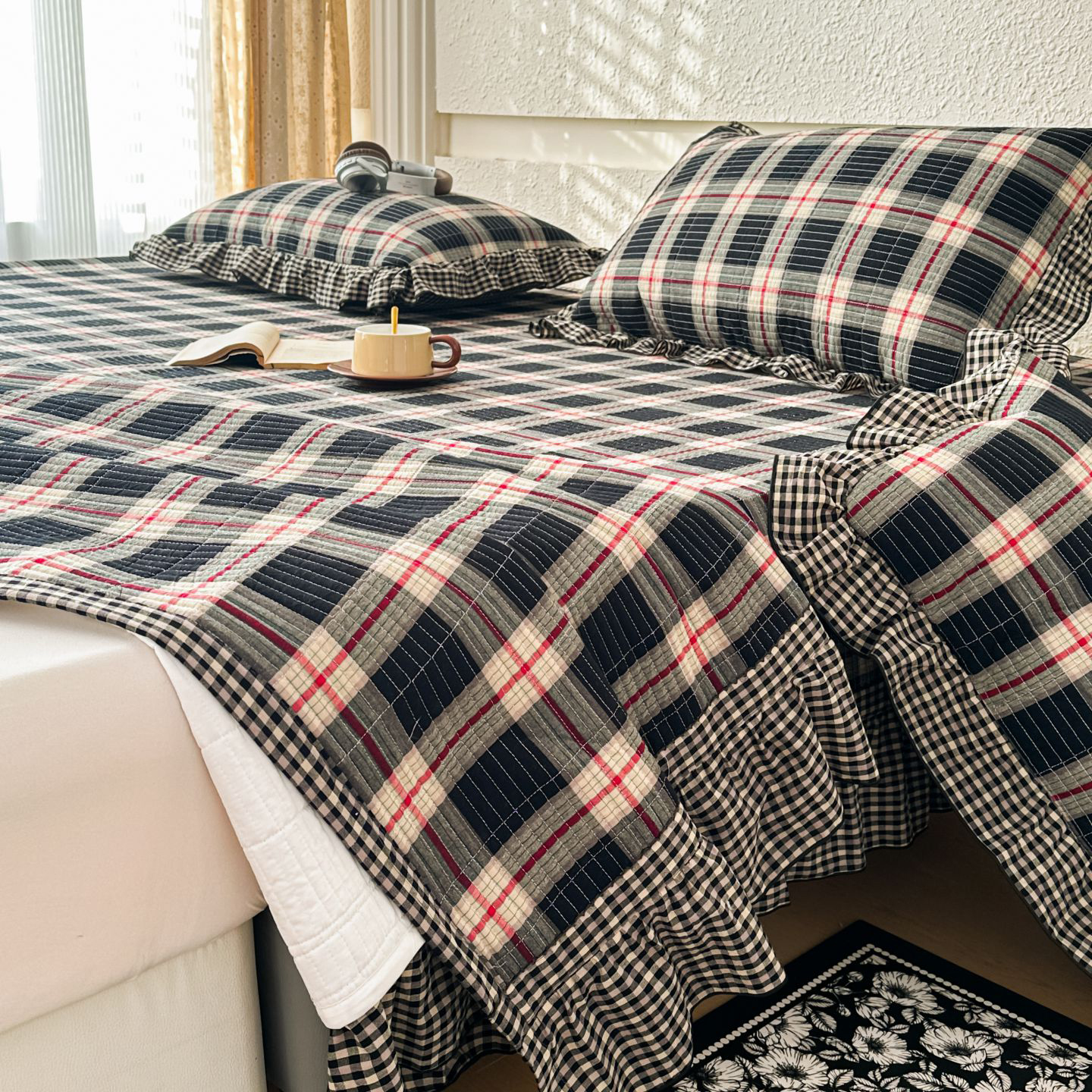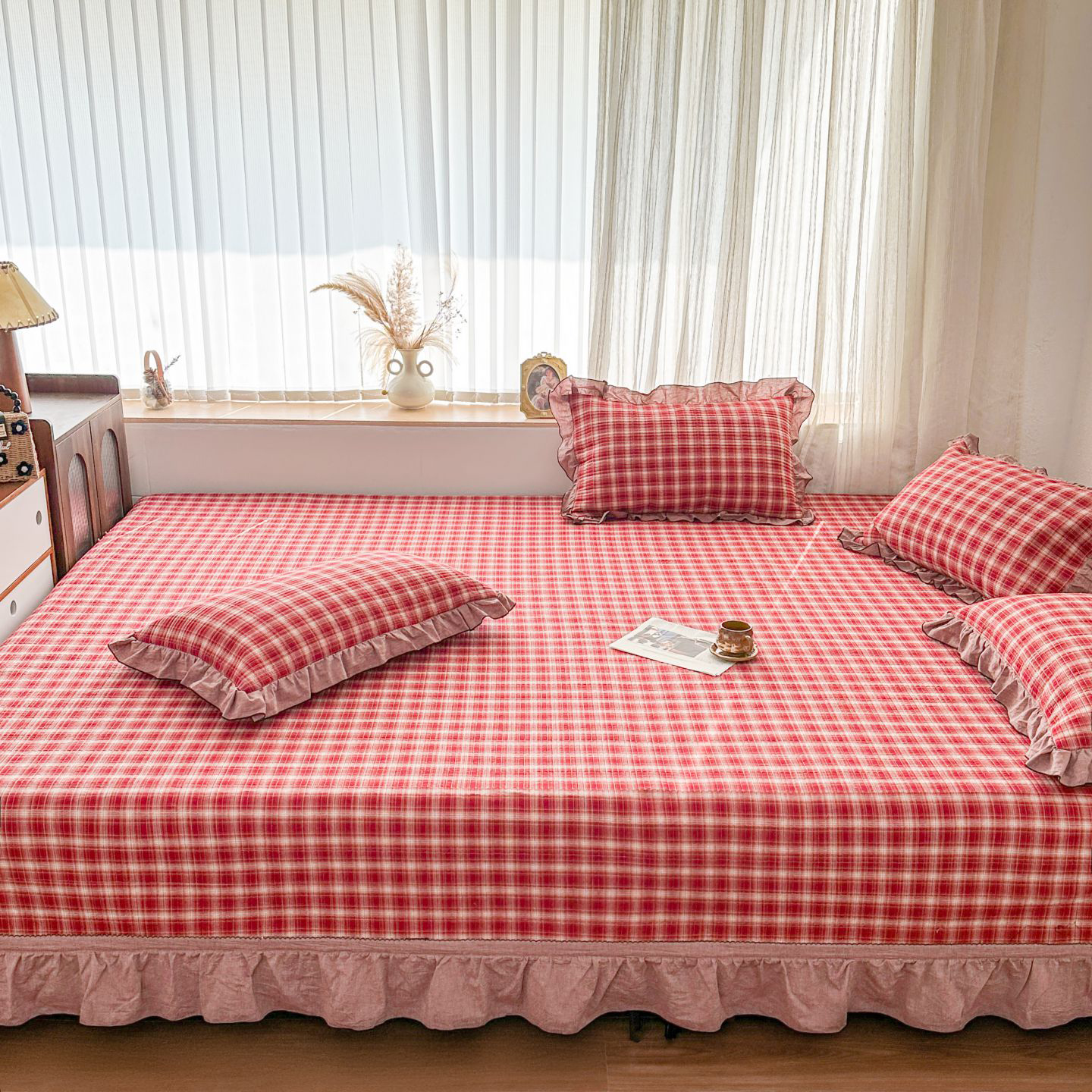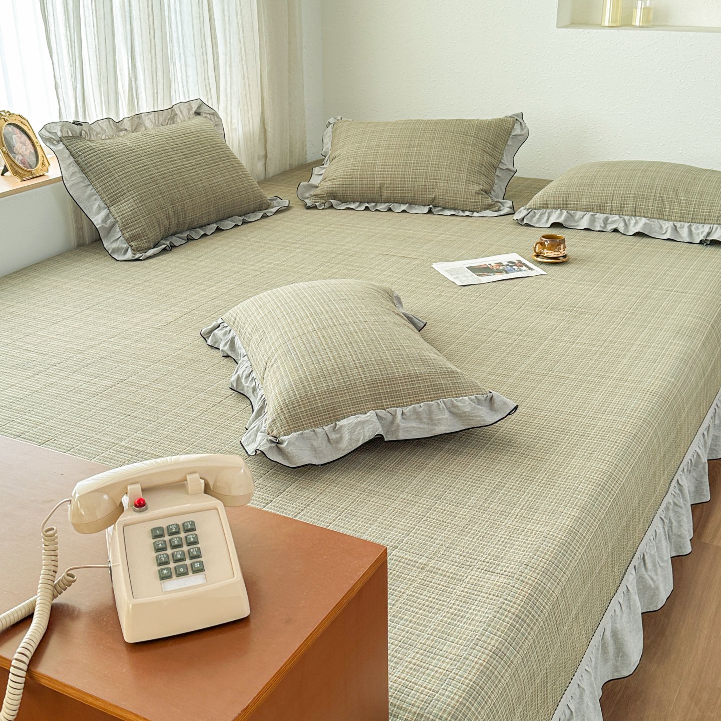 商品名称:暖居 2026新款大尺寸全棉色织花边款榻榻米农村大炕盖 英式格纹