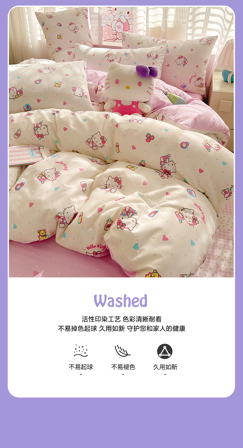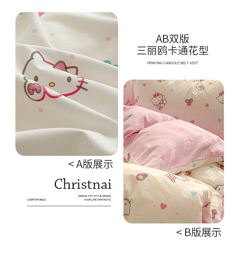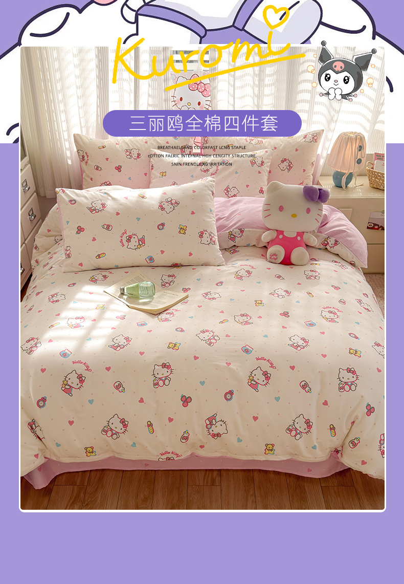 商品名称:曼之夏 2026新款全棉三丽鸥正版授权卡通四件套 甜甜凯蒂