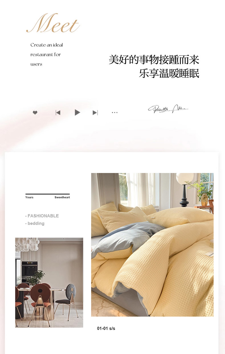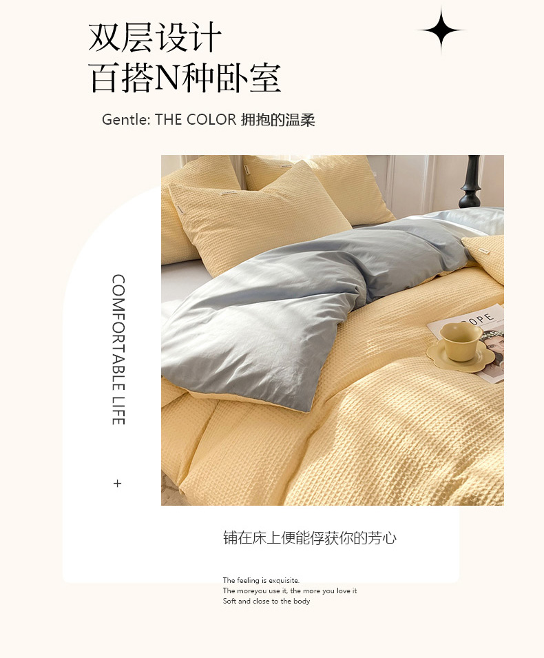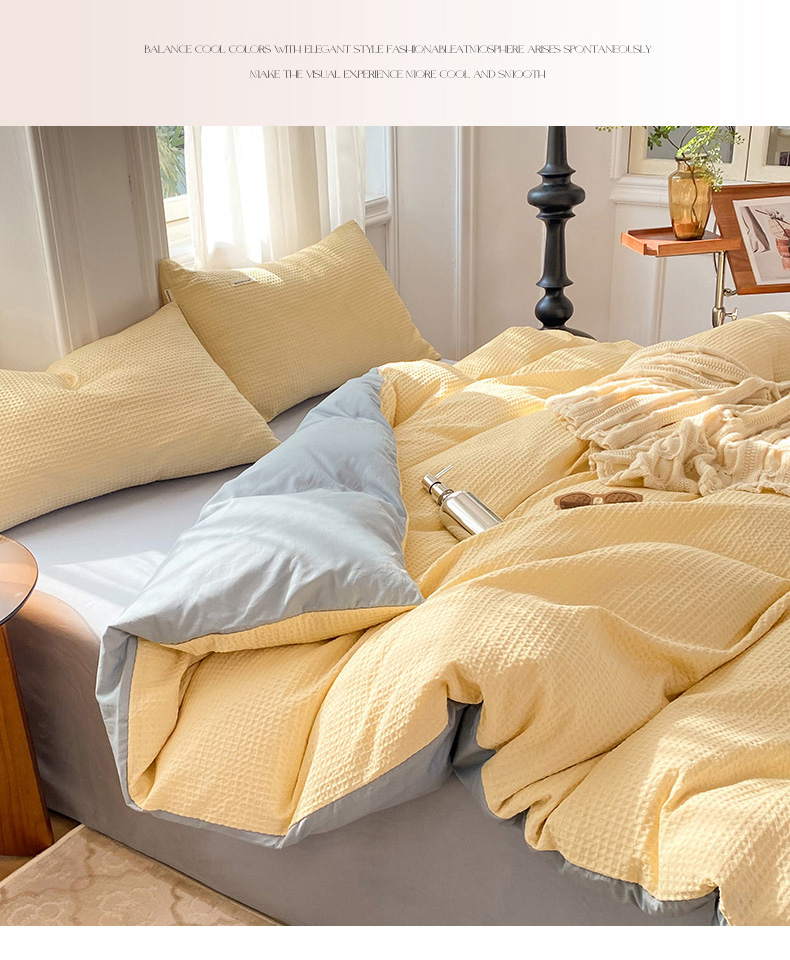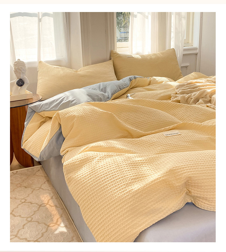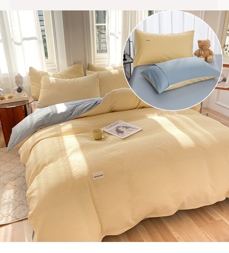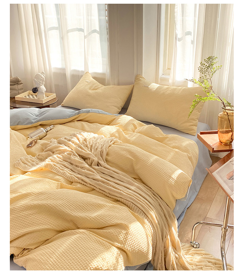 当前位置: 91家纺网 > 商品网购 > 床品套件 > 四件套 > 全棉普通四件套 > 眠博士 2026新款简约时尚全棉华夫格四件套(提供买家秀)简约款 奶黄蓝