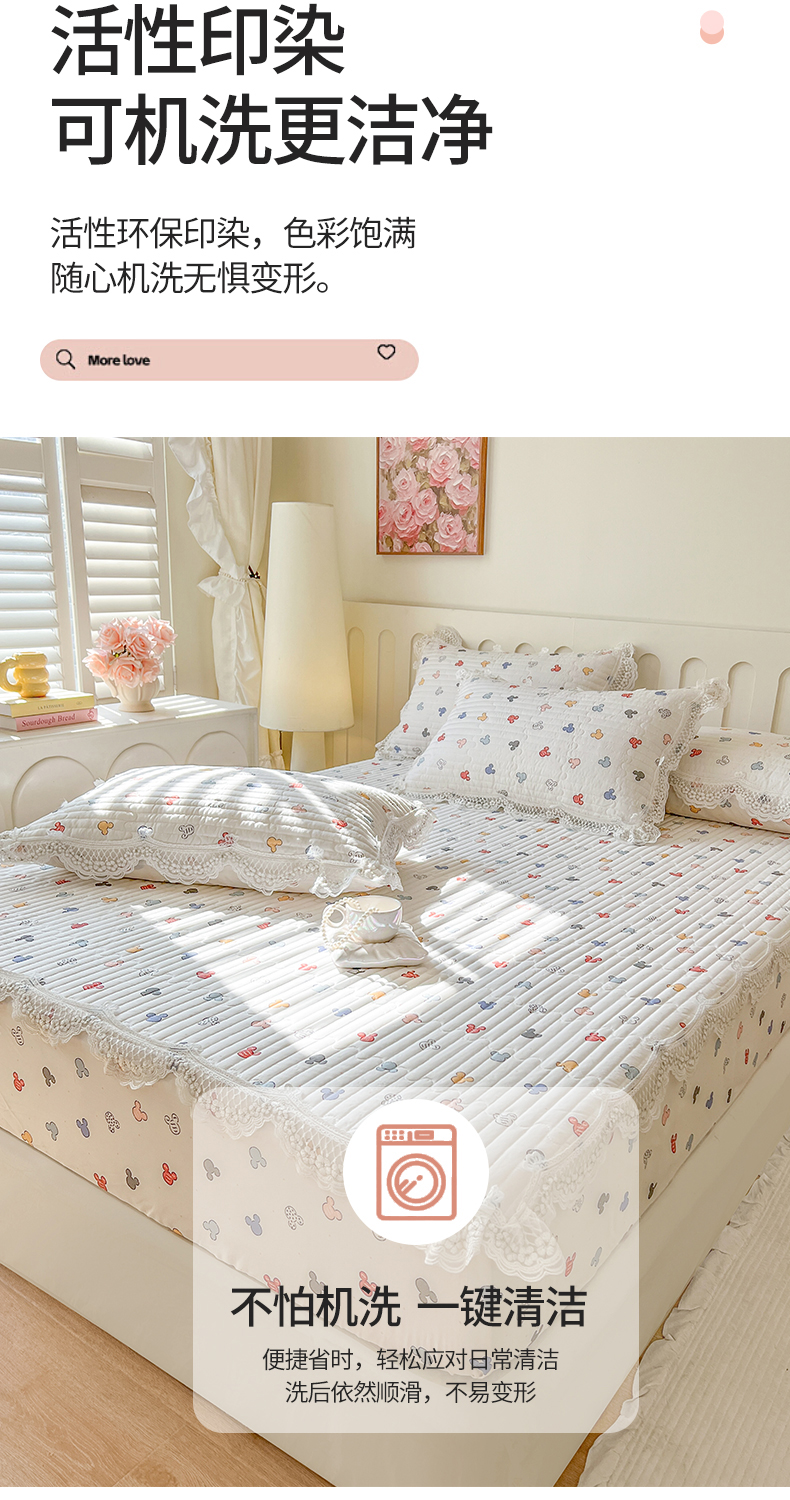 (总)网红馆(ck家纺) 2026新款泡泡棉印花床笠三件套,花儿朵朵,花莫,甜心草莓,小清新,熊宝宝,悠悠花海,紫色恋人