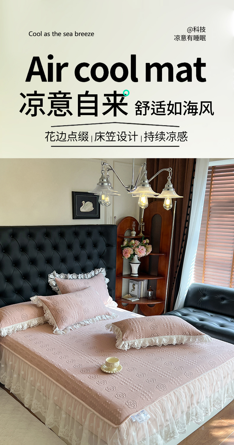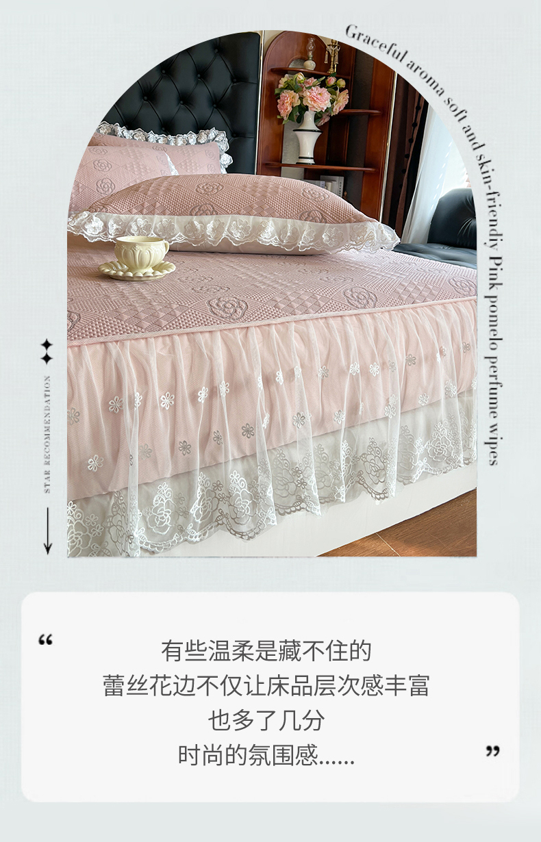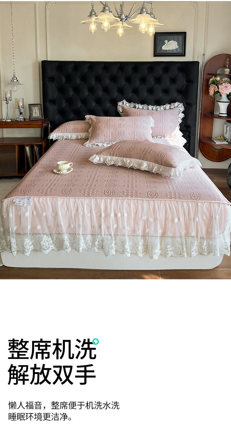商品名称:网红馆(ck家纺) 2026新款床笠式床裙豆豆冰凉席-瑞莎 复古粉