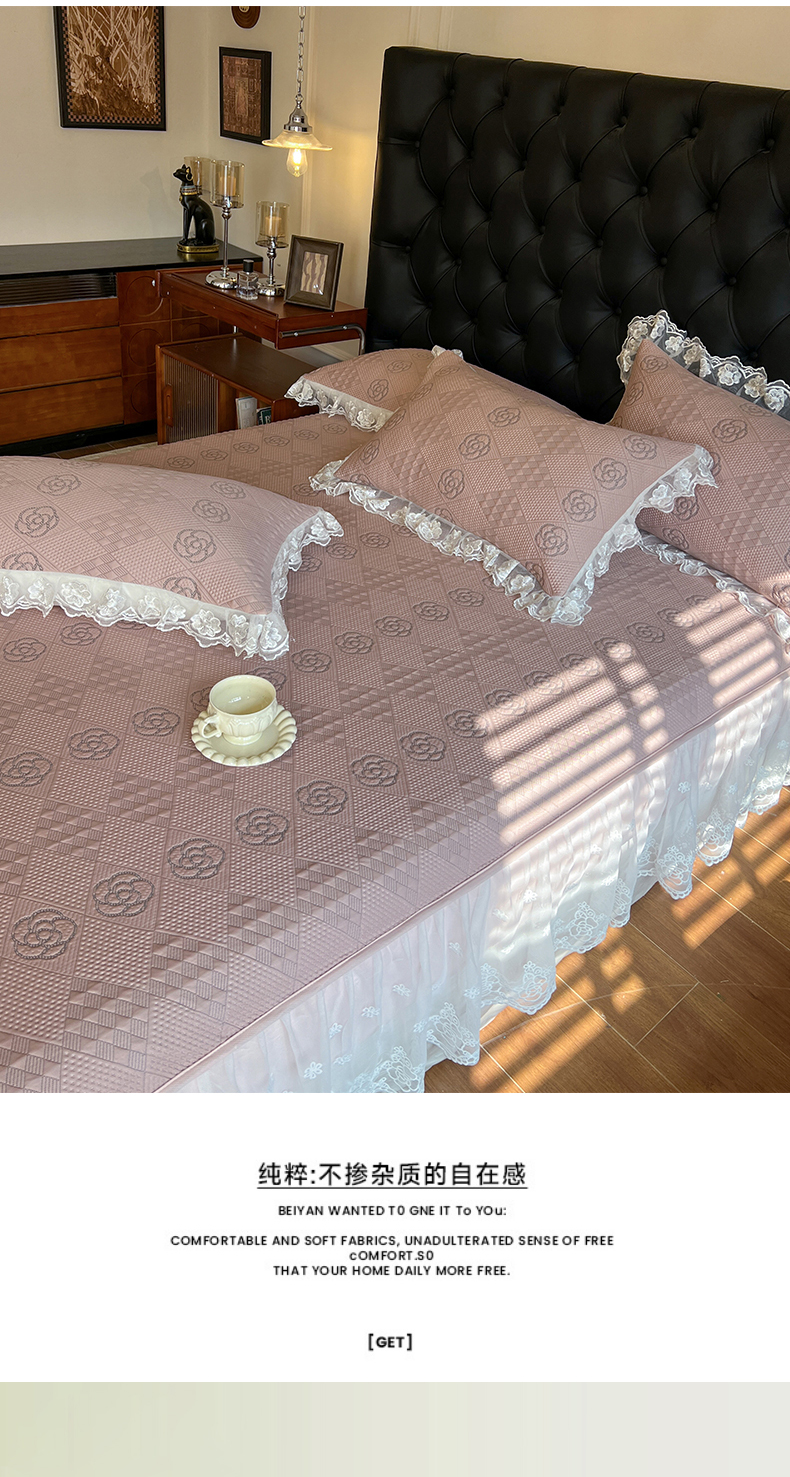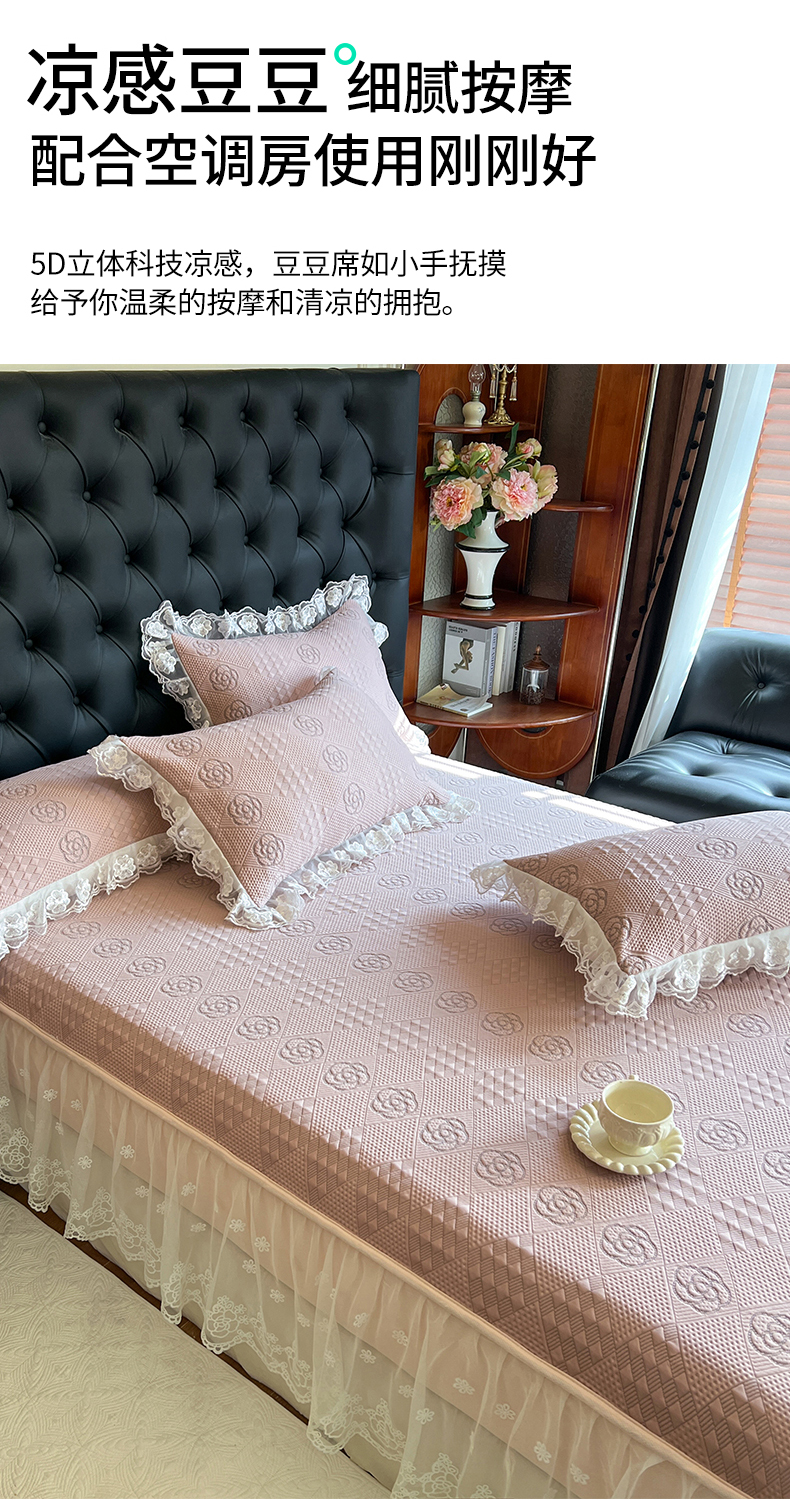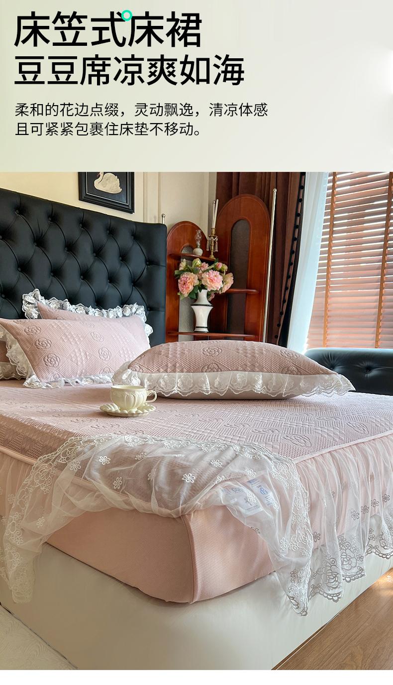 网红馆(ck家纺) 2026新款床笠式床裙豆豆冰凉席-瑞莎 复古粉