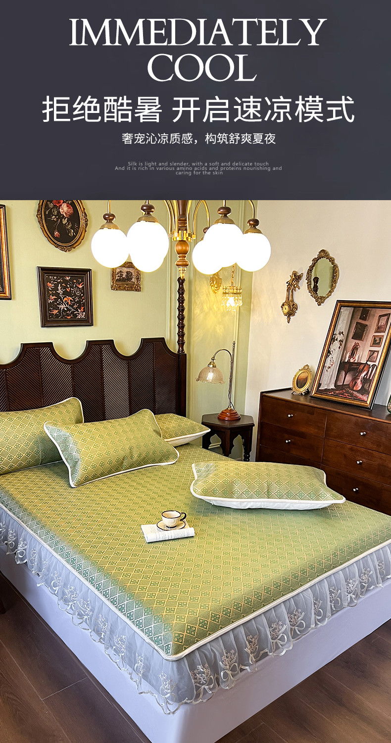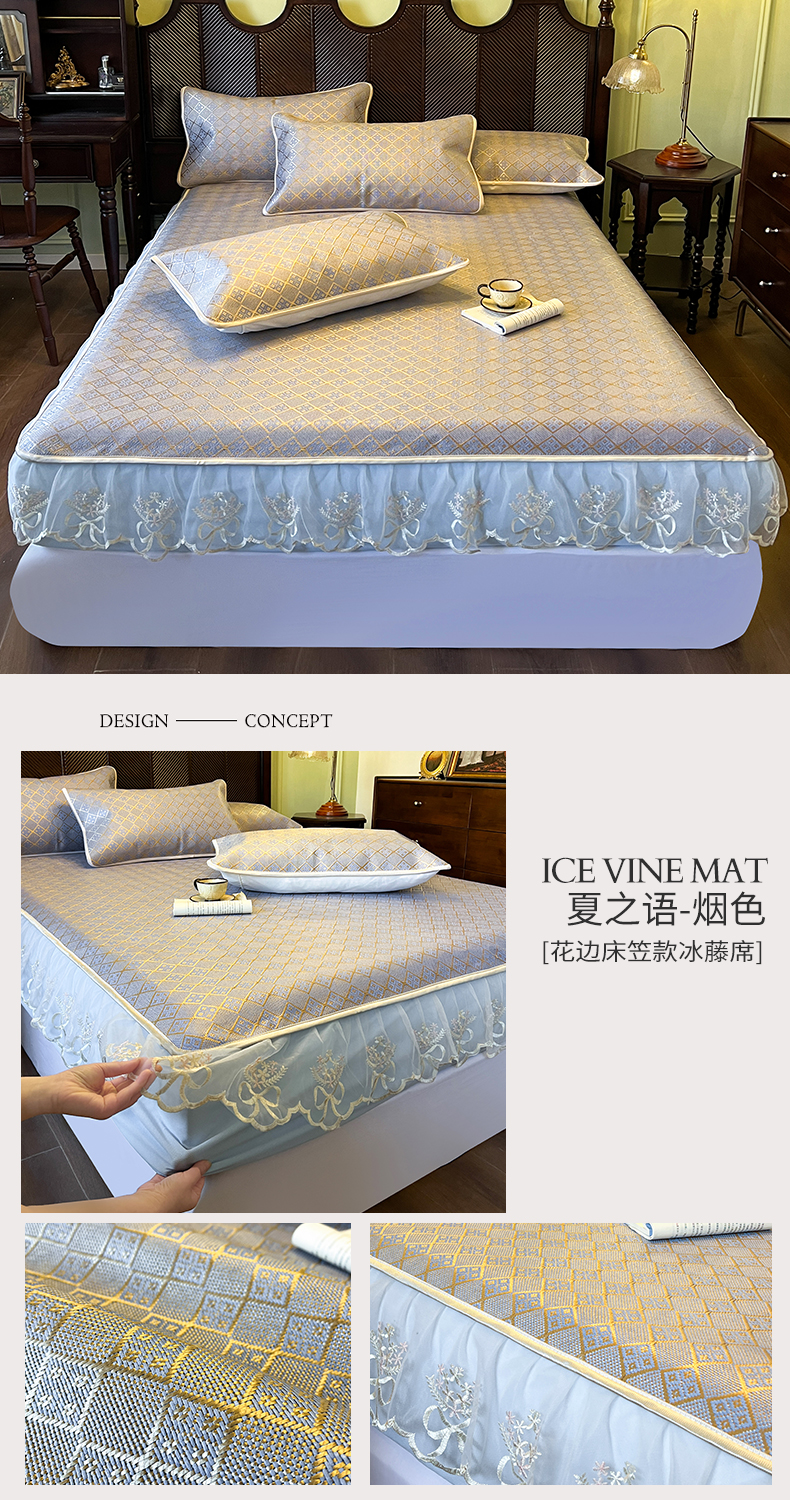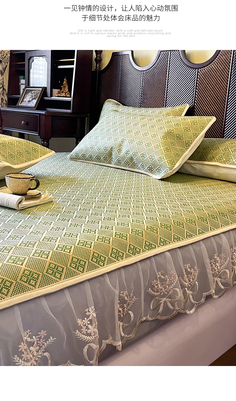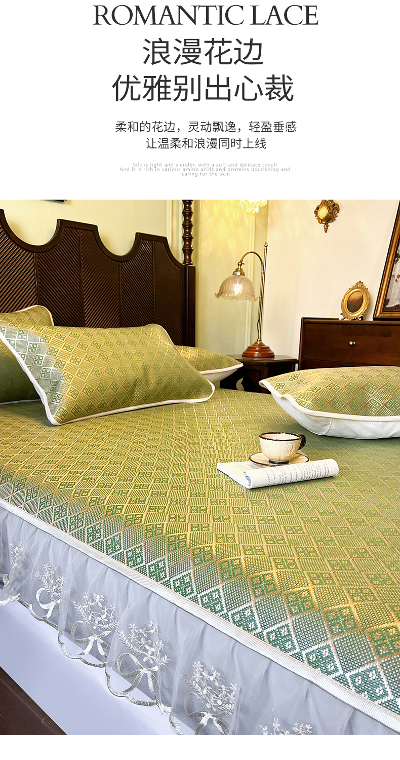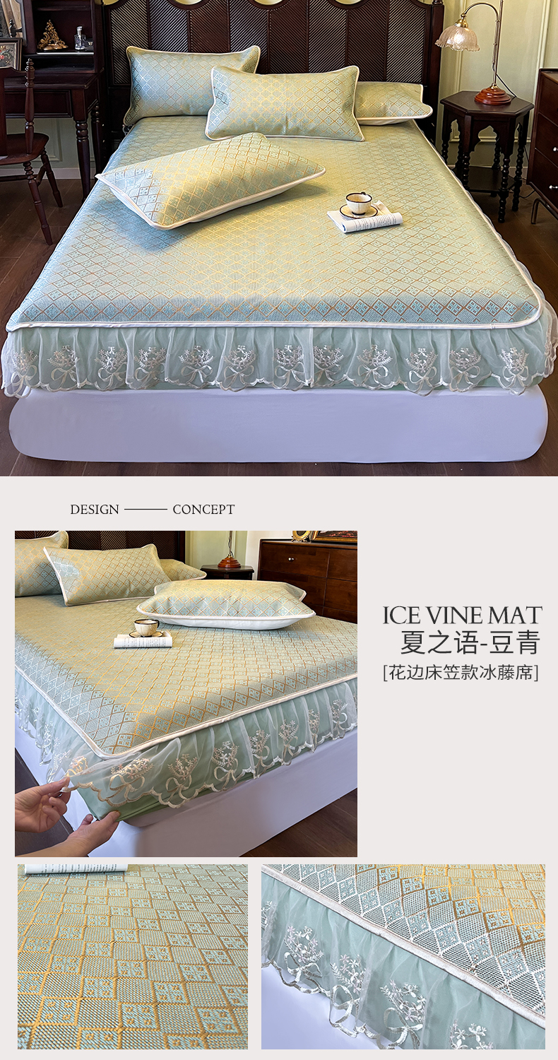 商品名称:网红馆(ck家纺) 2026新款床笠式花边冰藤席-夏之语 葱绿