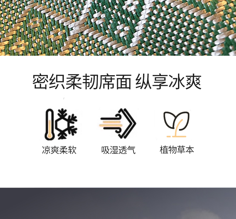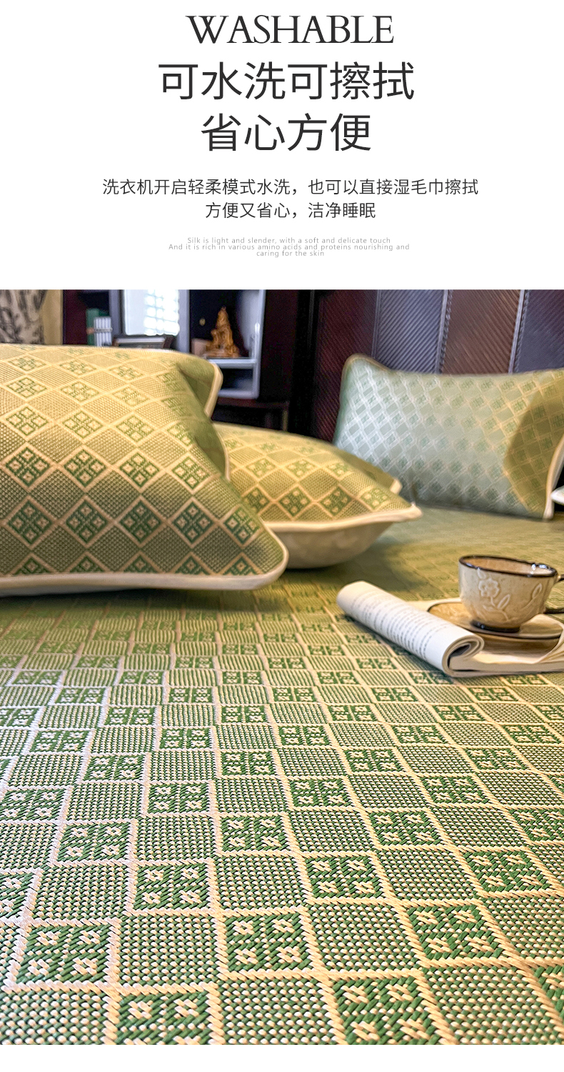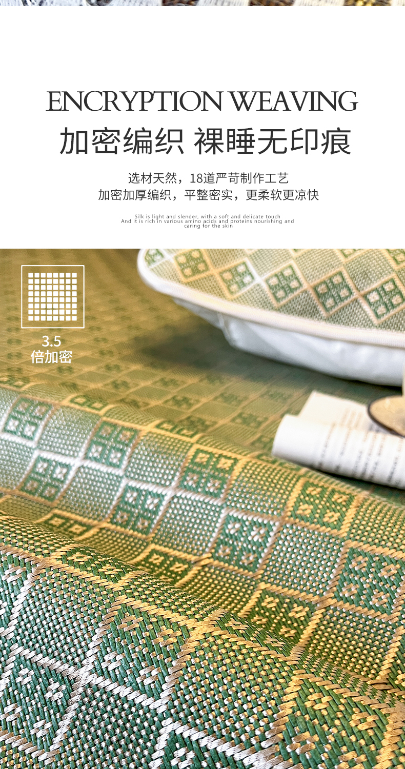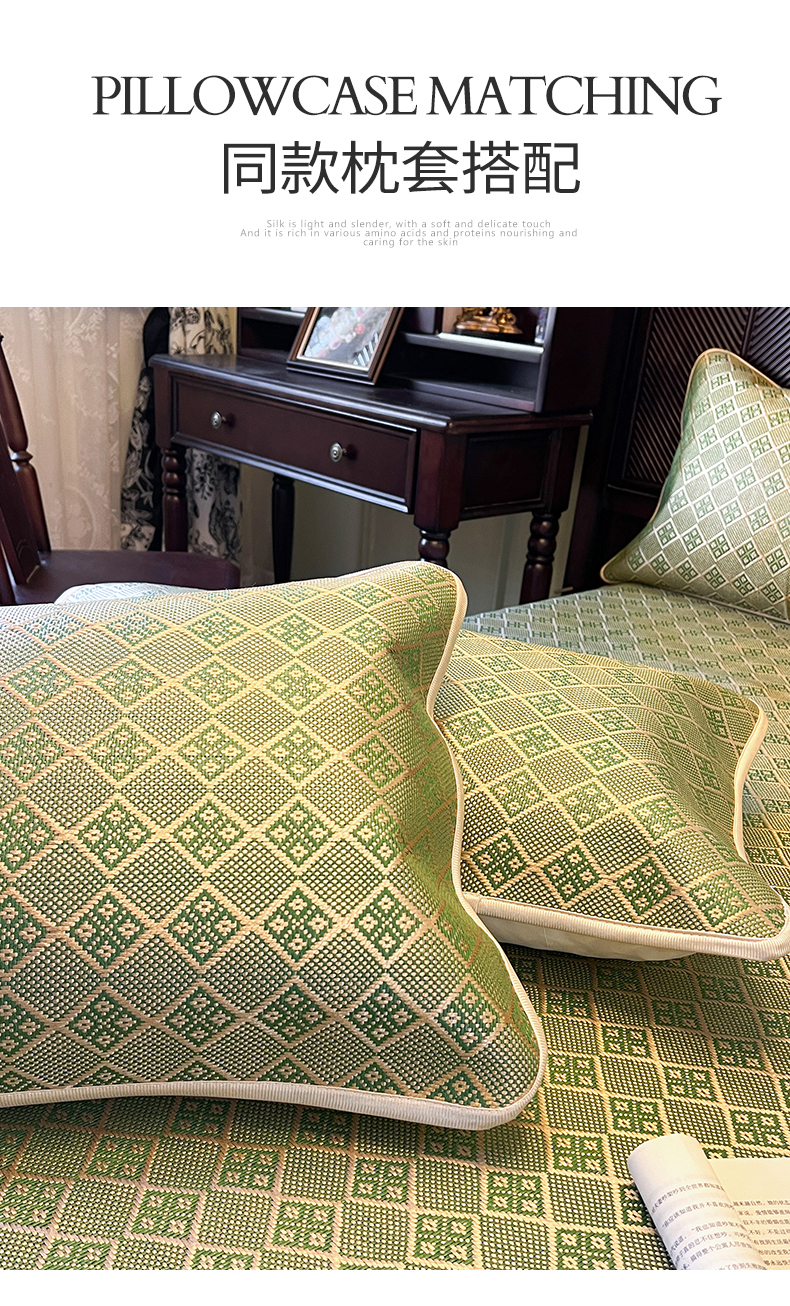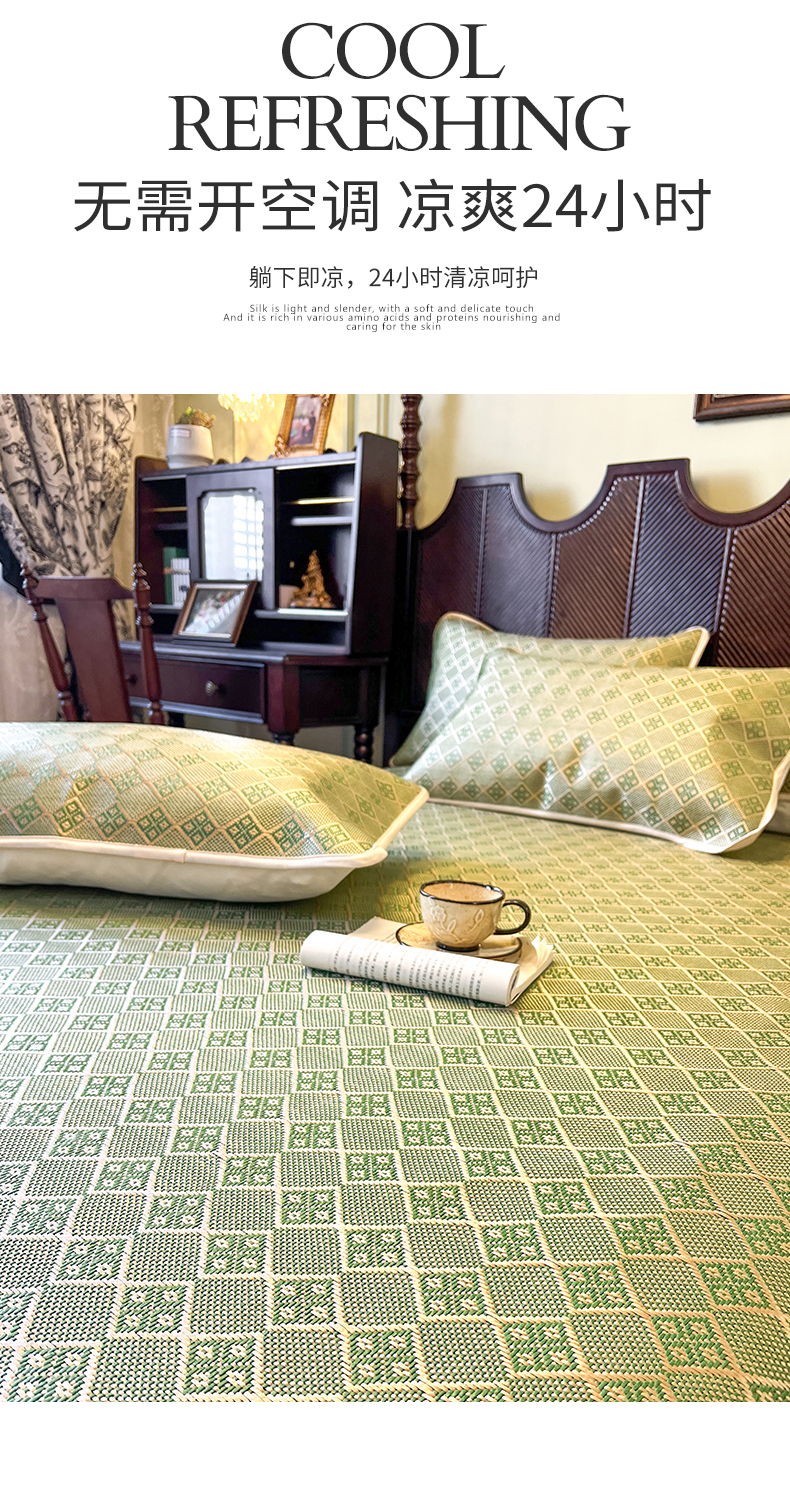 商品名称:网红馆(ck家纺) 2026新款床笠式花边冰藤席-夏之语 葱绿