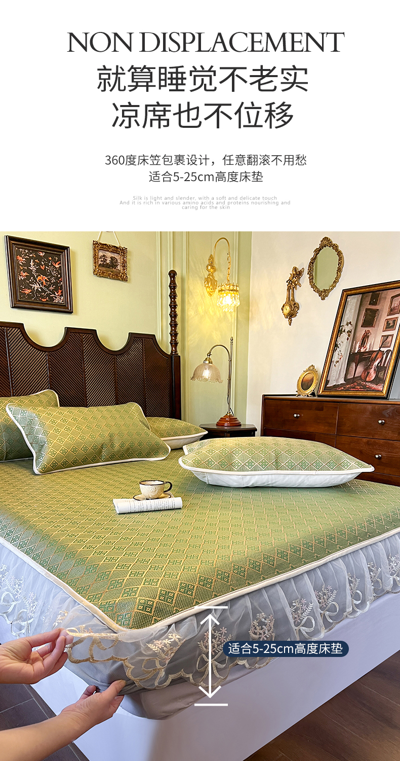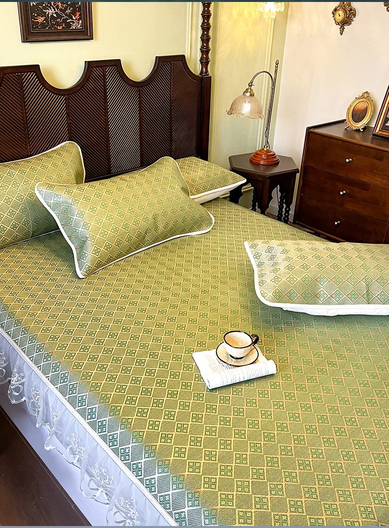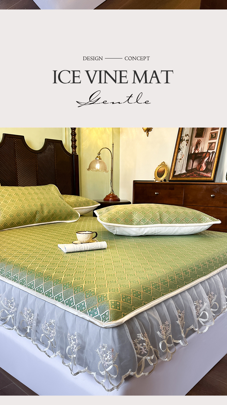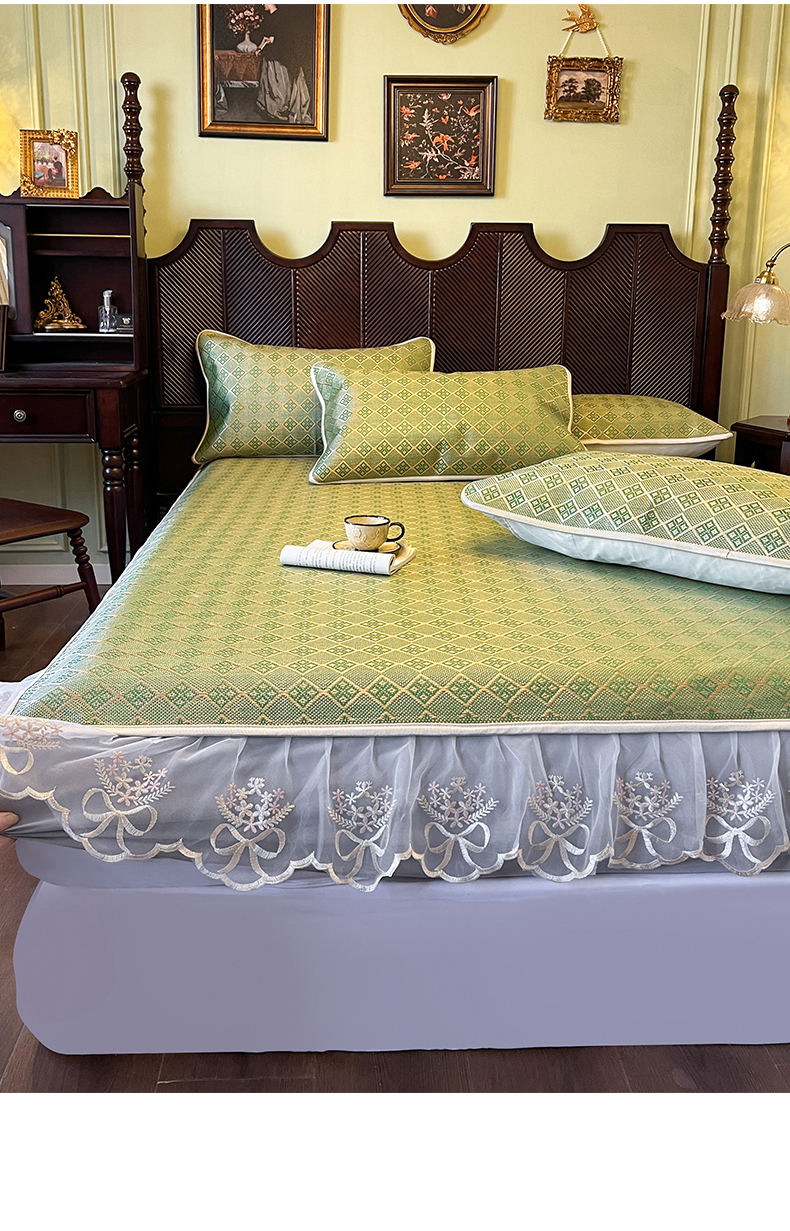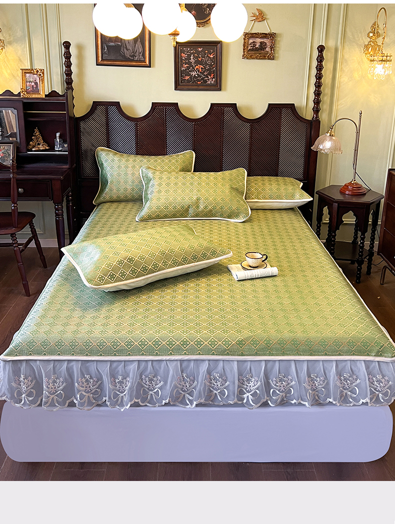 网红馆(ck家纺) 2026新款床笠式花边冰藤席-夏之语 葱绿