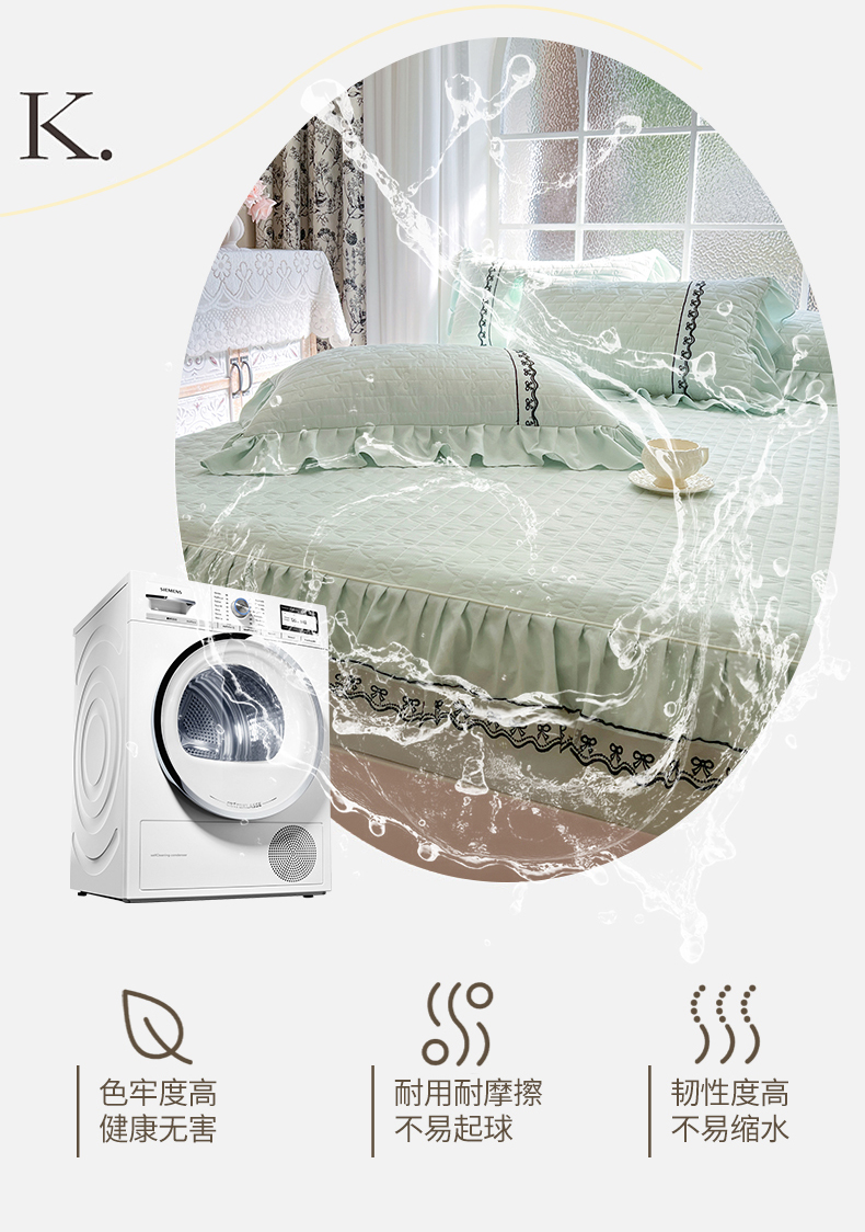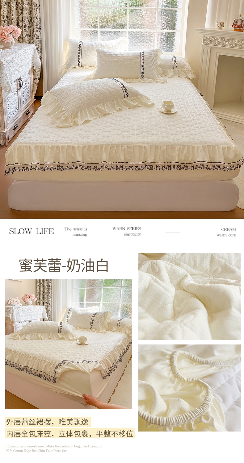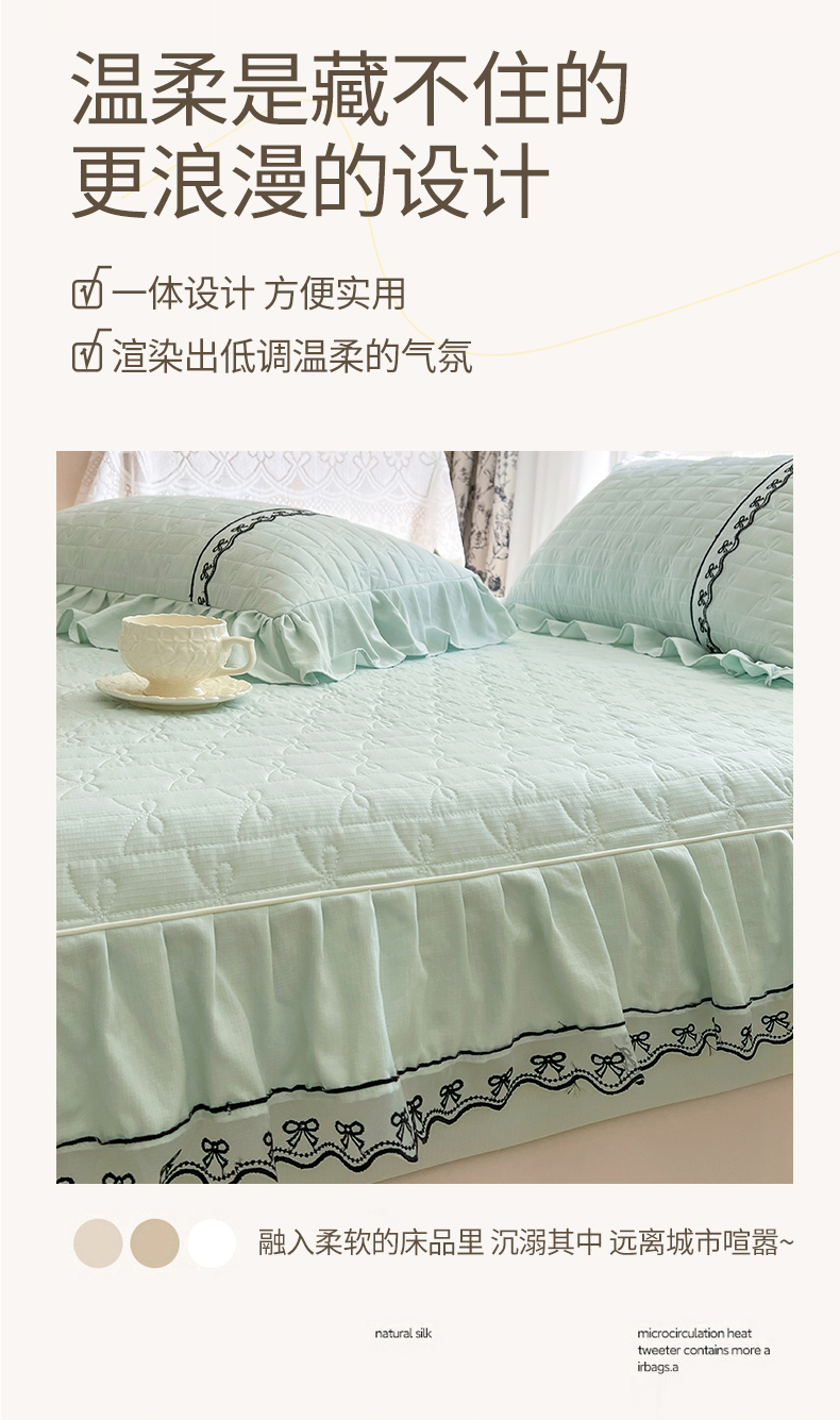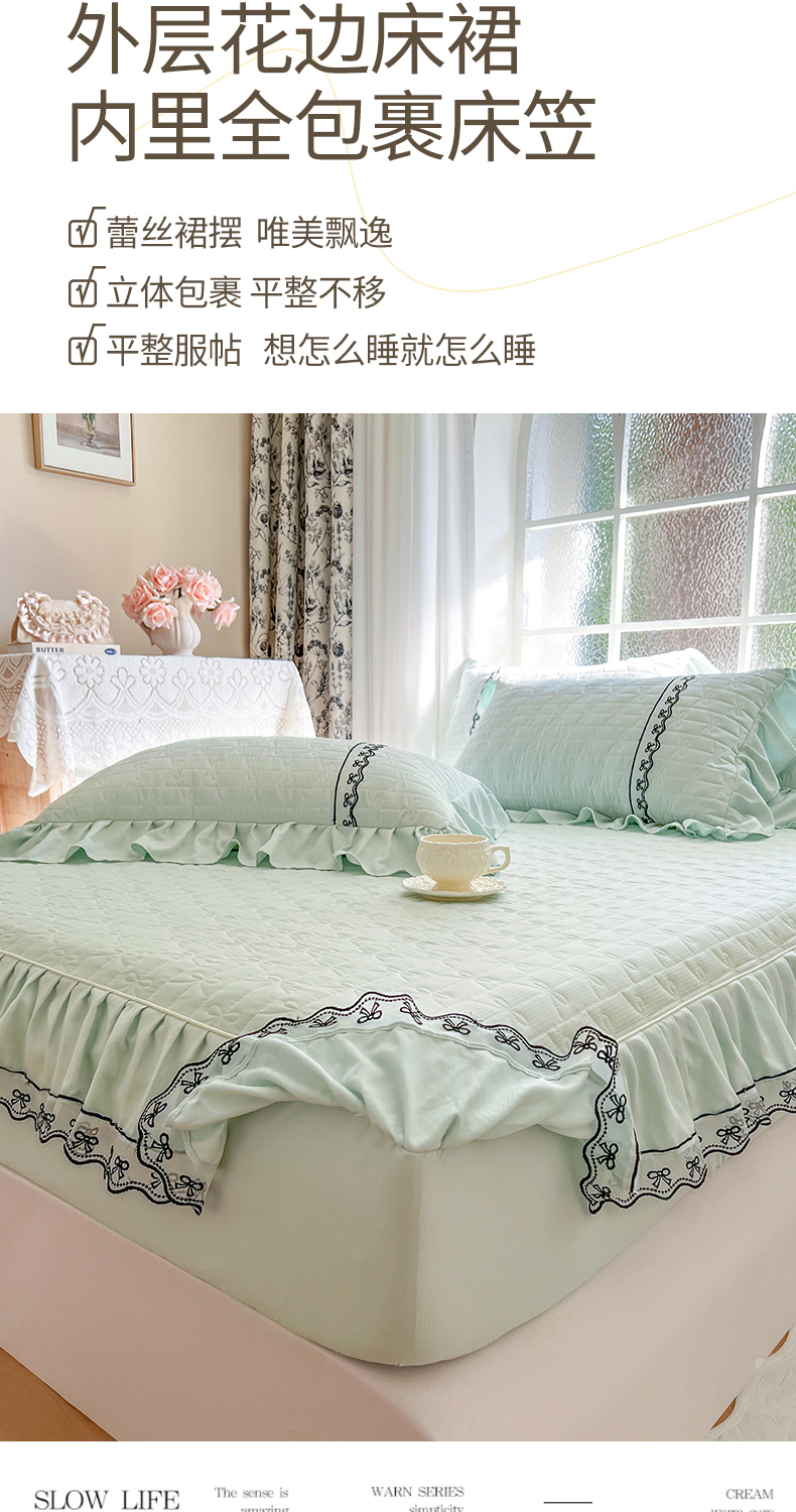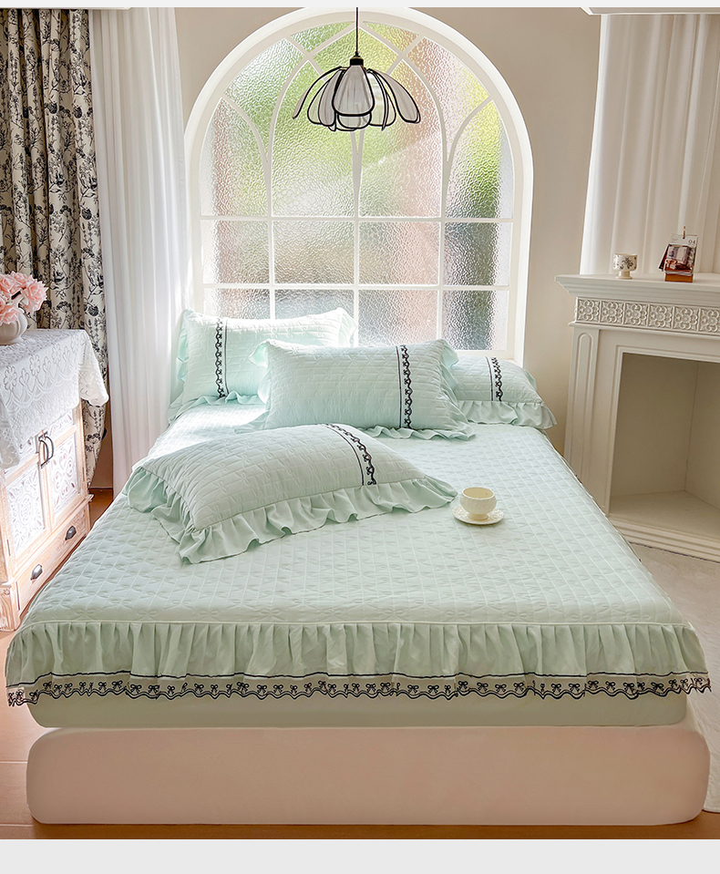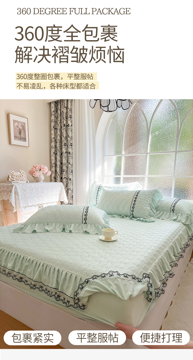 • 91家纺网 家纺一手货源 找家纺 网红馆(ck家纺) 2026新款喜芙棉蕾丝夹棉蜜芙蕾床笠 豆蔻绿