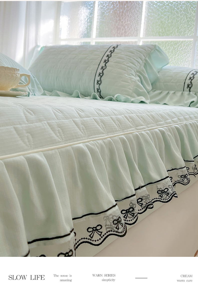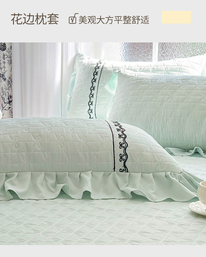 网红馆(ck家纺) 2026新款喜芙棉蕾丝夹棉蜜芙蕾床笠 豆蔻绿