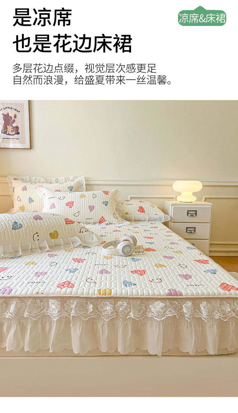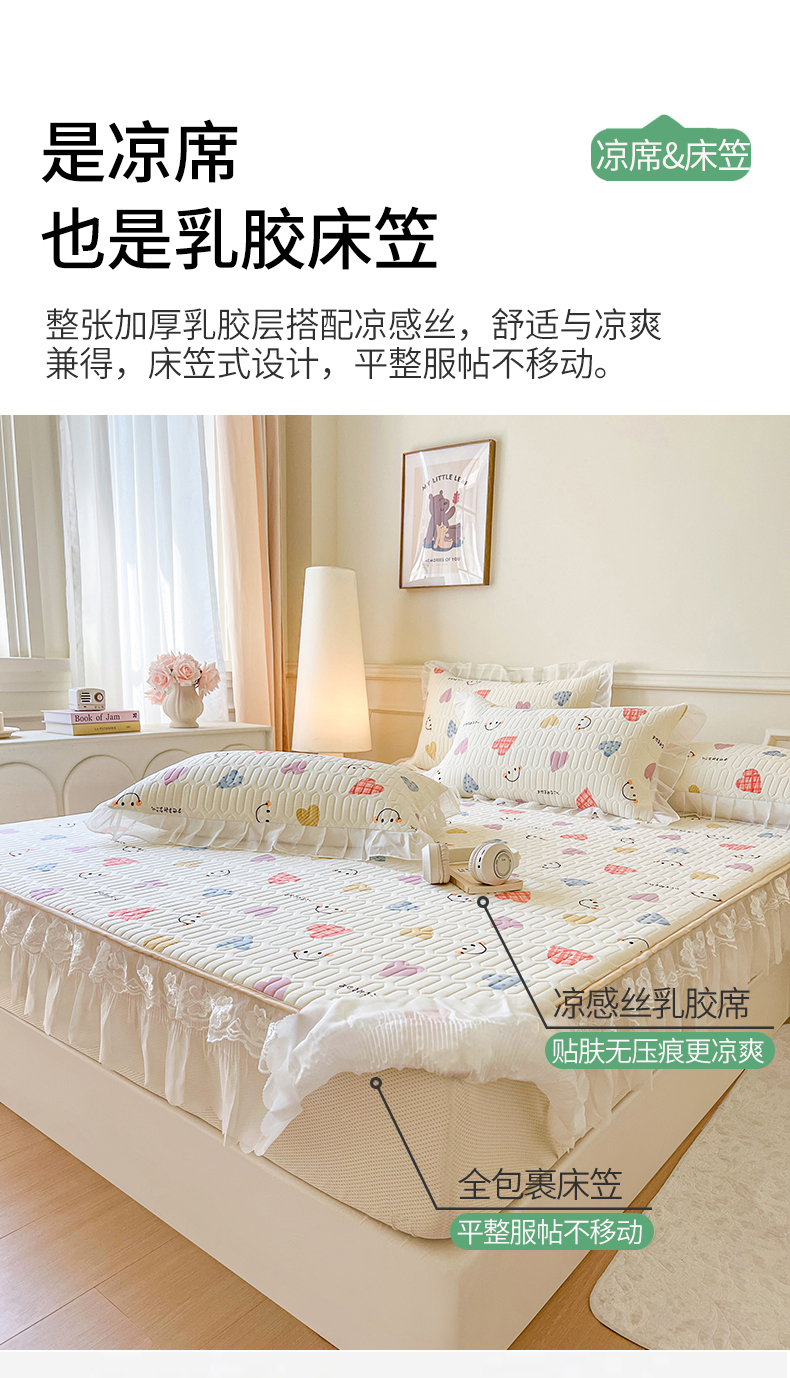 (总)网红馆(ck家纺) 2026新款凉感丝床笠式床裙款乳胶乳印花凉席
