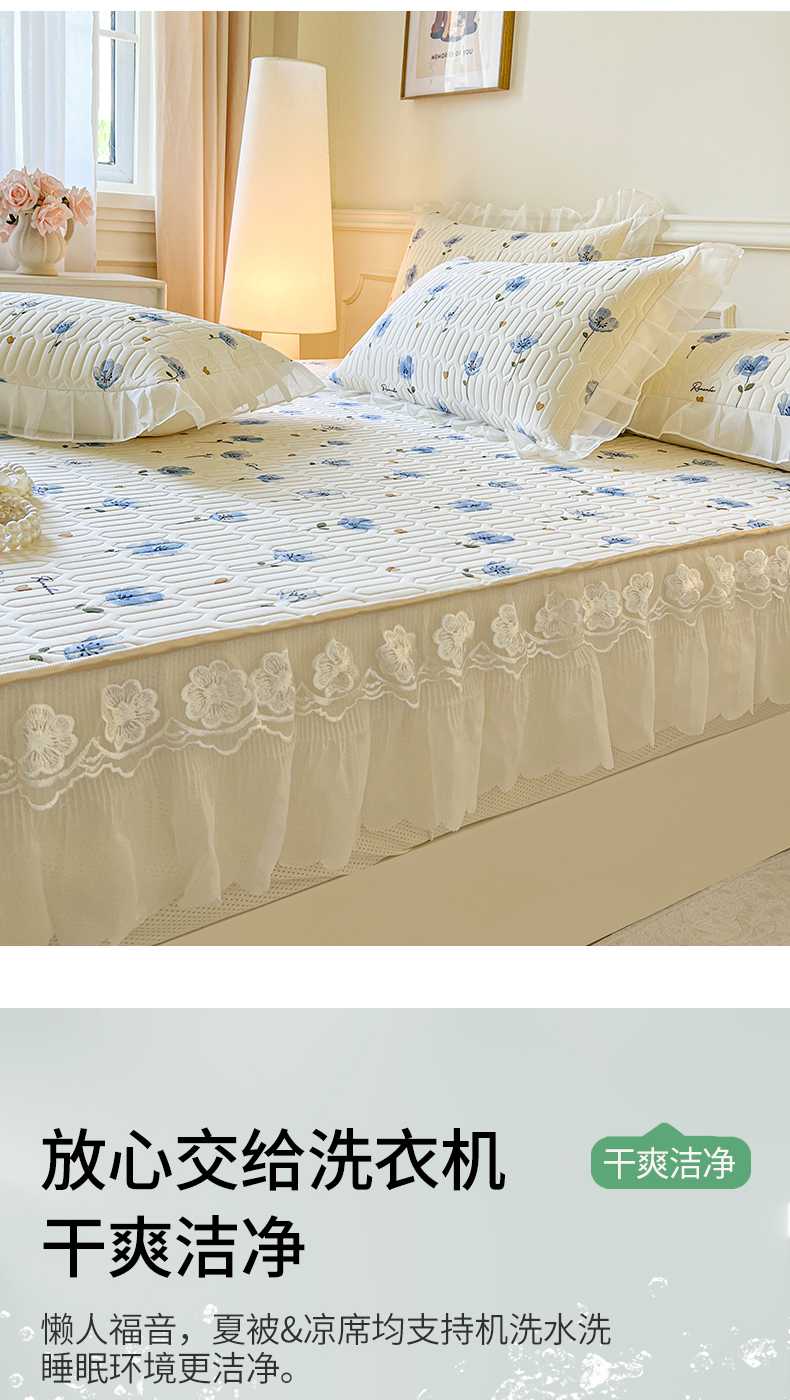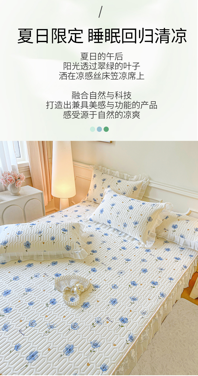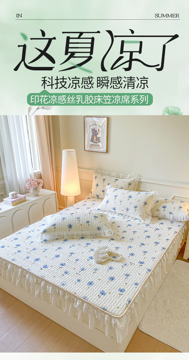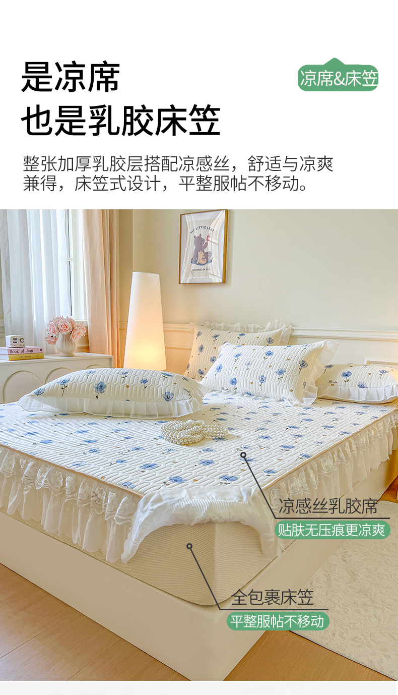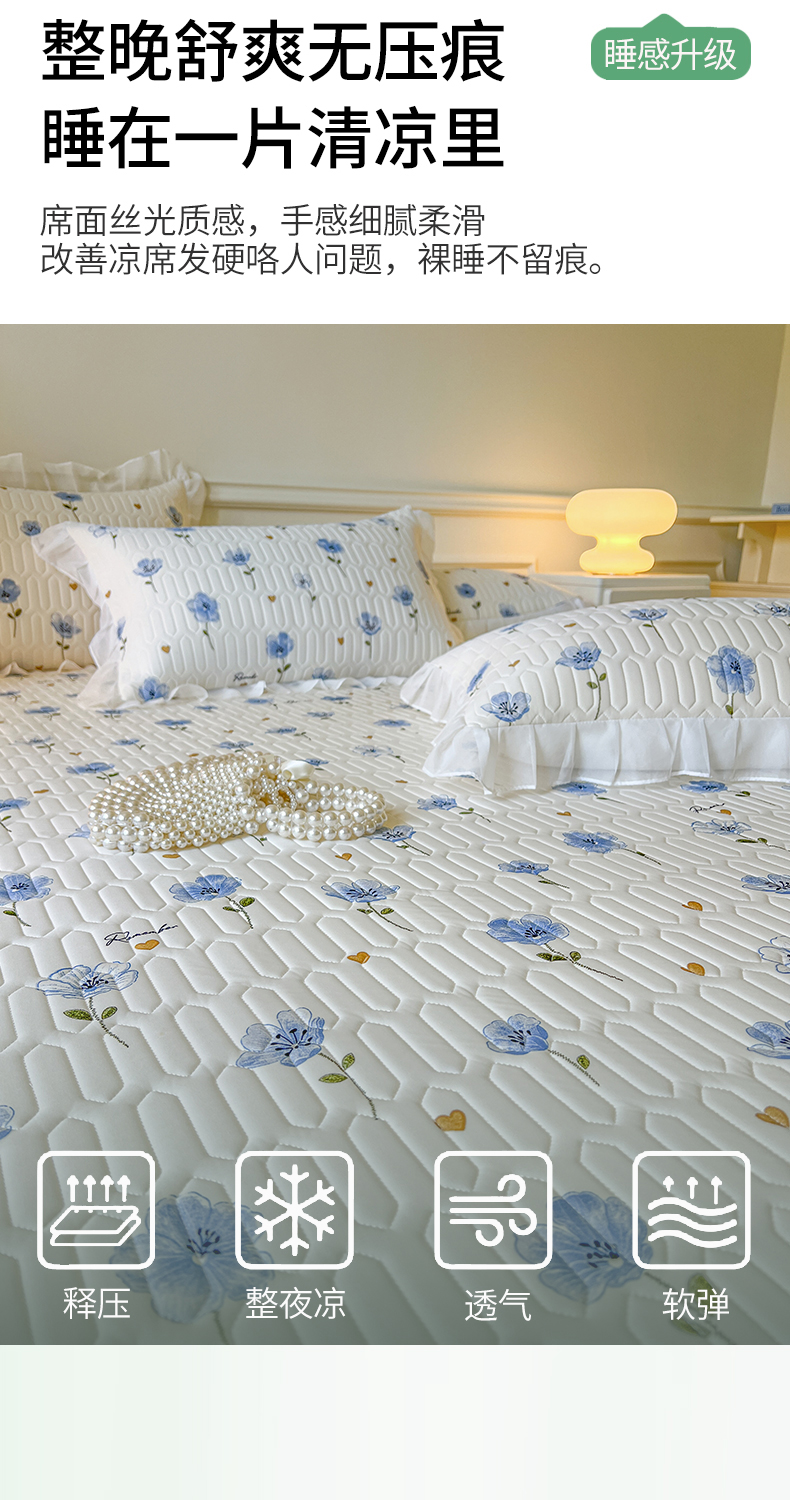 商品名称:网红馆(ck家纺) 2026新款凉感丝床笠式床裙款乳胶乳印花凉席 玉秀 兰