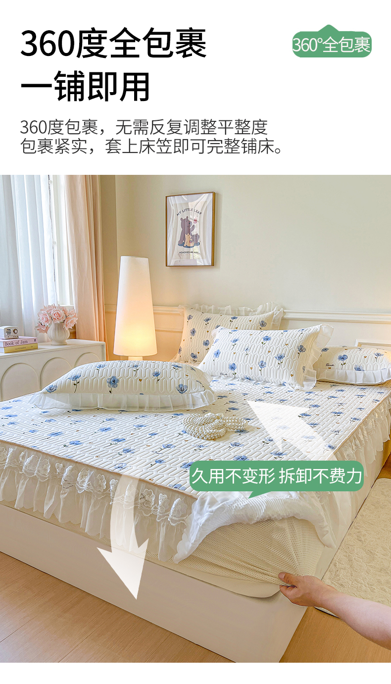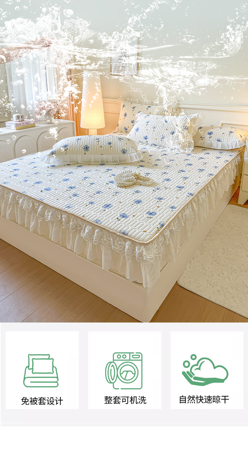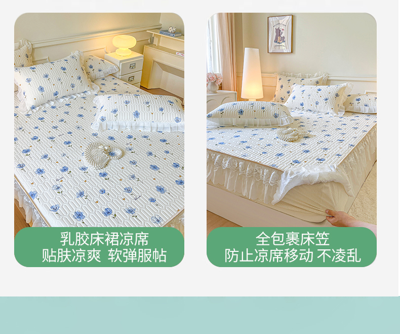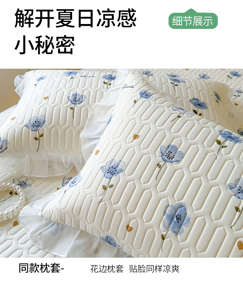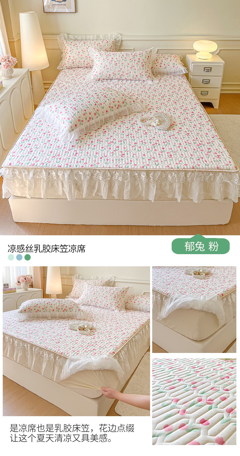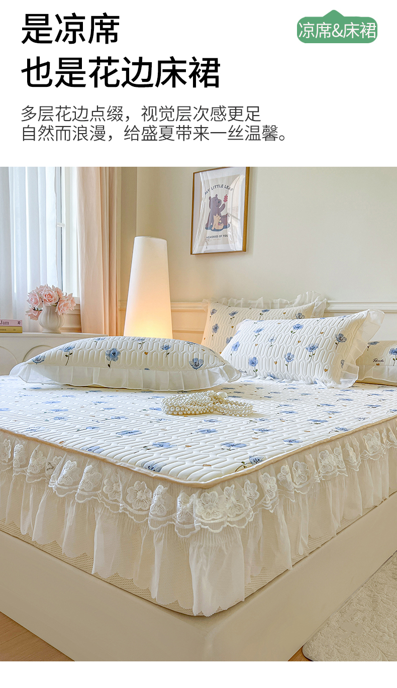 商品名称:网红馆(ck家纺) 2026新款凉感丝床笠式床裙款乳胶乳印花凉席 玉秀 兰