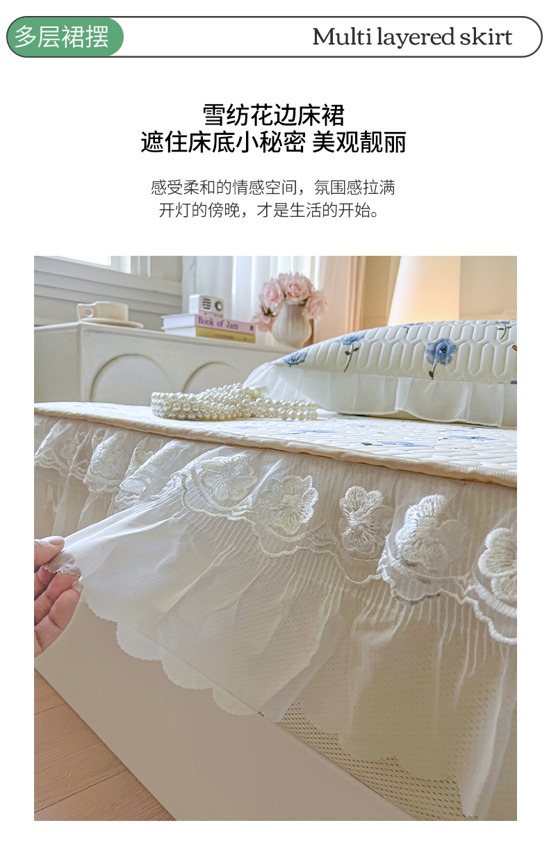 (总)网红馆(ck家纺) 2026新款全棉蕾丝花边床裙款床笠晨暮花间系列,绯红,粉色,麦绿,米色,浅紫,雾蓝