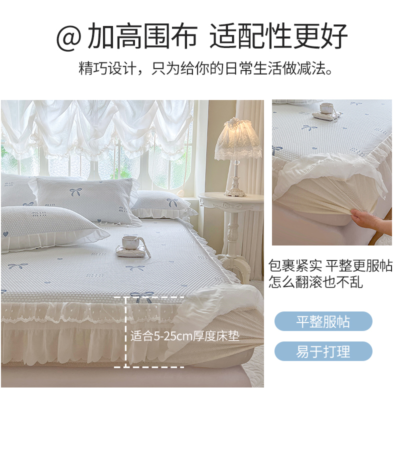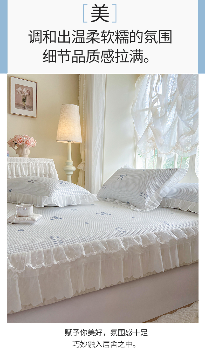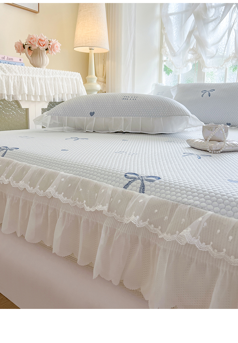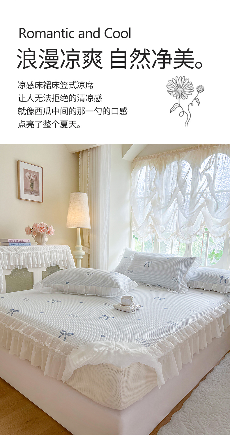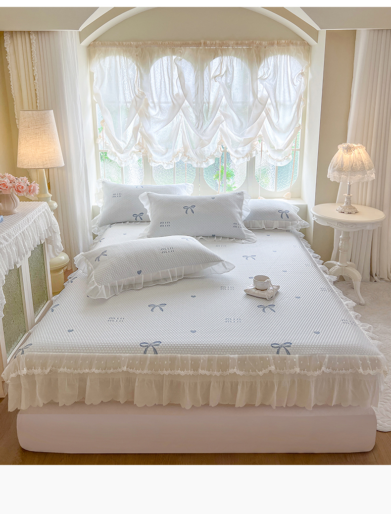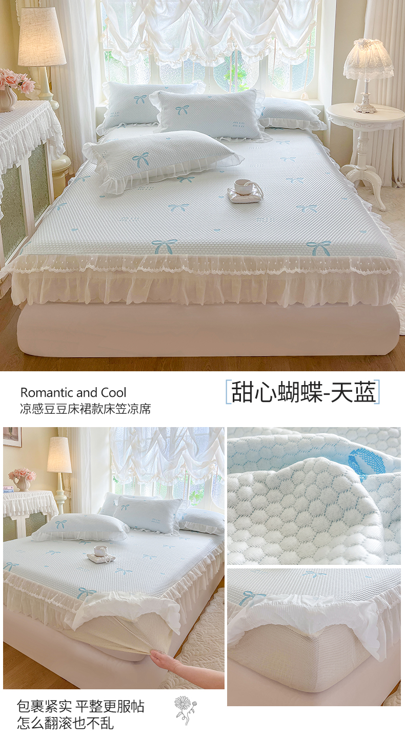 网红馆(ck家纺) 2026新款小清新床笠式床裙豆豆凉席三件套 甜心蝴蝶-蔚蓝