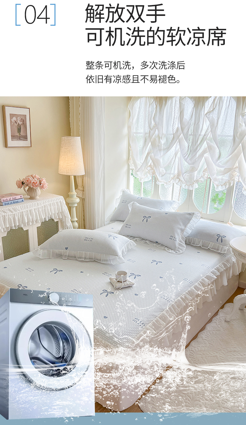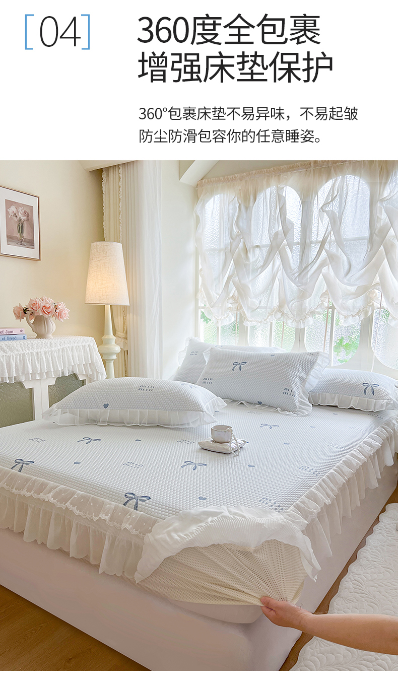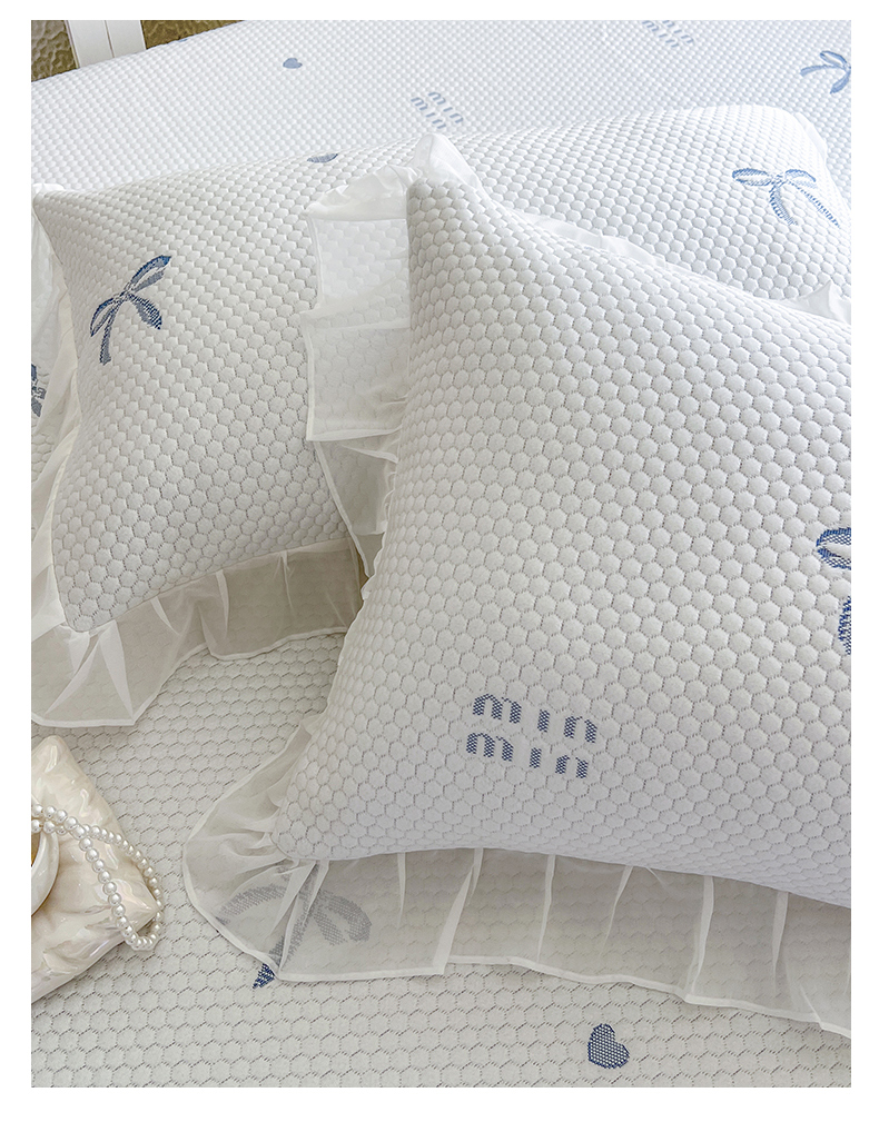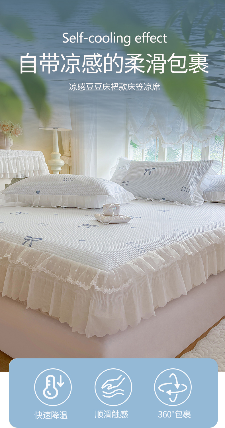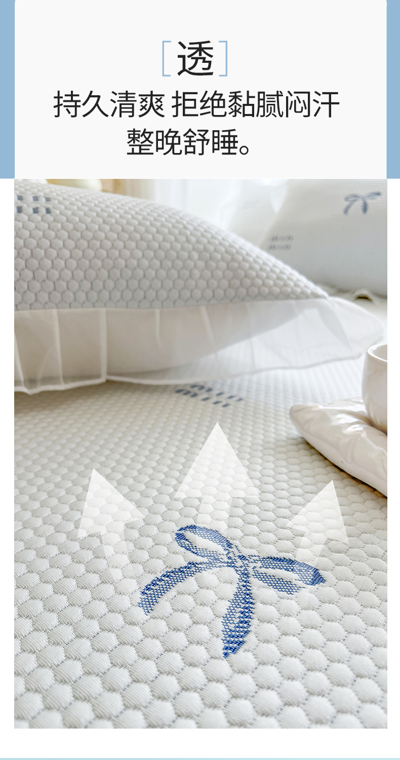 网红馆(ck家纺) 2026新款小清新床笠式床裙豆豆凉席三件套 甜心蝴蝶-蔚蓝