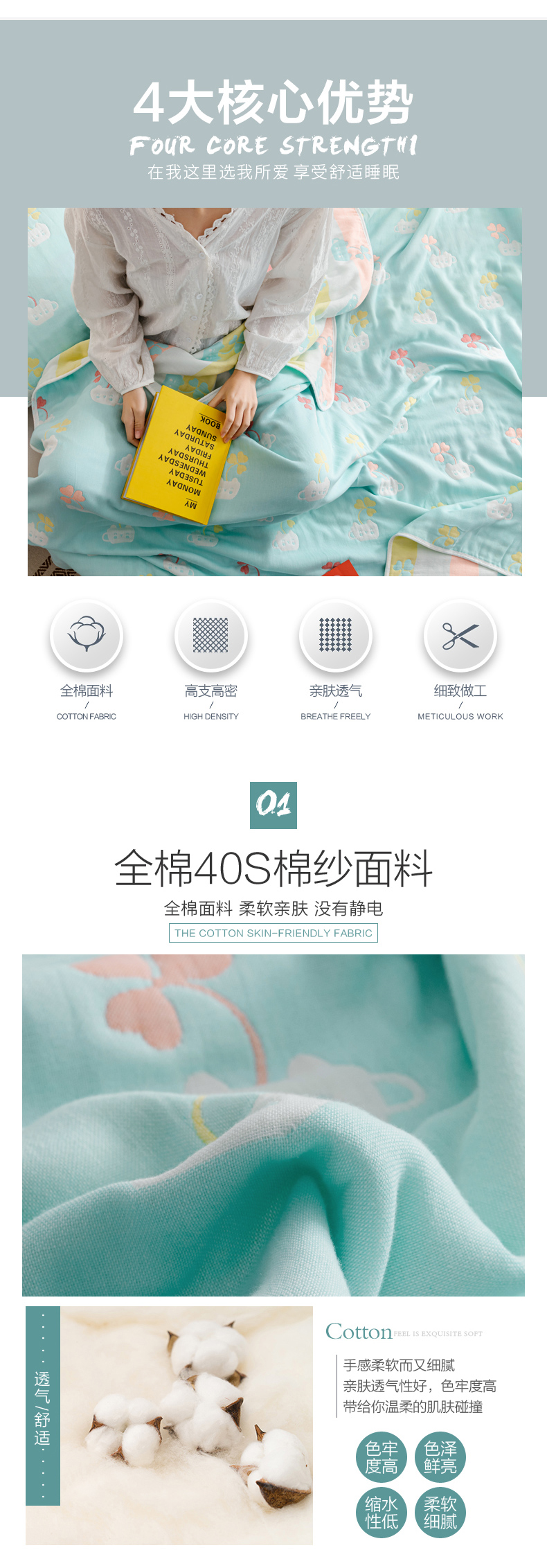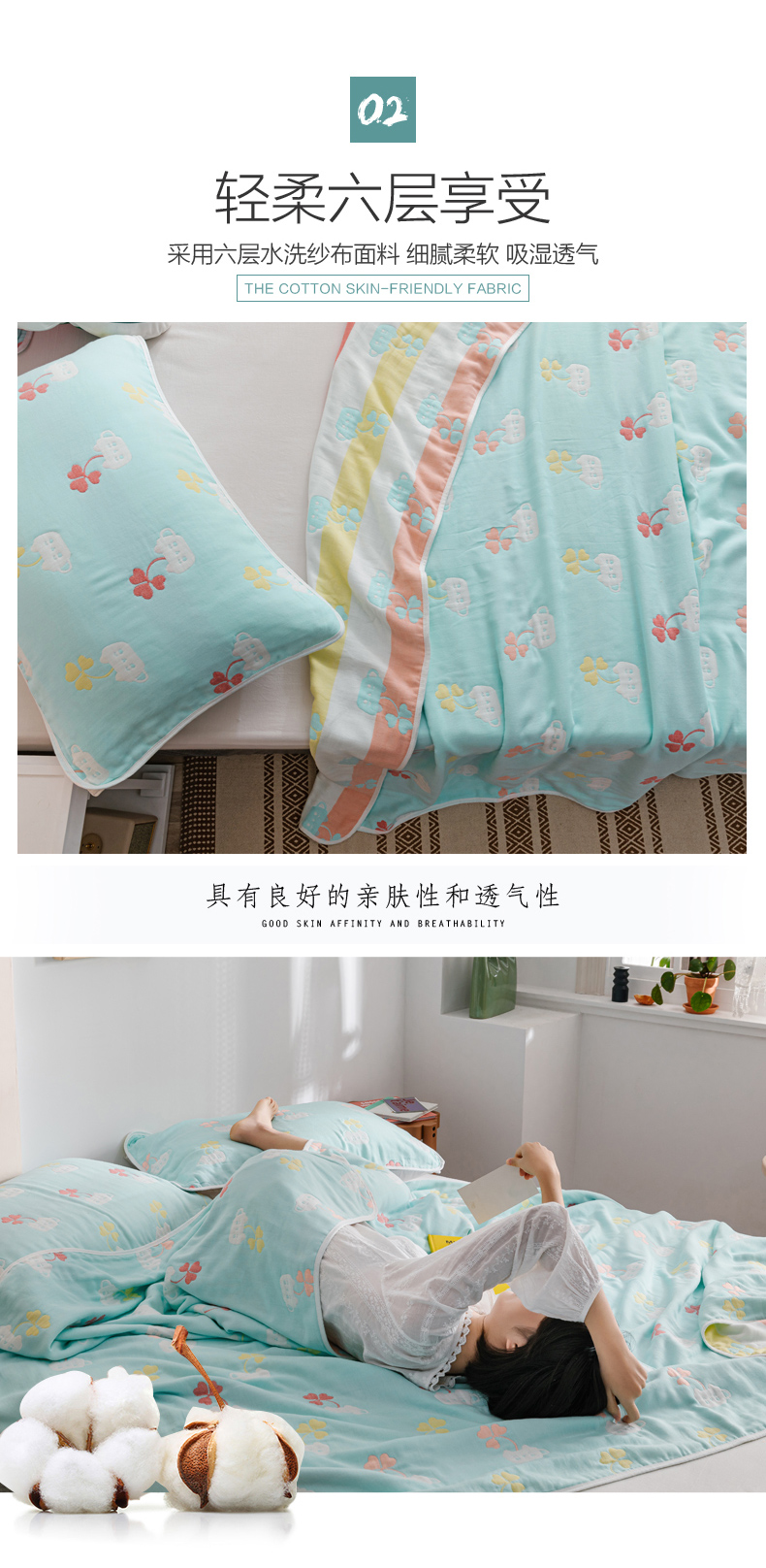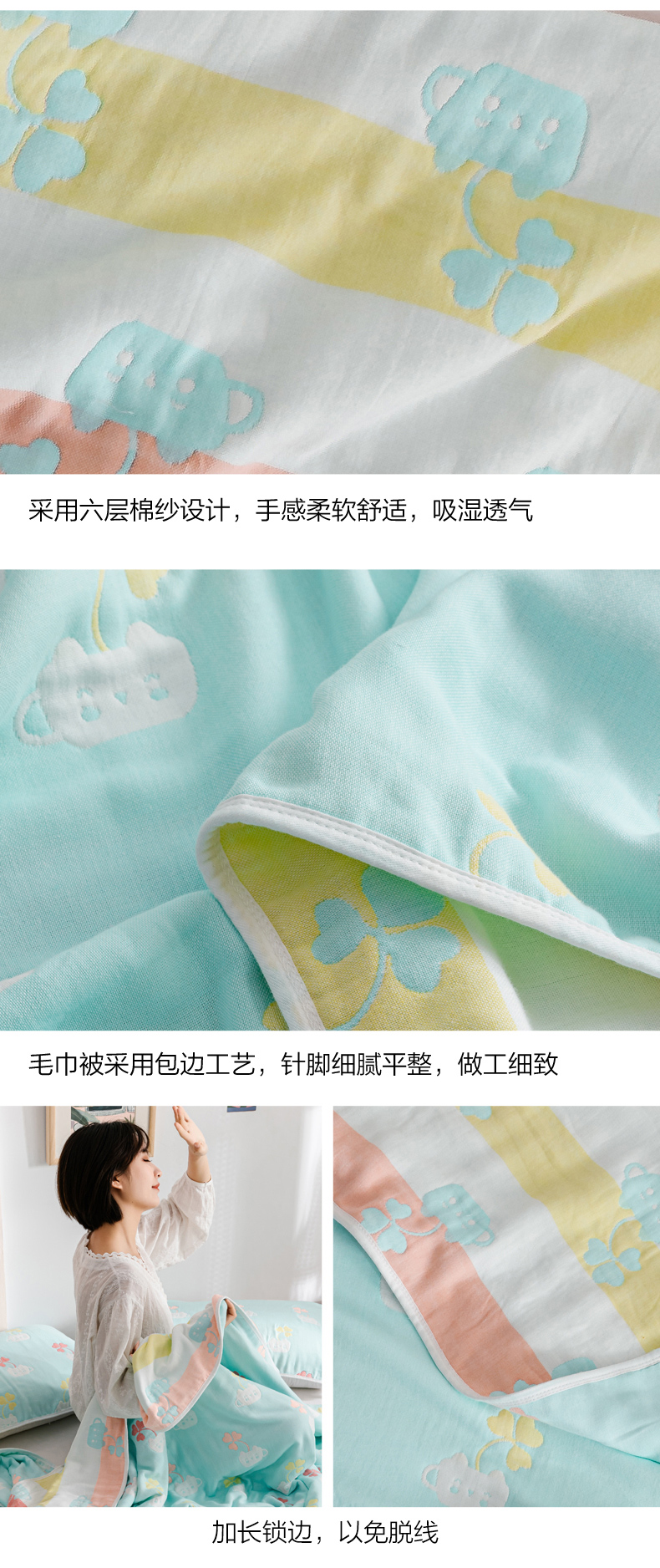 商品名称:朴尔家纺-毛巾被 2026春夏新款六层全棉纯棉纱布毛巾被夏被夏凉被空调被 杯中叶语-兰