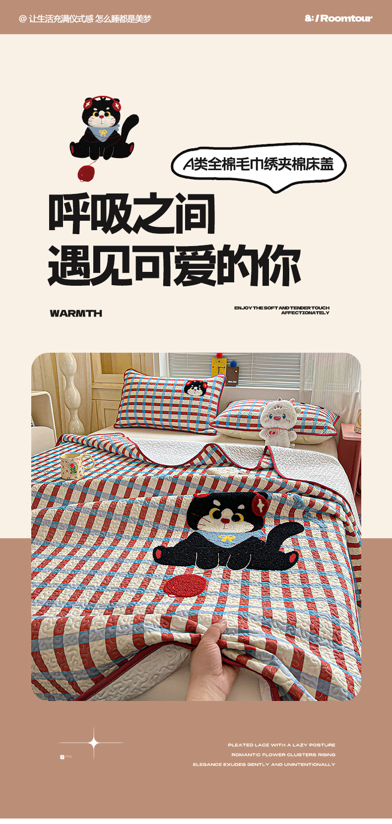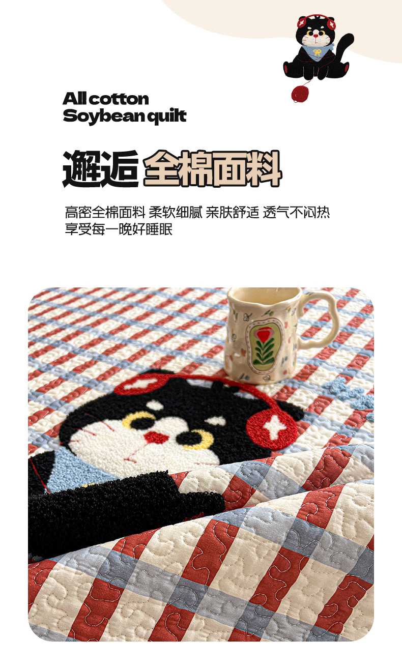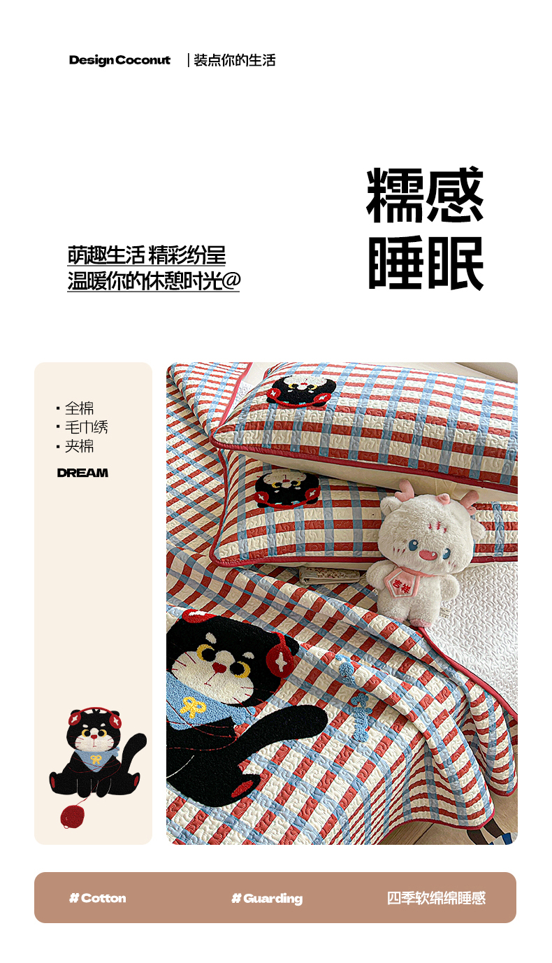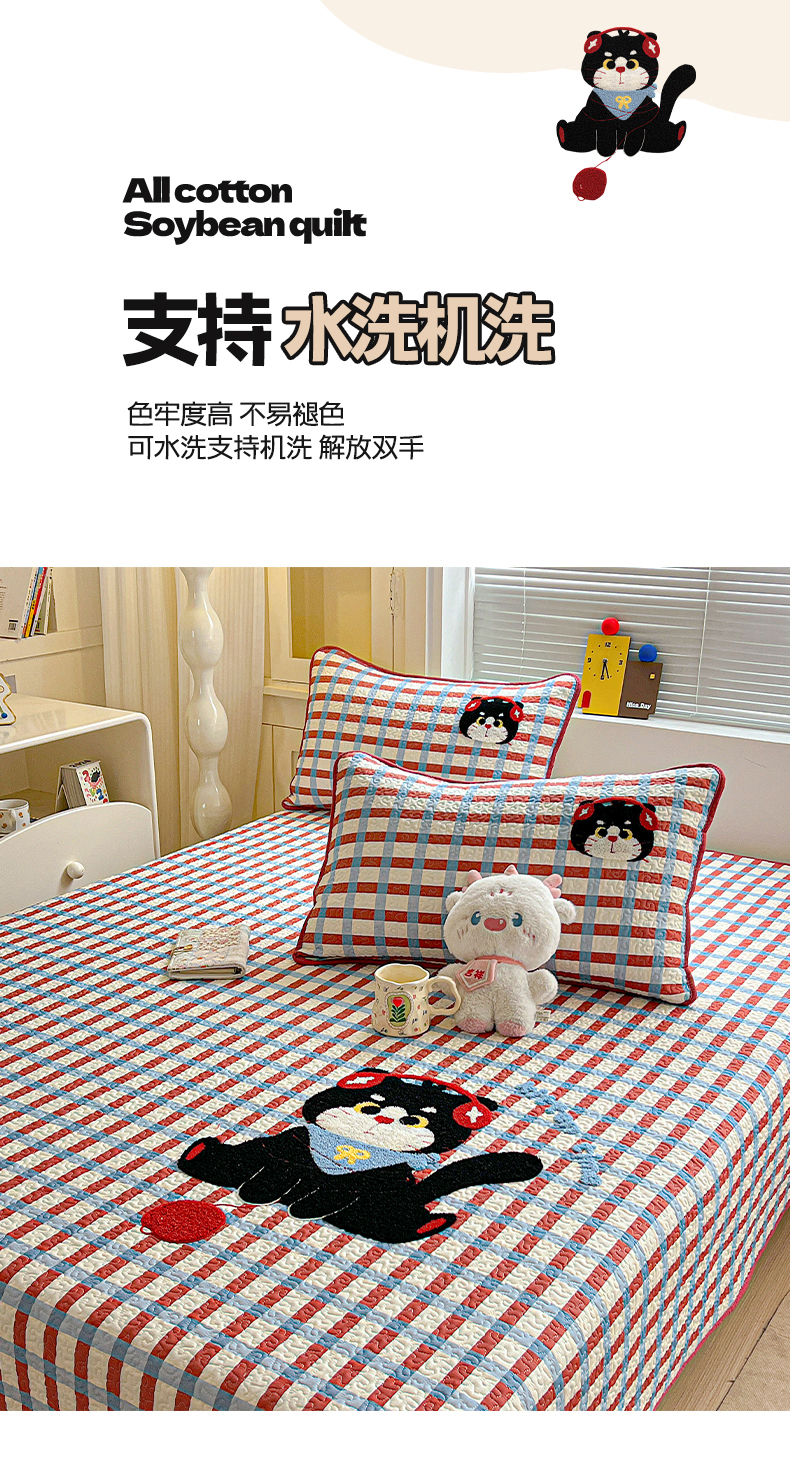 当前位置: 91家纺网 > 商品网购 > 床上用品 > 床盖 > 鑫喜莱家纺 2026新款全棉纯棉原创毛巾绣床盖三件套单床盖软床垫 线团小黑猫