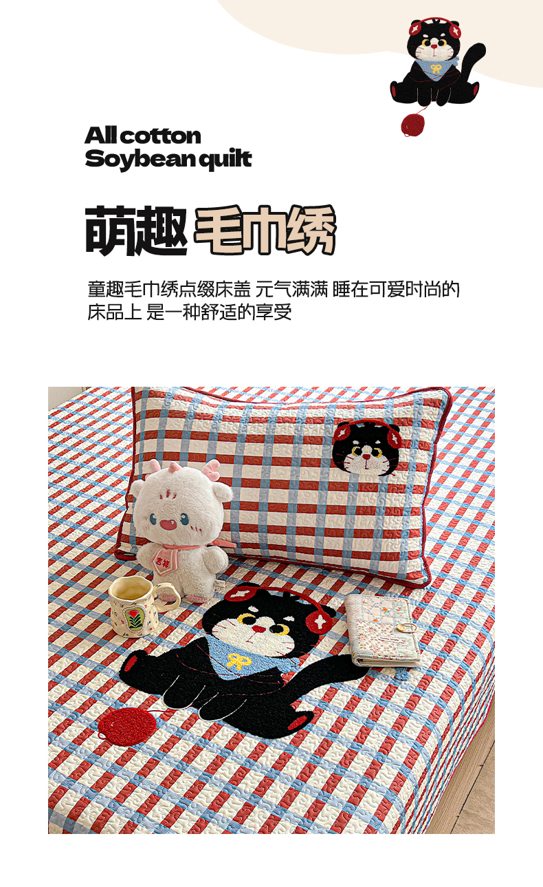 • 91家纺网 家纺一手货源 找家纺 鑫喜莱家纺 2026新款全棉纯棉原创毛巾绣床盖三件套单床盖软床垫 线团小黑猫 91家纺网 家纺一手货源 找家纺 鑫喜莱家纺 2026新款全棉纯棉原创毛巾绣床盖三件套单床盖软床垫 线团小黑猫