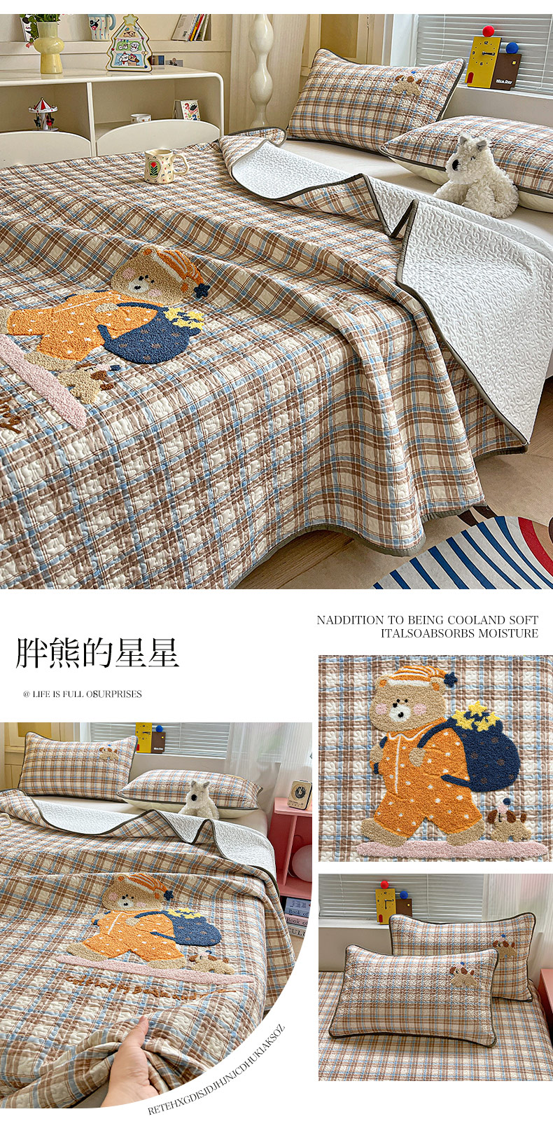 • 91家纺网 家纺一手货源 找家纺 (总)鑫喜莱家纺 2026新款全棉纯棉原创毛巾绣床盖三件套单床盖软床垫,滑板小熊仔,酷酷的小熊,面包小狗,南瓜小兔,胖熊的星星,苹果小狗,线团小黑猫,星星人,组合图仅供展示-不可下单