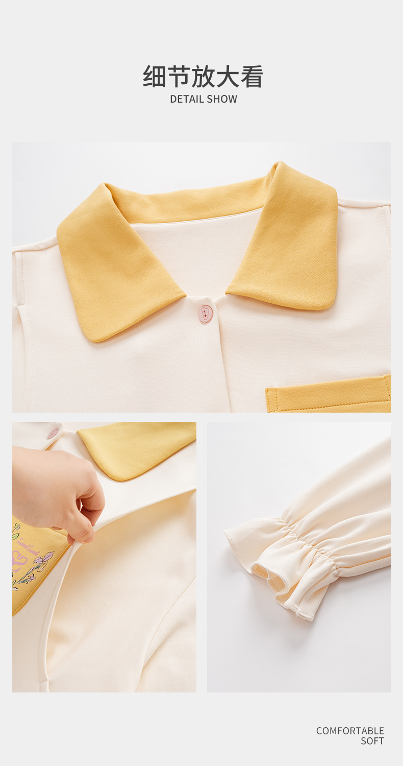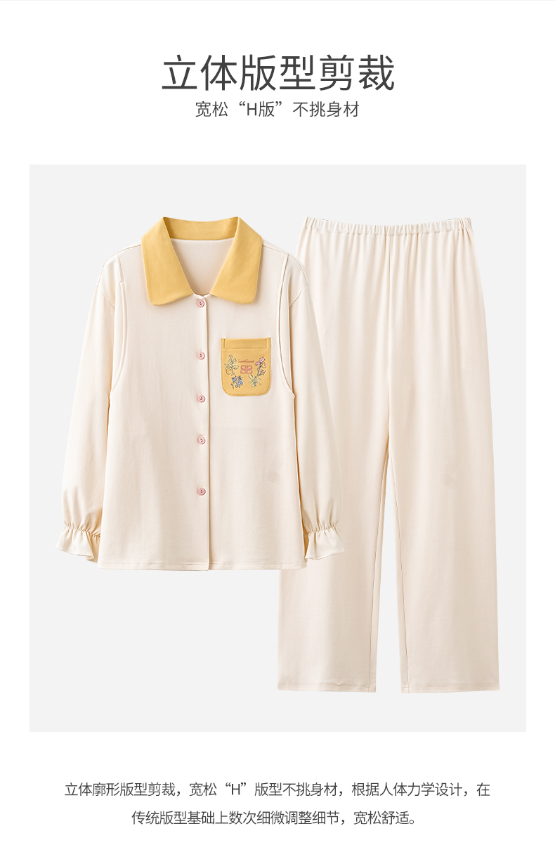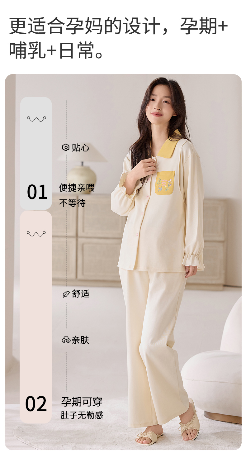 商品名称:洛兰沙家居馆 2026春秋季新款小清新针织全棉纯棉100%翻领开衫双长孕妇月子服睡衣女 翻领套装6