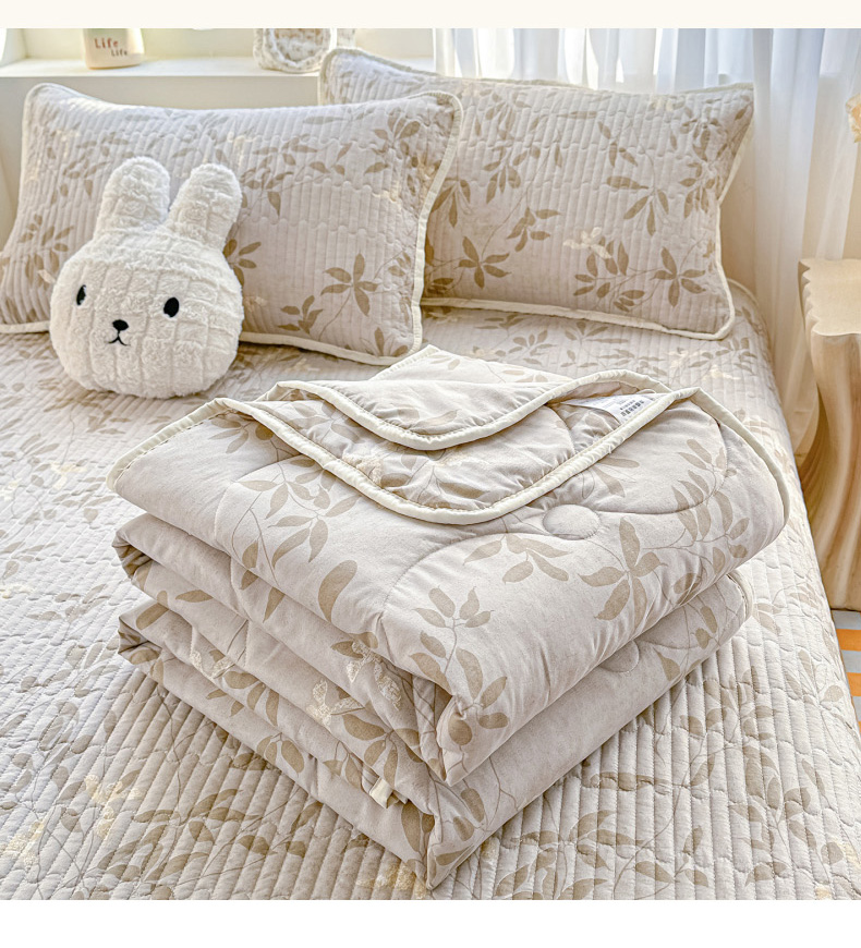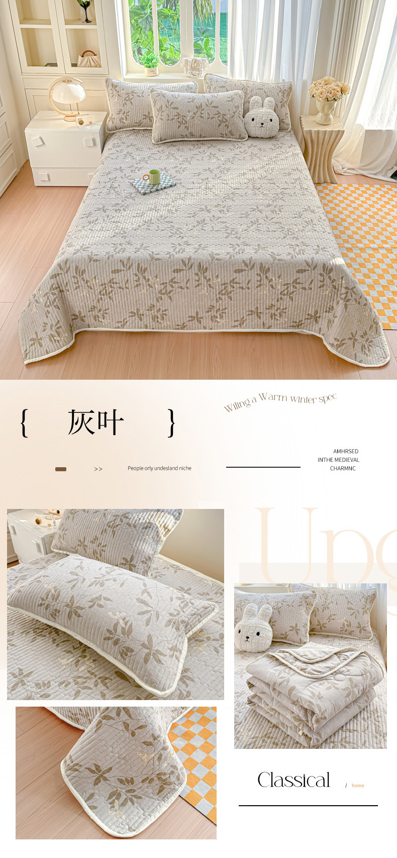 • 91家纺网 家纺一手货源 找家纺 慕澄家纺 2026新款小清新印花水洗棉床盖单品床盖床盖单件 灰叶