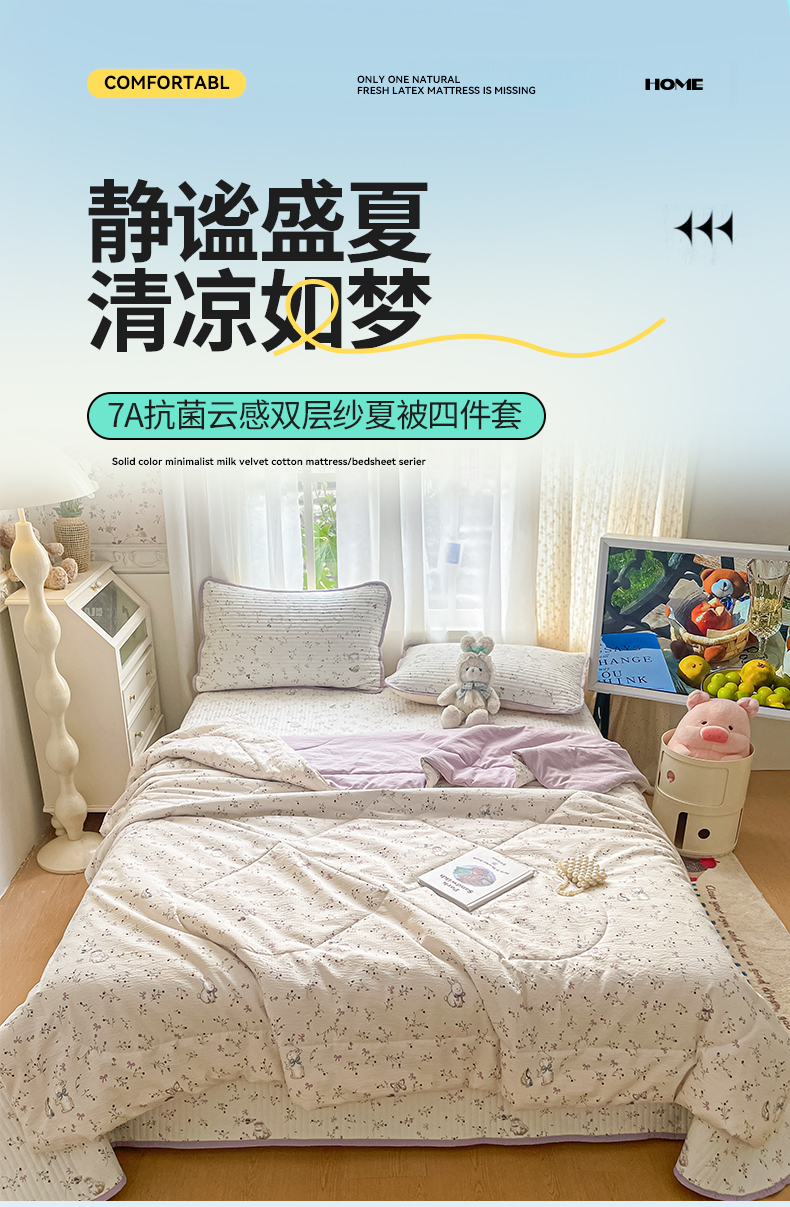 当前位置: 91家纺网 > 商品网购 > 床品套件 > 四件套 > 夏被四件套 > 云玲时尚 2026新款A类云感双层纱7A抗菌床盖夏被四件套系列 浅野小猫