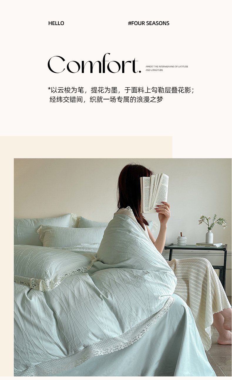 (总)格里芬家纺 2026新款花边款60S全棉水洗立体浮雕提花四件套,露柯-丁香紫,蝶舞-淡雅紫,蝶舞-湖水绿,蝶愔之舞-奶昔白,蝶愔之舞-唯美粉,苗安娜-米杏,沁香-云水蓝,岁月留声-唯美粉