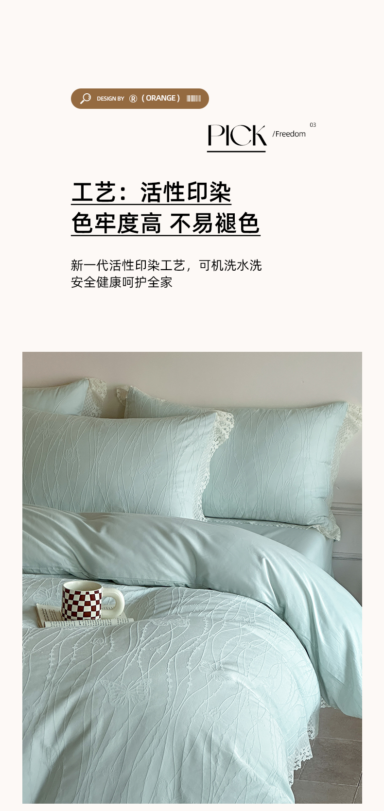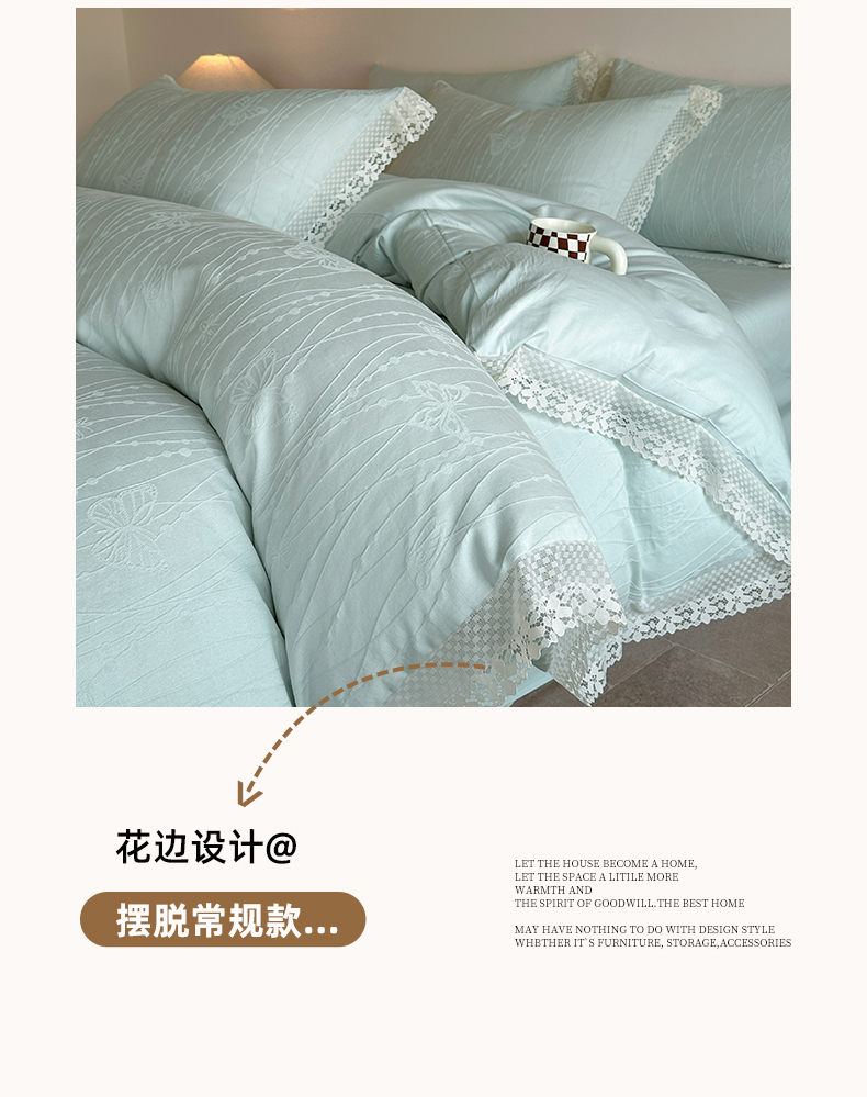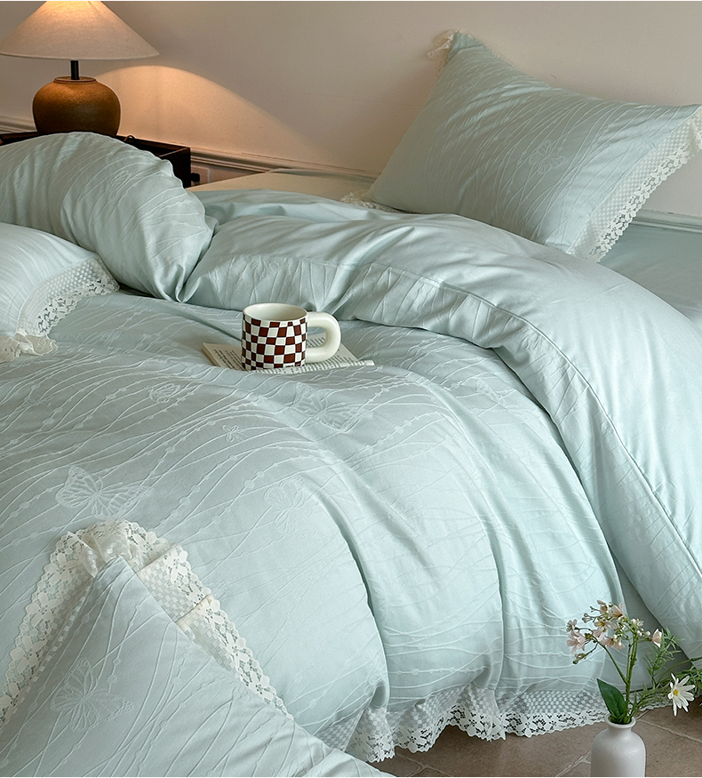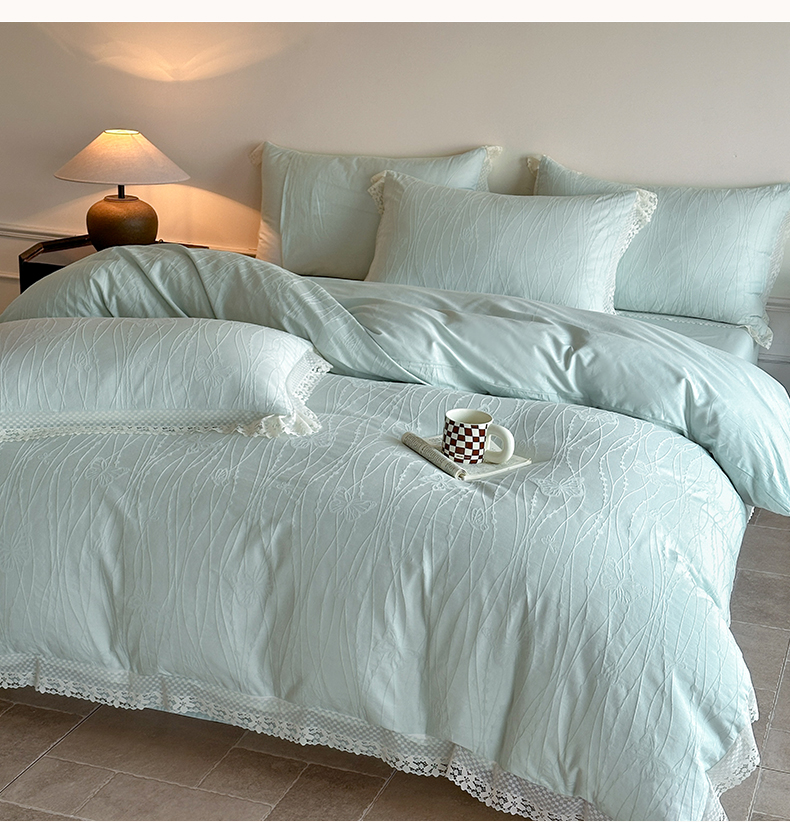 商品名称:格里芬家纺 2026新款花边款60S全棉水洗立体浮雕提花四件套 蝶舞-湖水绿