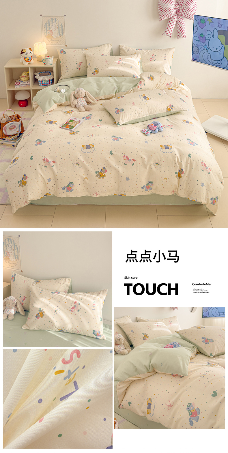 当前位置: 91家纺网 > 商品网购 > 床品套件 > 四件套 > 全棉普通四件套 > 沐辰 2026新款13070全棉纯棉印花四件套-萌趣 点点小马