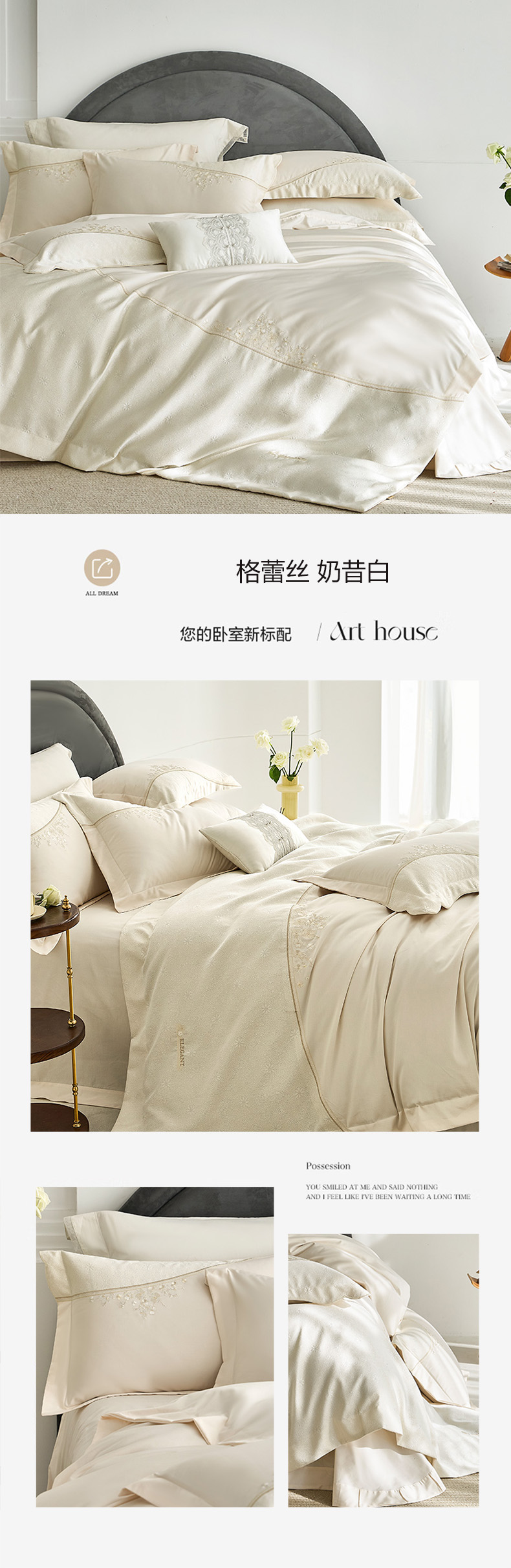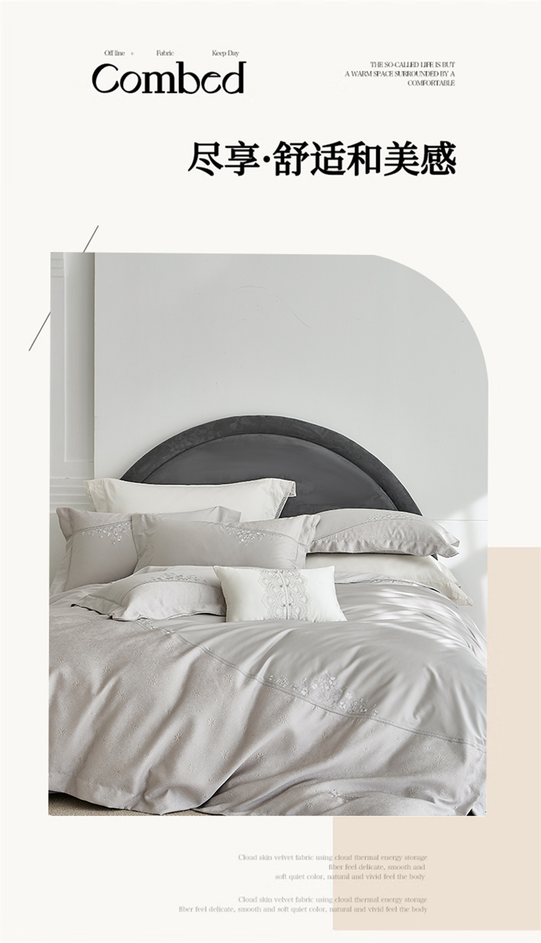(总)诗黛尔 2026春夏新款长绒棉刺绣四件套黎境系列,黎境-香槟金,黎境-极光蓝,黎境-卡其色,黎境-落樱粉,黎境-绅士灰