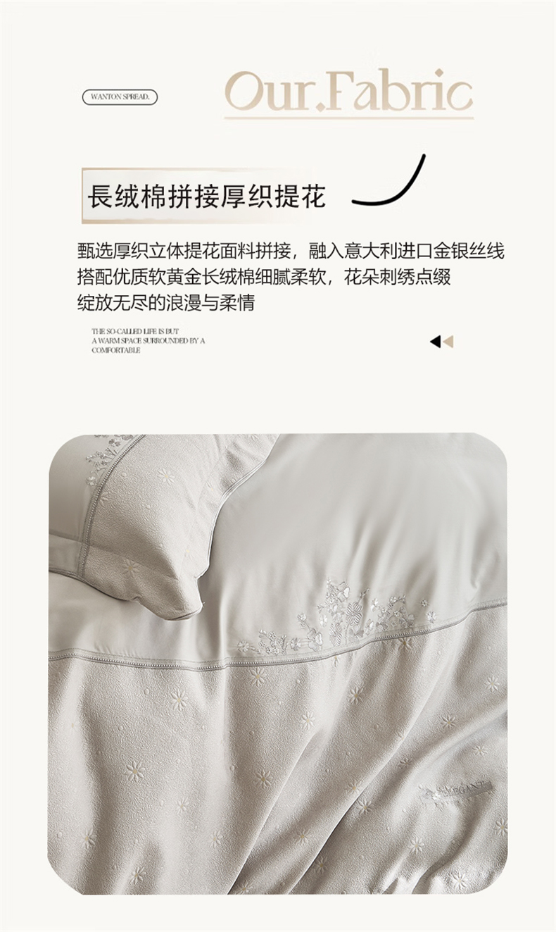 (总)诗黛尔 2025秋冬新款长绒棉刺绣香缇卡系列四件套,卡其色,落樱粉,南瓜橘,绅士灰,水晶兰,油果绿
