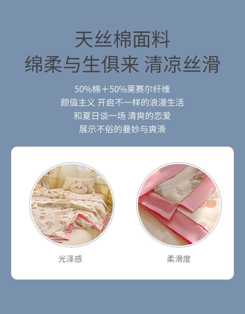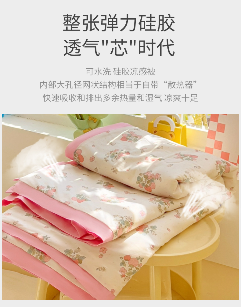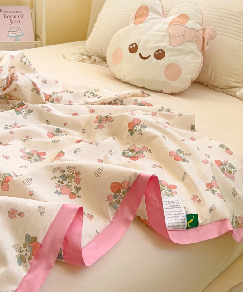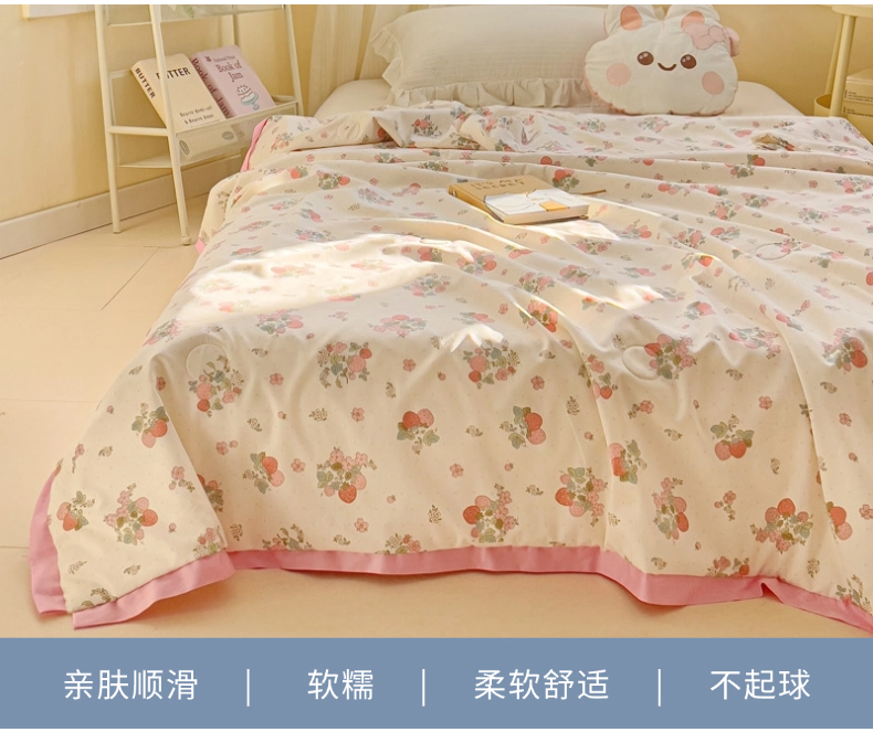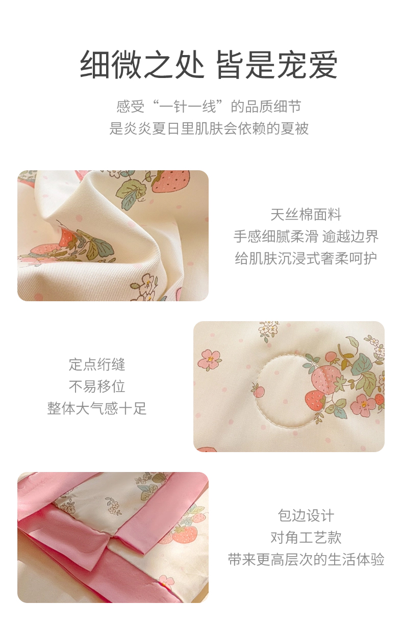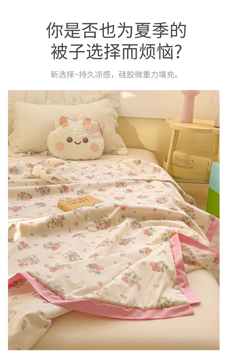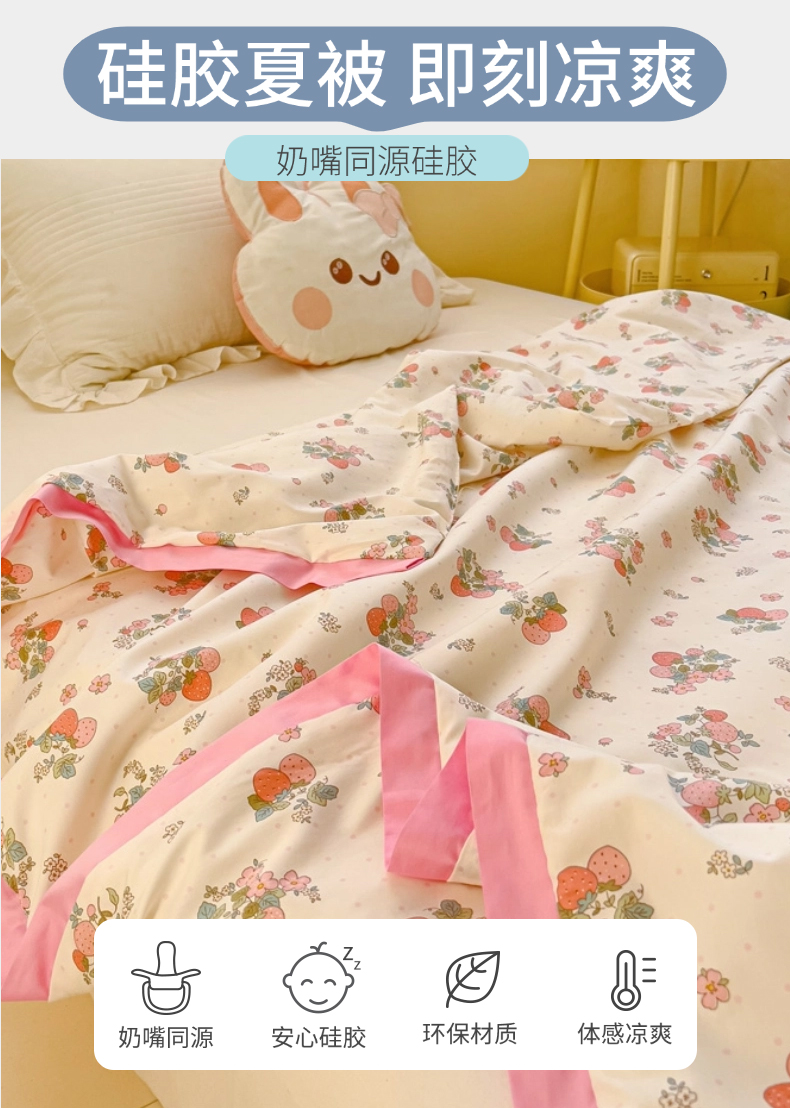 商品名称:十九色 2026新款液态硅胶奶嘴同源天丝棉飞边凉感夏被夏凉被空调被 草莓多多