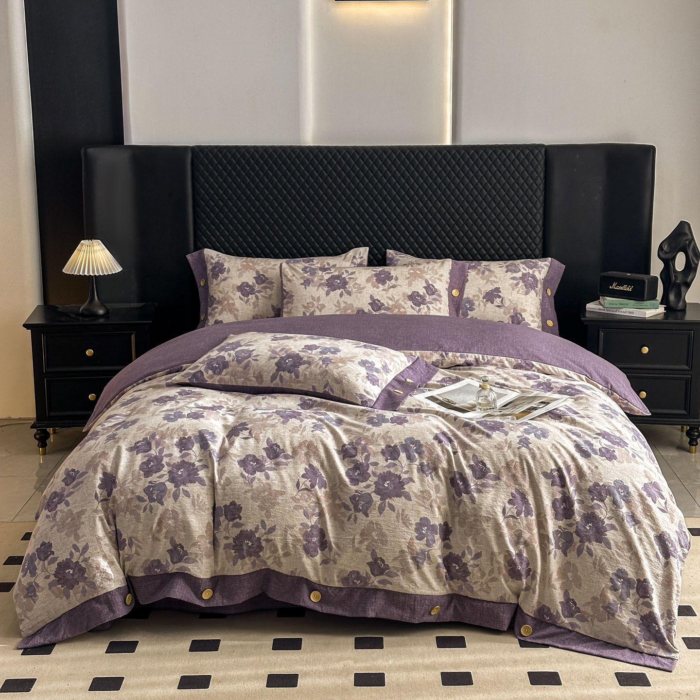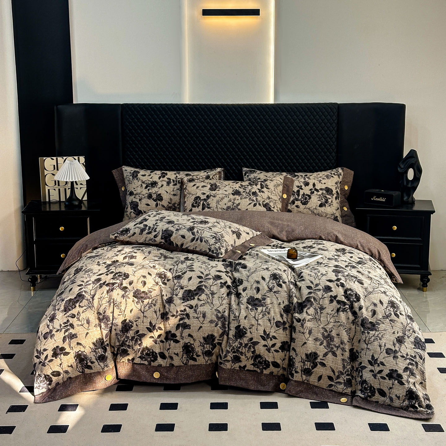 当前位置: 91家纺网 > 商品网购 > 床品套件 > 四件套 > 其它四件套 > 晚爱家纺(原晚安家居) 2026新款加厚双层纱原麻纽扣款四件套 咖色枝叶