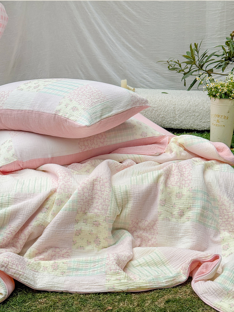 木楌家居 2026年新款全棉皱皱纱夏被夏凉被空调被夏被四件套 百福-粉