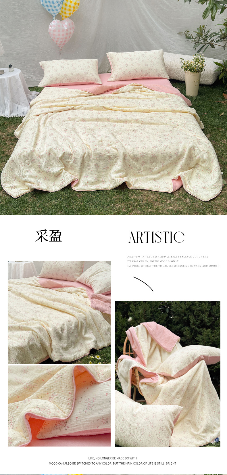 当前位置: 91家纺网 > 商品网购 > 被子 > 夏被 > 木楌家居 2026年新款全棉皱皱纱夏被夏凉被空调被夏被四件套 百福-粉