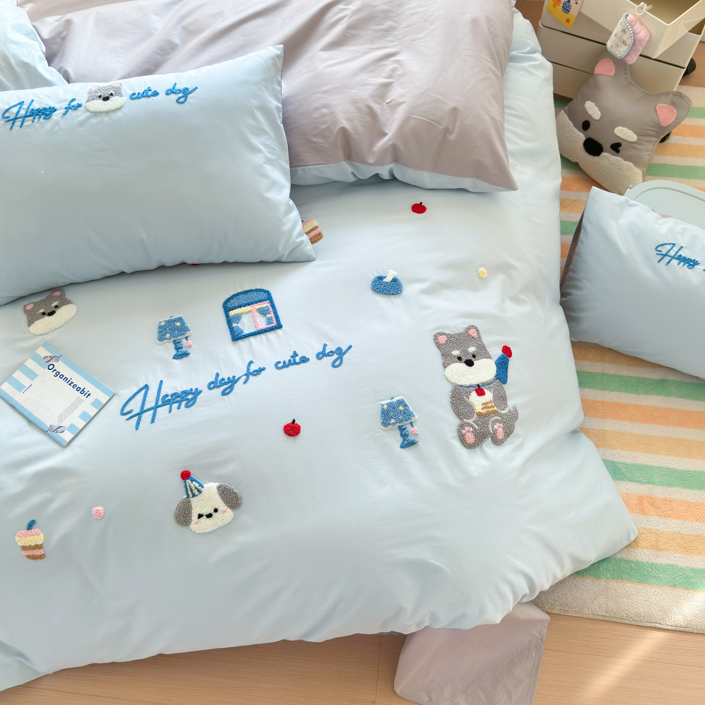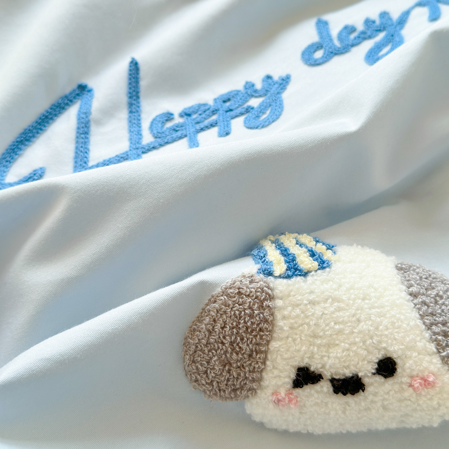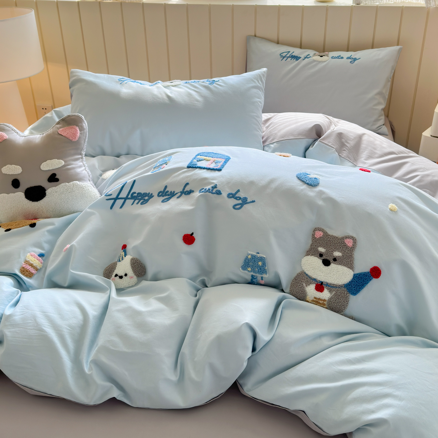优彩 2026新款全棉数码印花毛巾绣贴布绣四件套 甜心狗狗