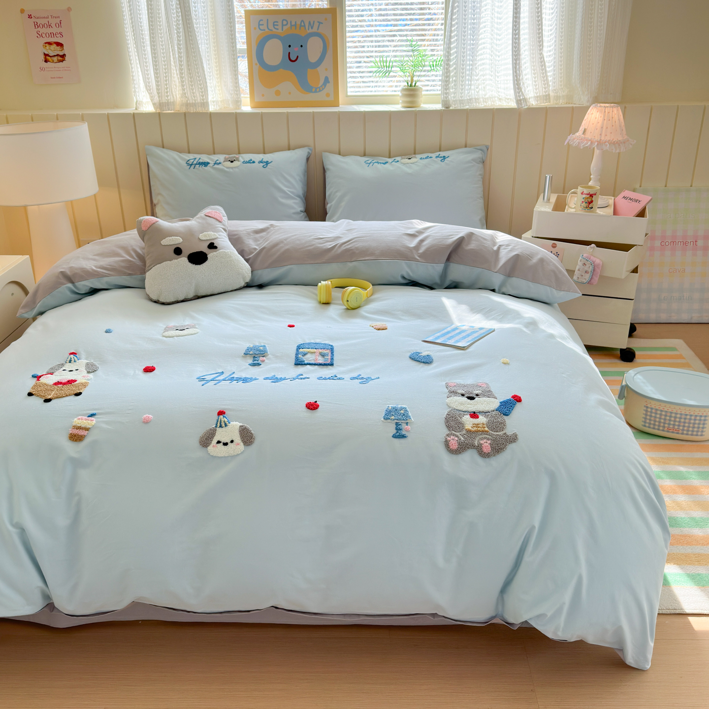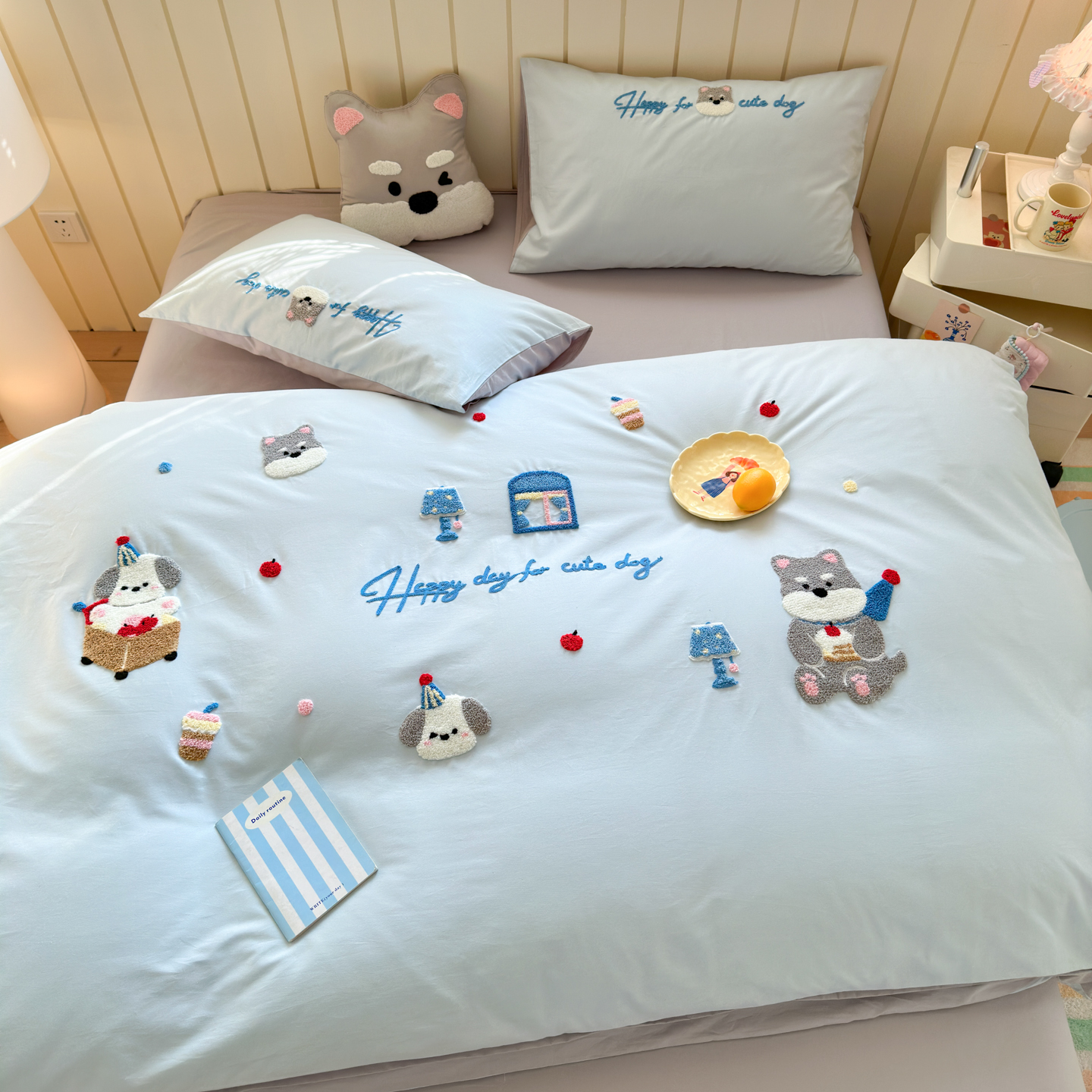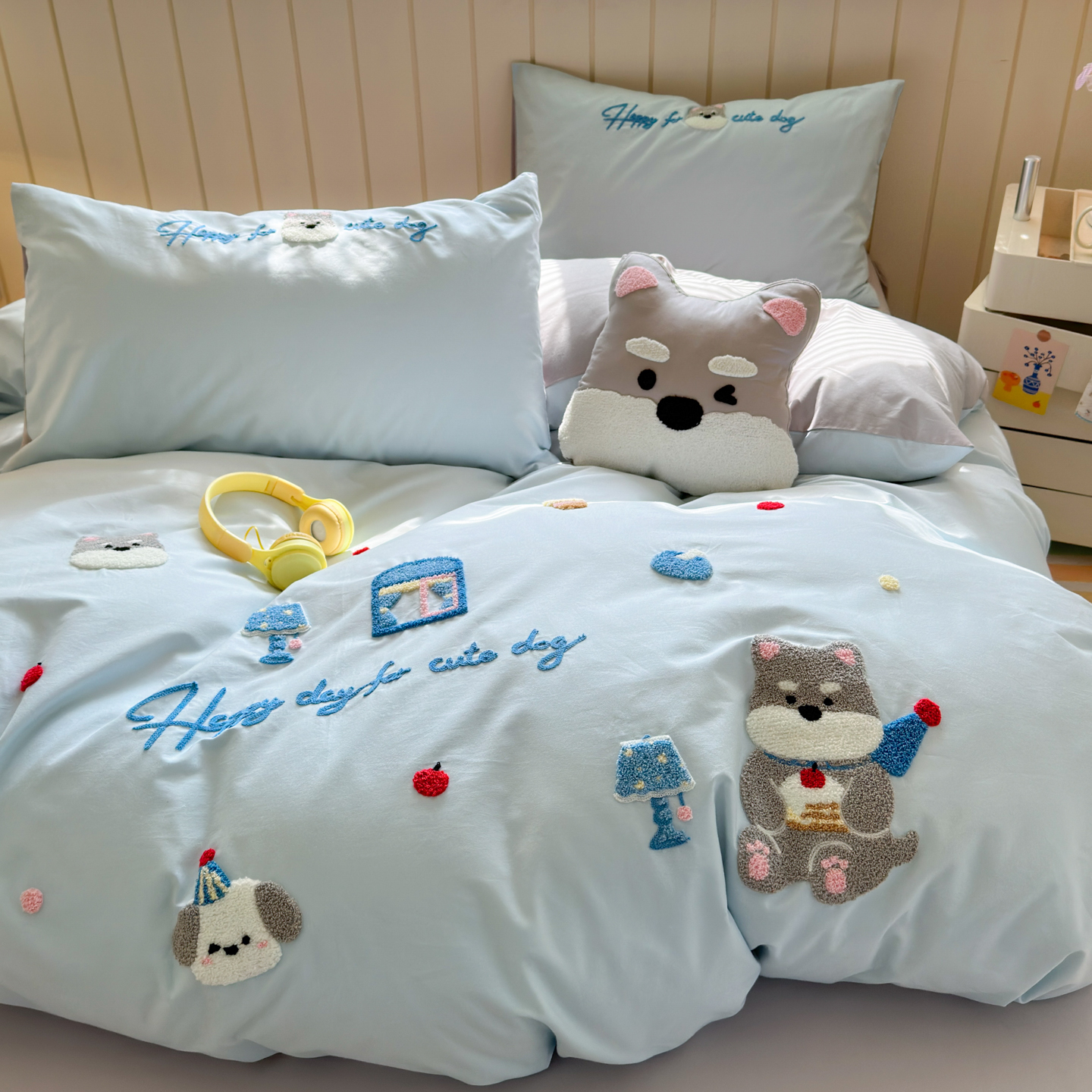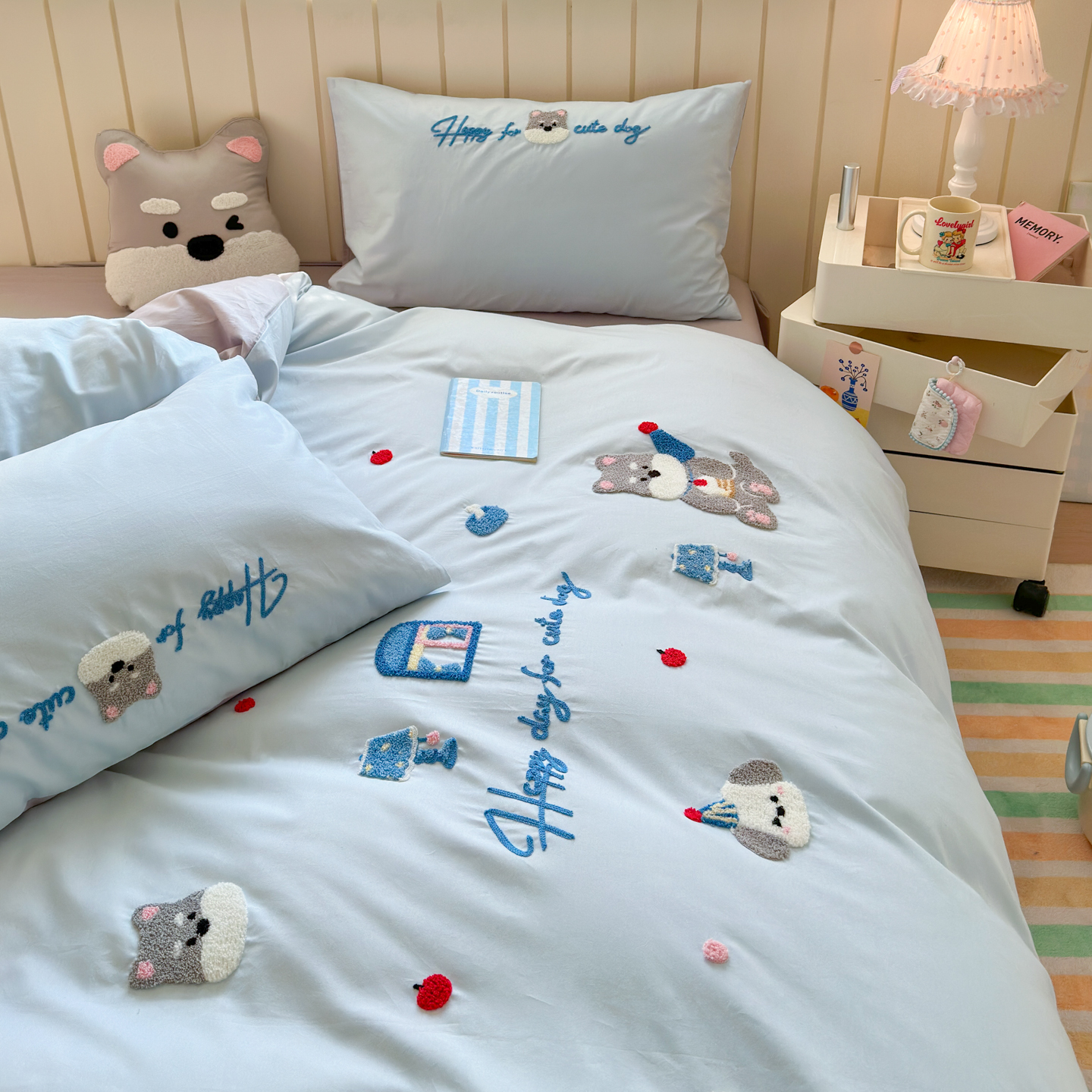 商品名称:优彩 2026新款全棉数码印花毛巾绣贴布绣四件套 甜心狗狗