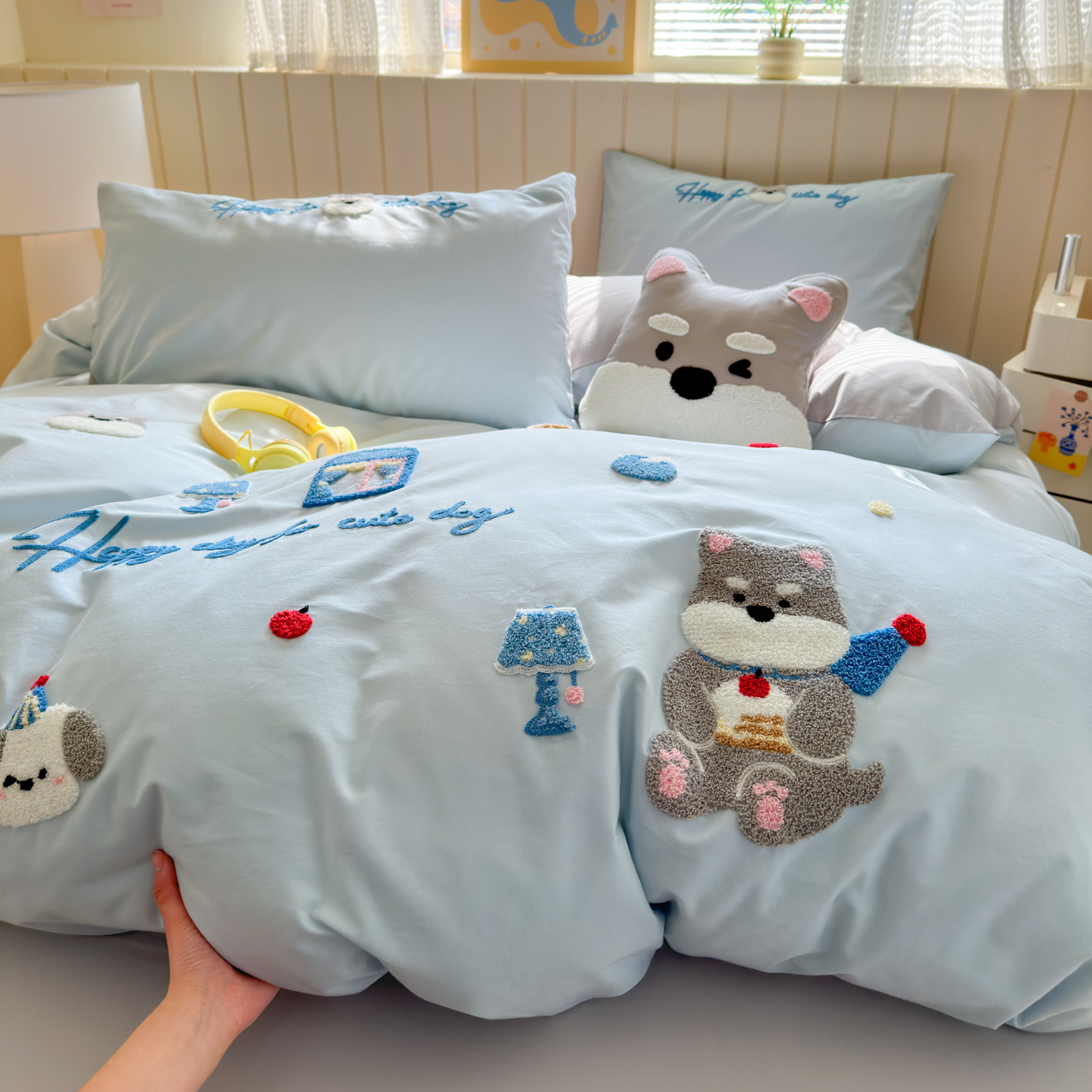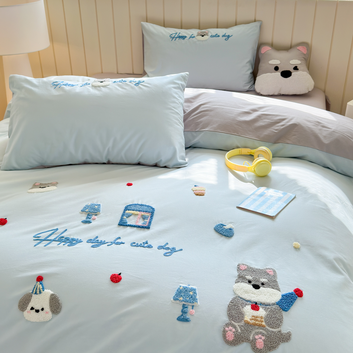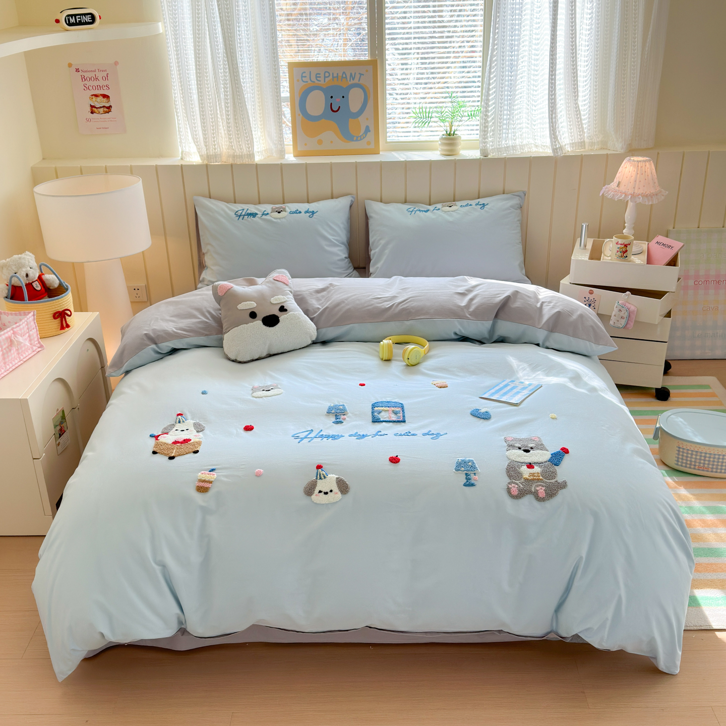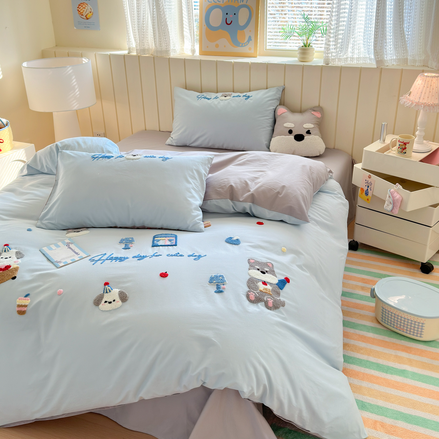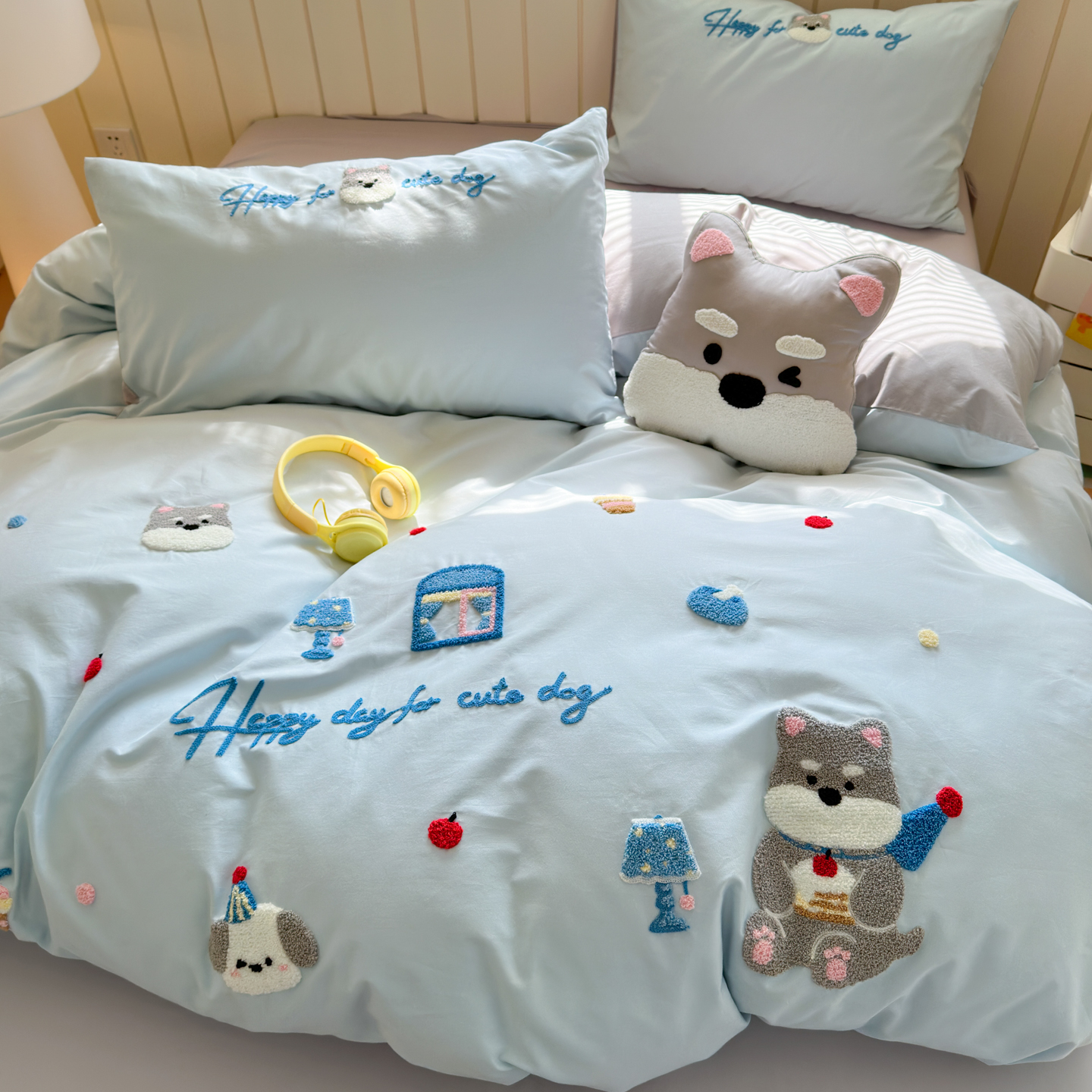 商品名称:优彩 2026新款全棉数码印花毛巾绣贴布绣四件套 甜心狗狗
